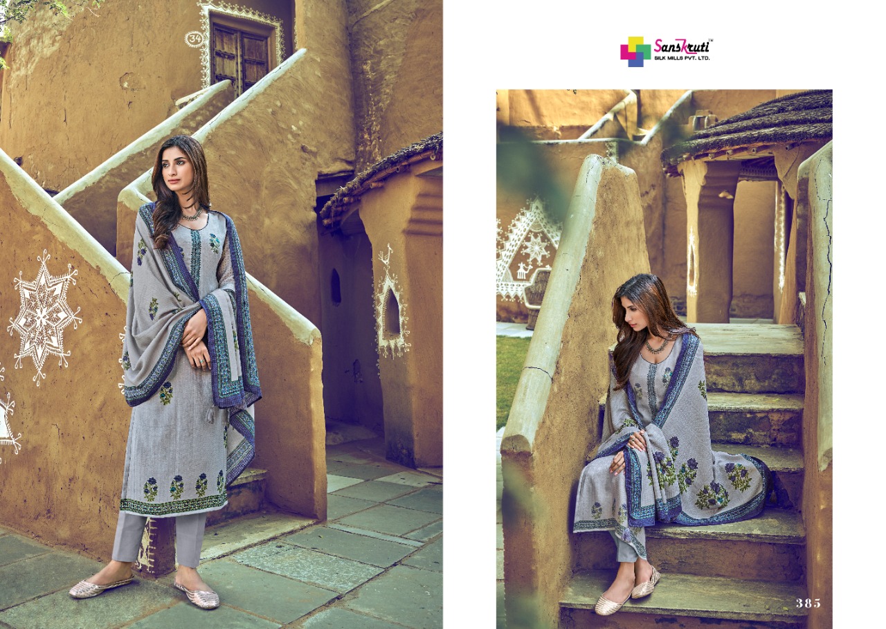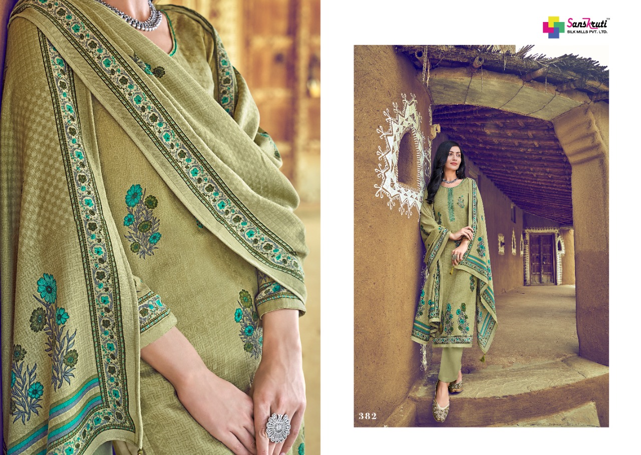 SANSKRUTI SILK MILLS PVT LTD Presents *WINTER COLLETION * SAHARA_VOL_4 Fabric Details Top: PURE PASMINA WITH DESIGNER WORK Bottom : PURE PASMINA Dupatta: PURE PASMINA SOUL DESIGNER PRINTED (BOX) Designs: 10PCS HSN CODE: 5407 Price 695/- |
