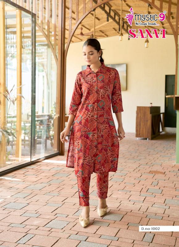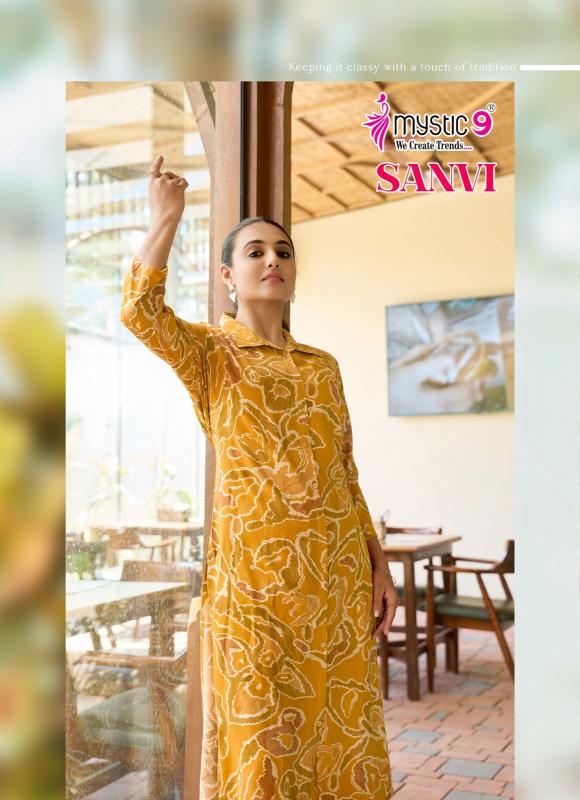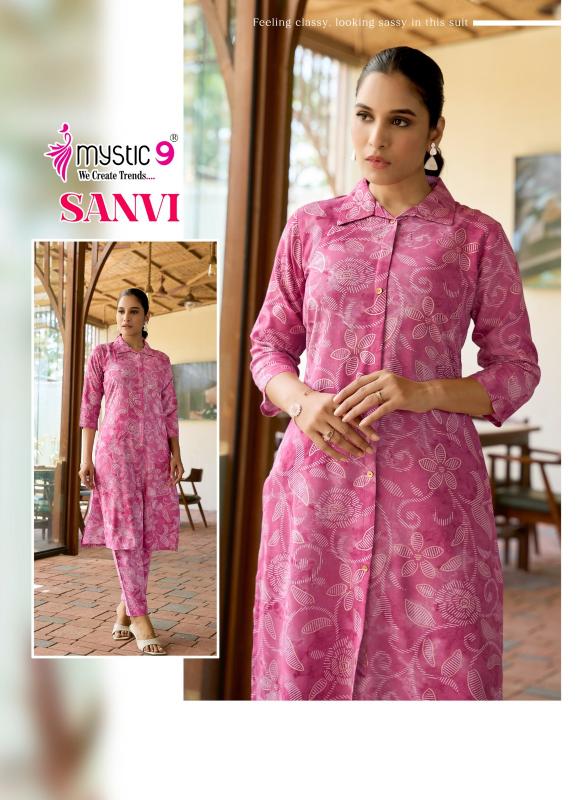 sanvi vol 1 by mystic 9 viscose readymade fashionable kurti with pant