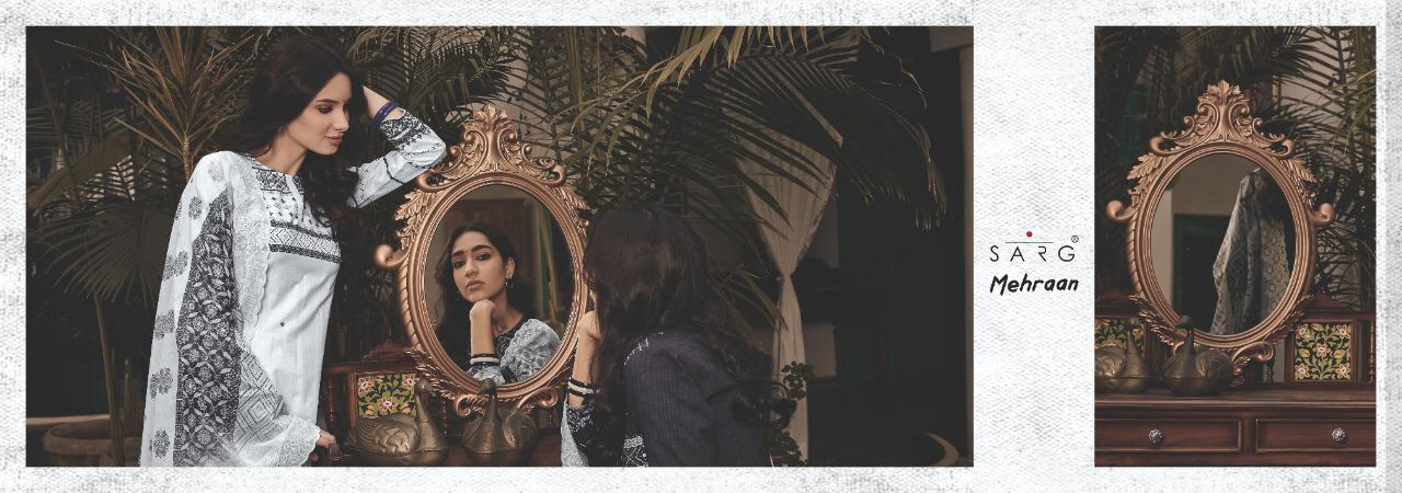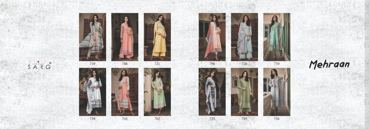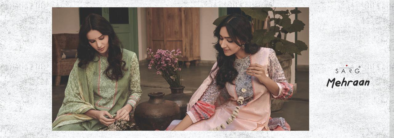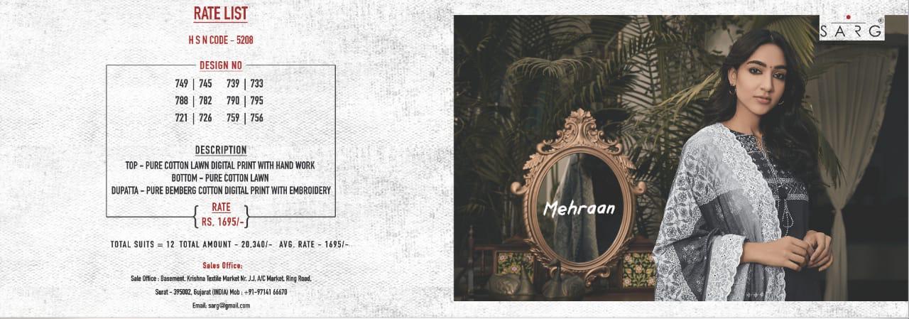 SARG Presents - MEHRAAN TOP- PURE COTTON LAWN DIGITAL PRINT WITH HAND WORK BOTTOM- PURE COTTON LAWN DUPATTA- PURE BEMBERG COTTON DIGITAL PRINT WITH EMBROIDERY RATE- 1695₹ |