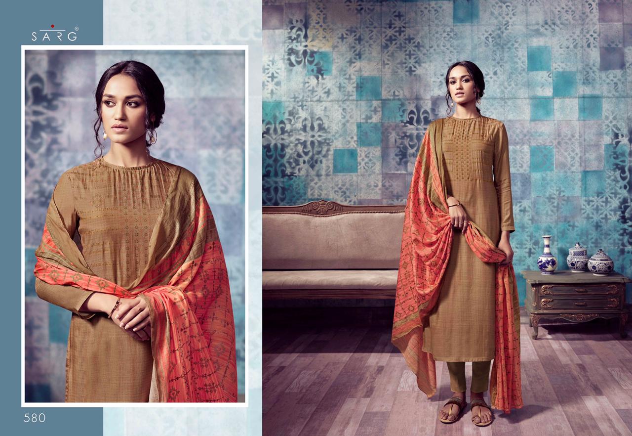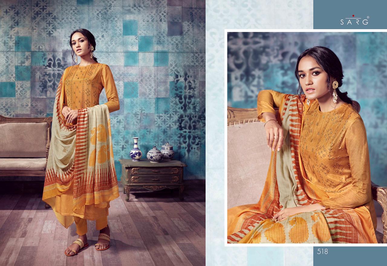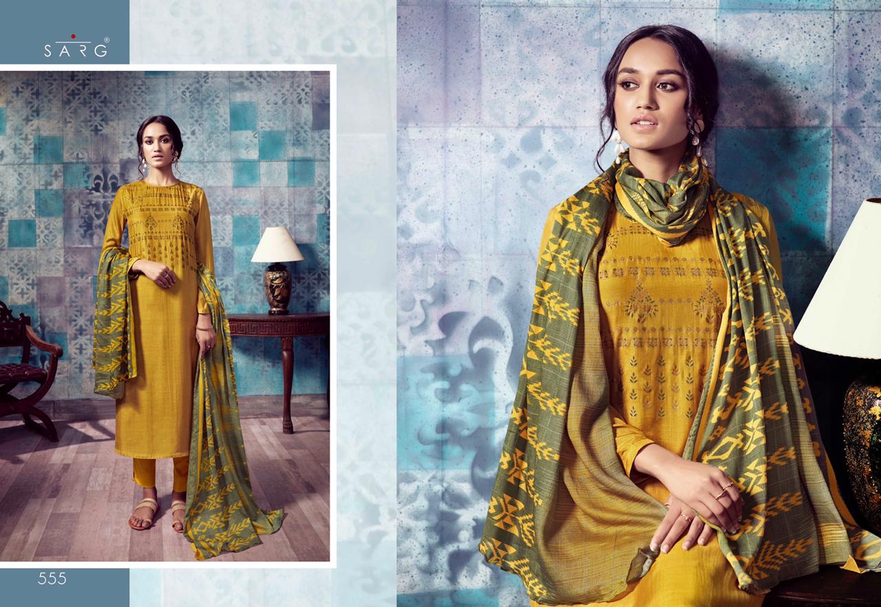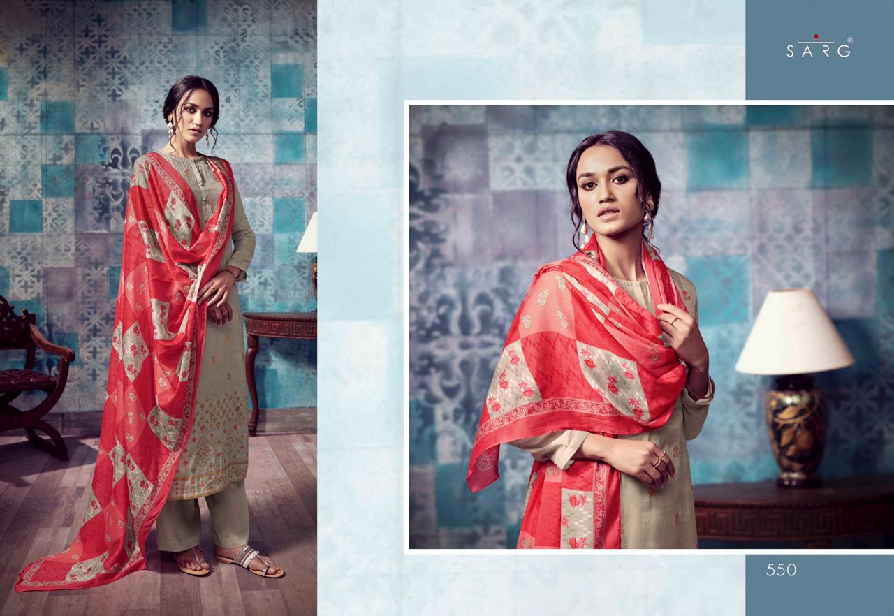 Sarg Presents Latest Collection Launched on 18-11-2019. Presenting Beautiful collection of 10 PCS with Unstitched .