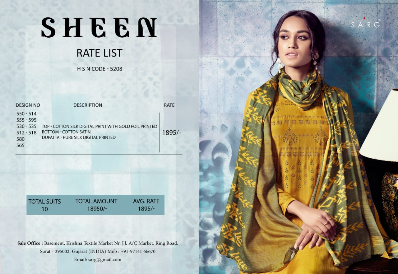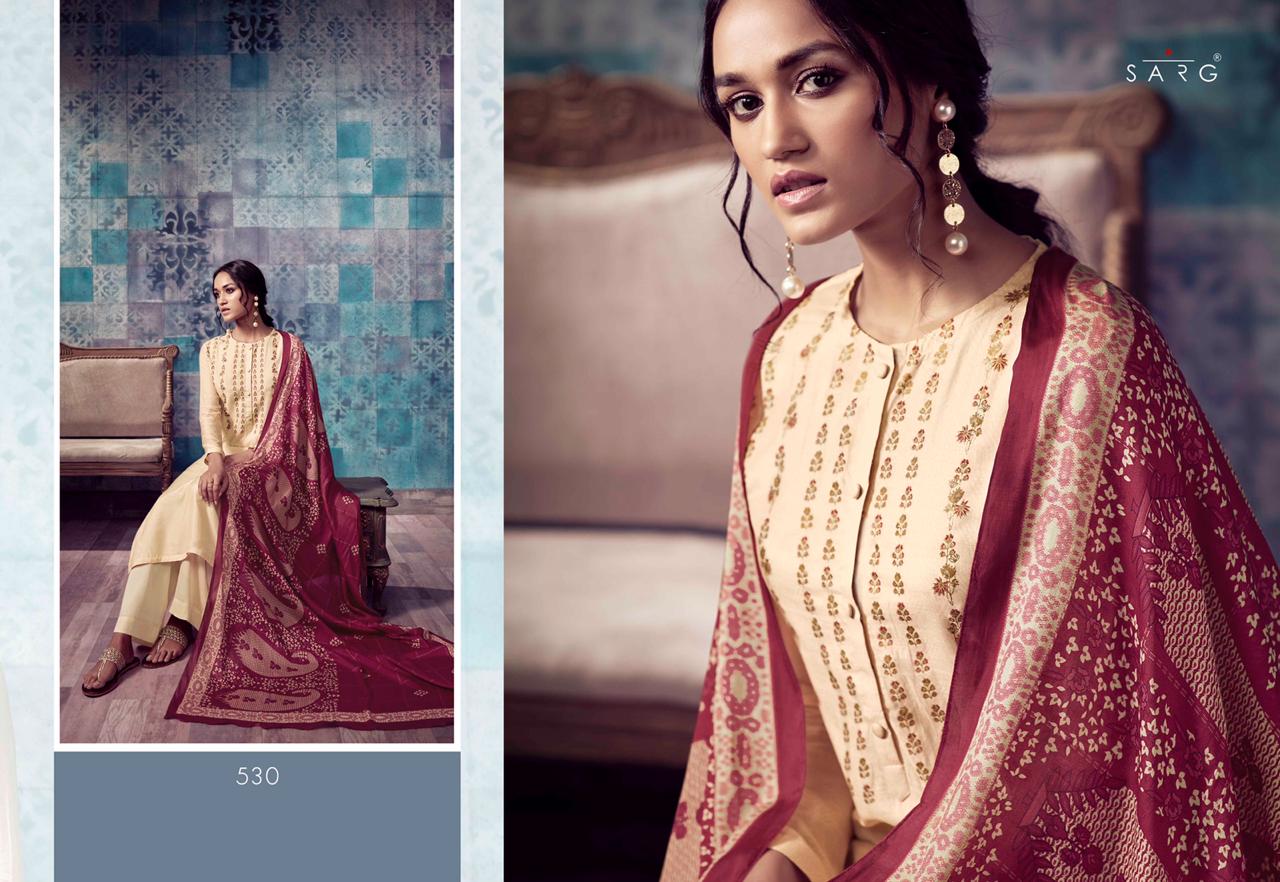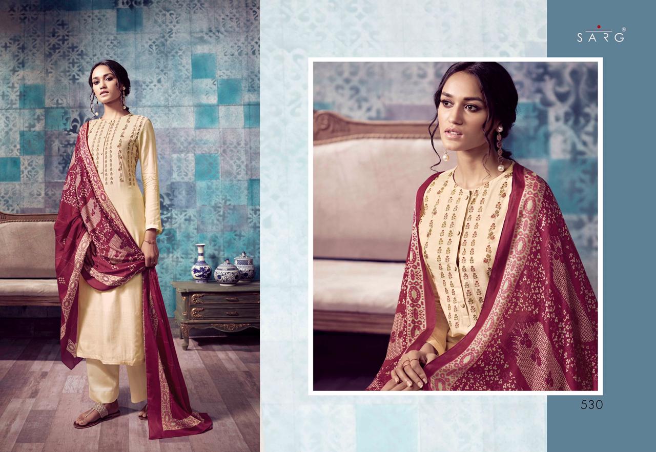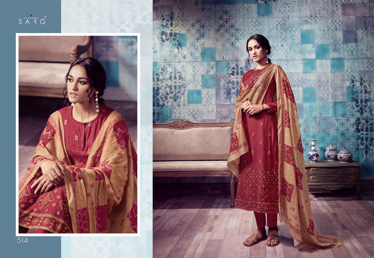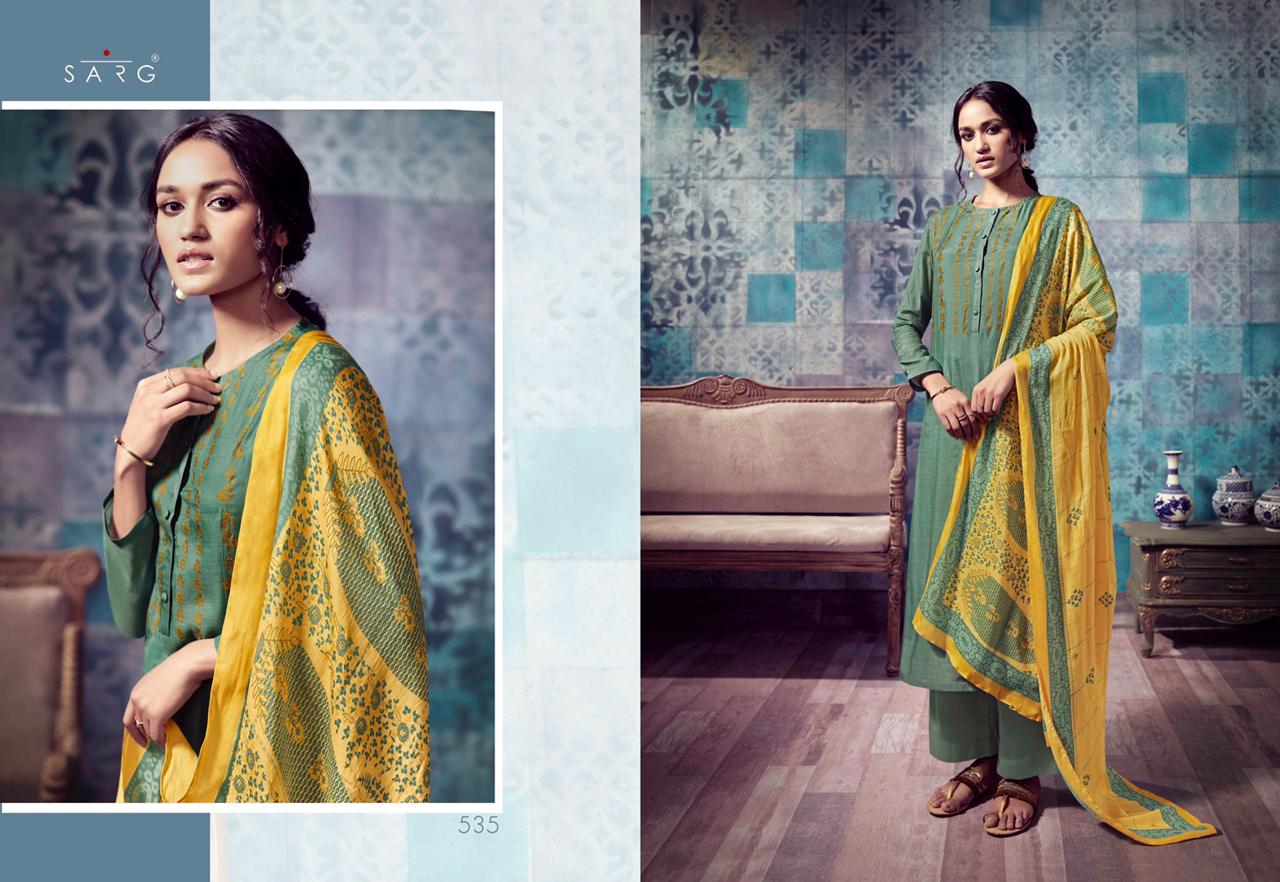 Sarg Presents Latest Collection Launched on 18-11-2019. Presenting Beautiful collection of 10 PCS with Unstitched .
