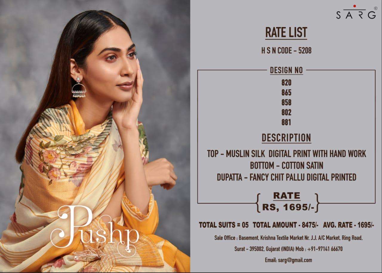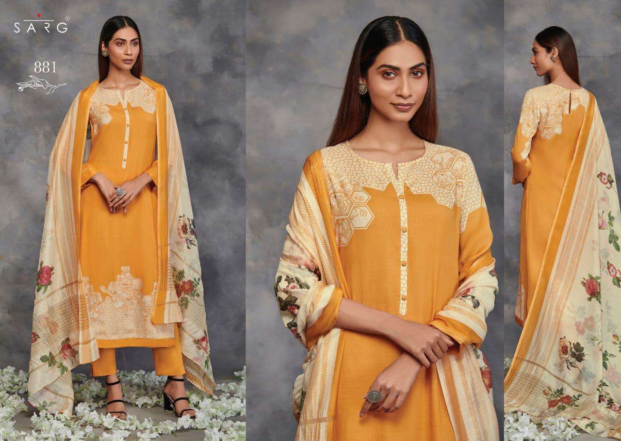 Sarg Presents Latest Collection Launched on 17-03-2021. Presenting Beautiful collection of 5 PCS with Unstitched .