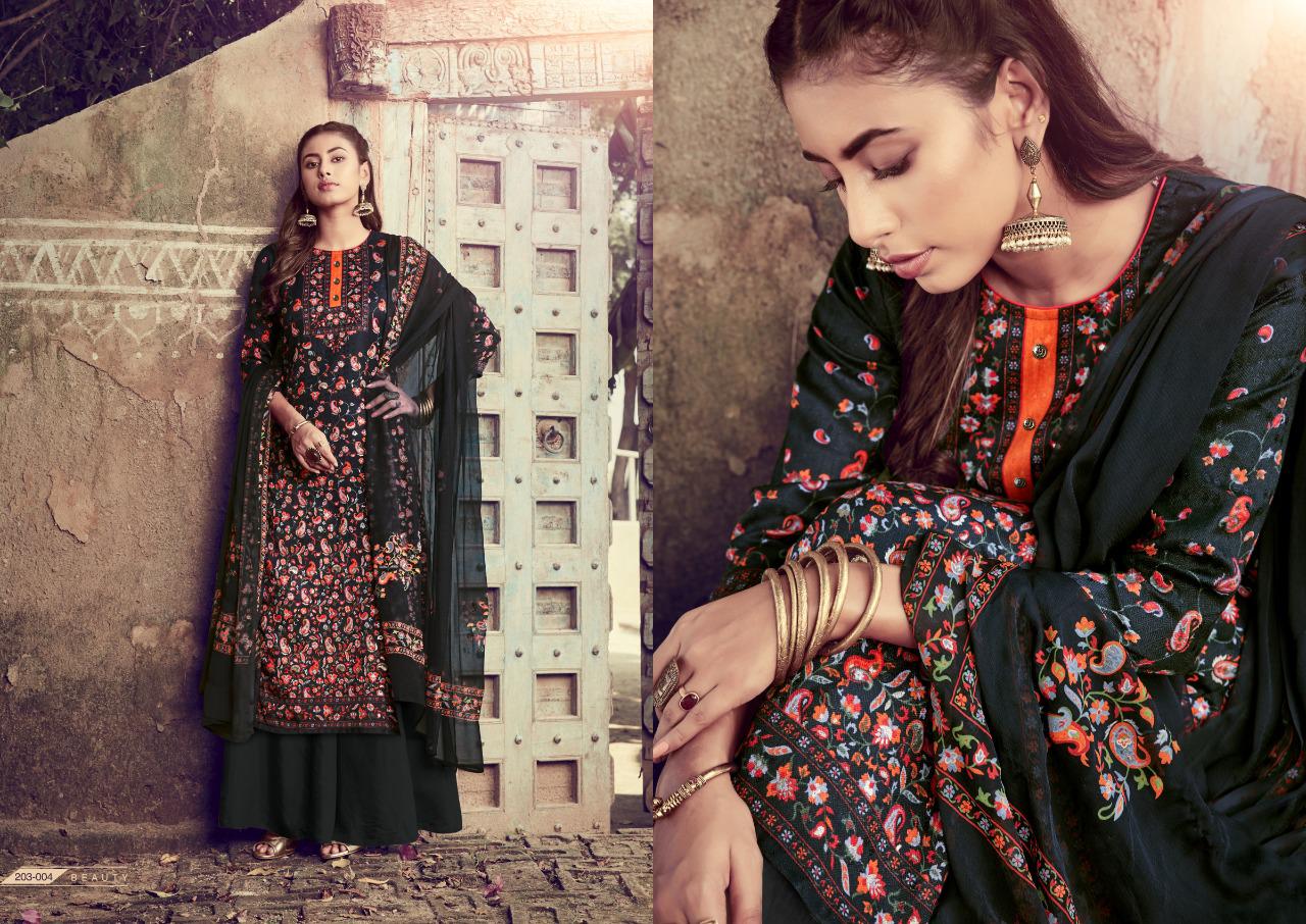 **MEHROON** 👊Fabric Details👊 Top: PURE PASHMINA DISCHARGE PRINT WITH FOIL Bottom :PASHMINA DYED Dupatta: PURE BEMBERG PRINT WITH FOIL. Designs: 8 pcs Rate: ₹895 HSN CODE: 5407 |