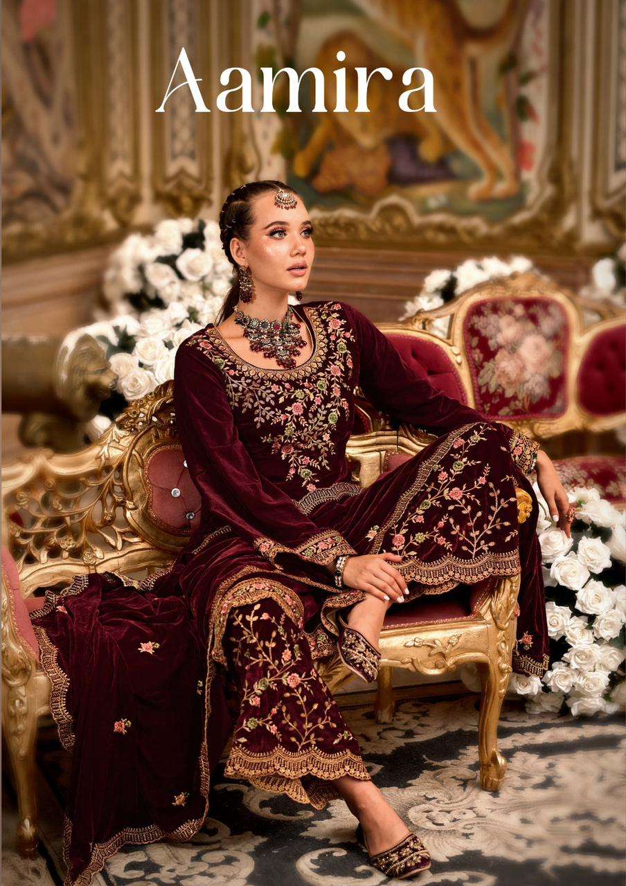 sargam prints present aamira pakistani velvet suits collection