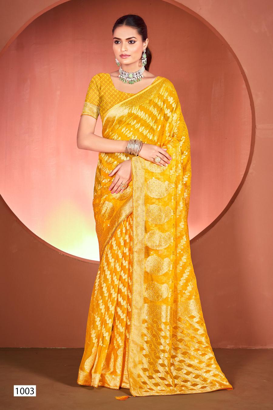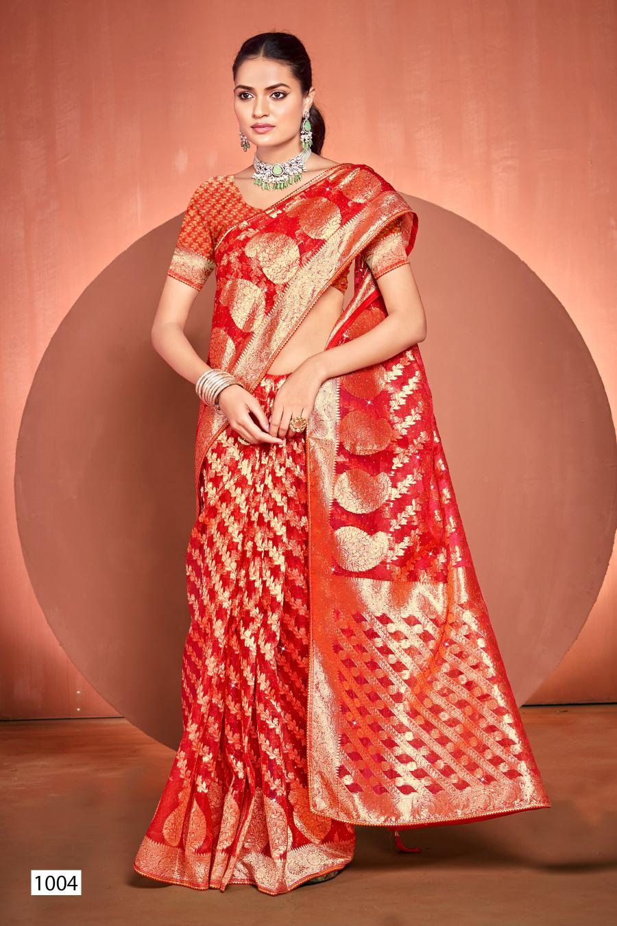 Ankita Swaroski vol.5 Soft Organja Swarovski Work With Piping Border Rich Pallu Rate-₹580/- |