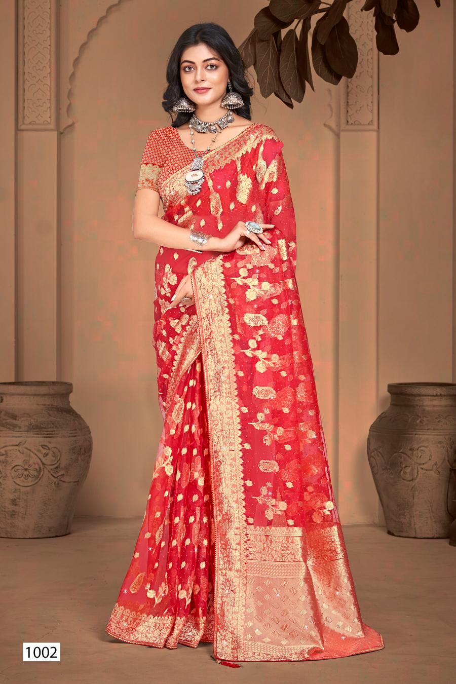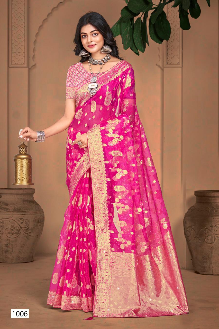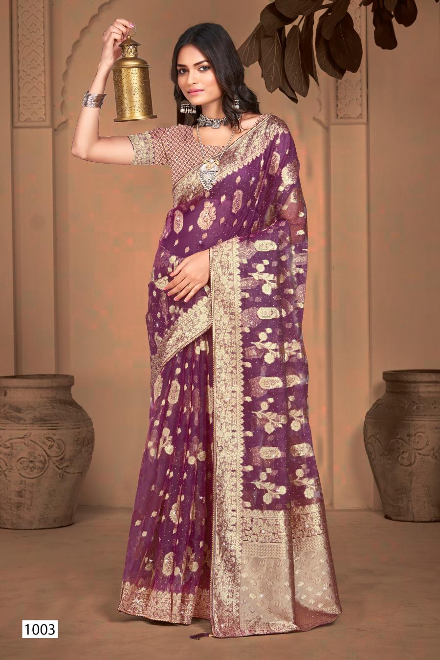 Saroj Ankita Swarovski Vol.6 organza silk saree