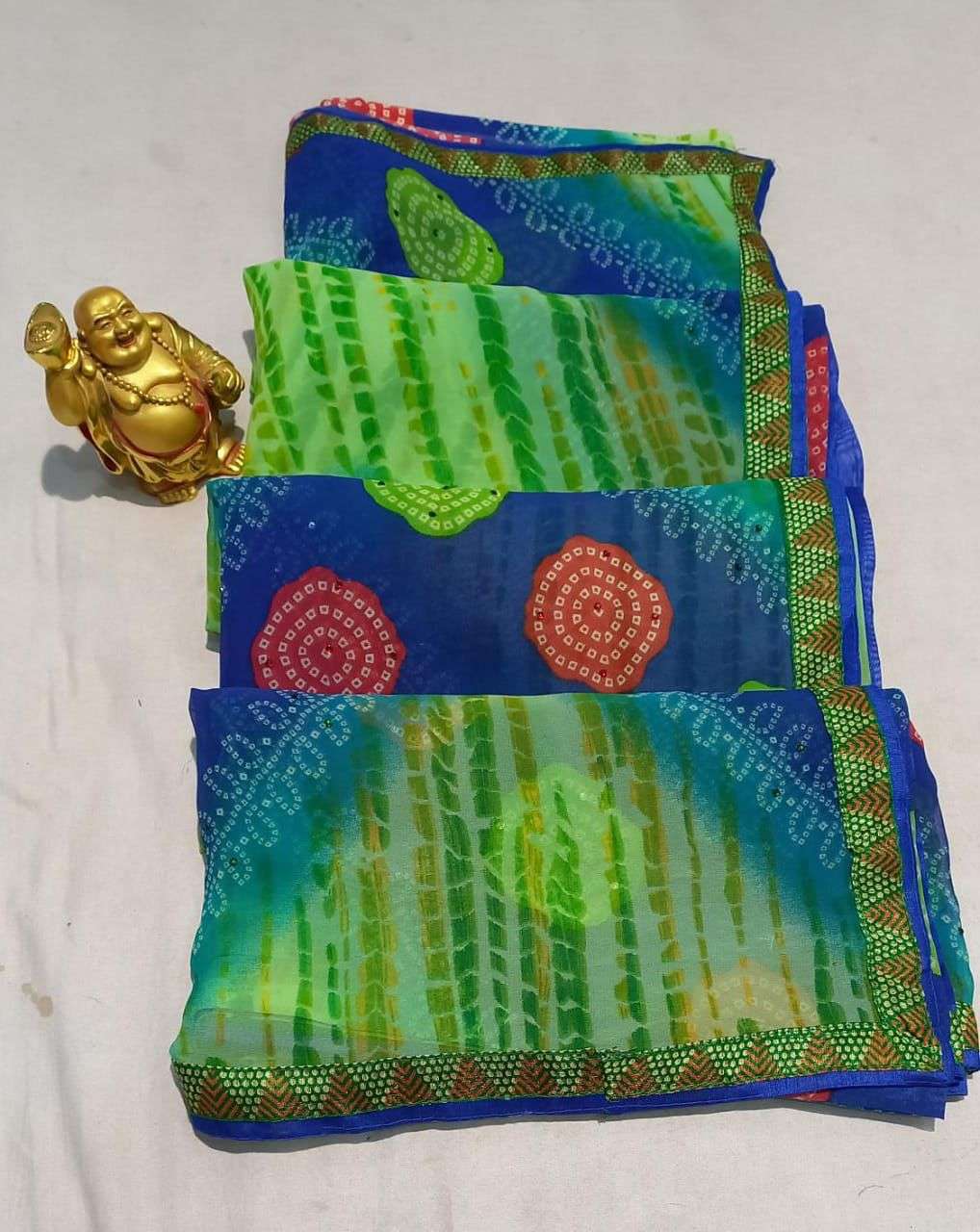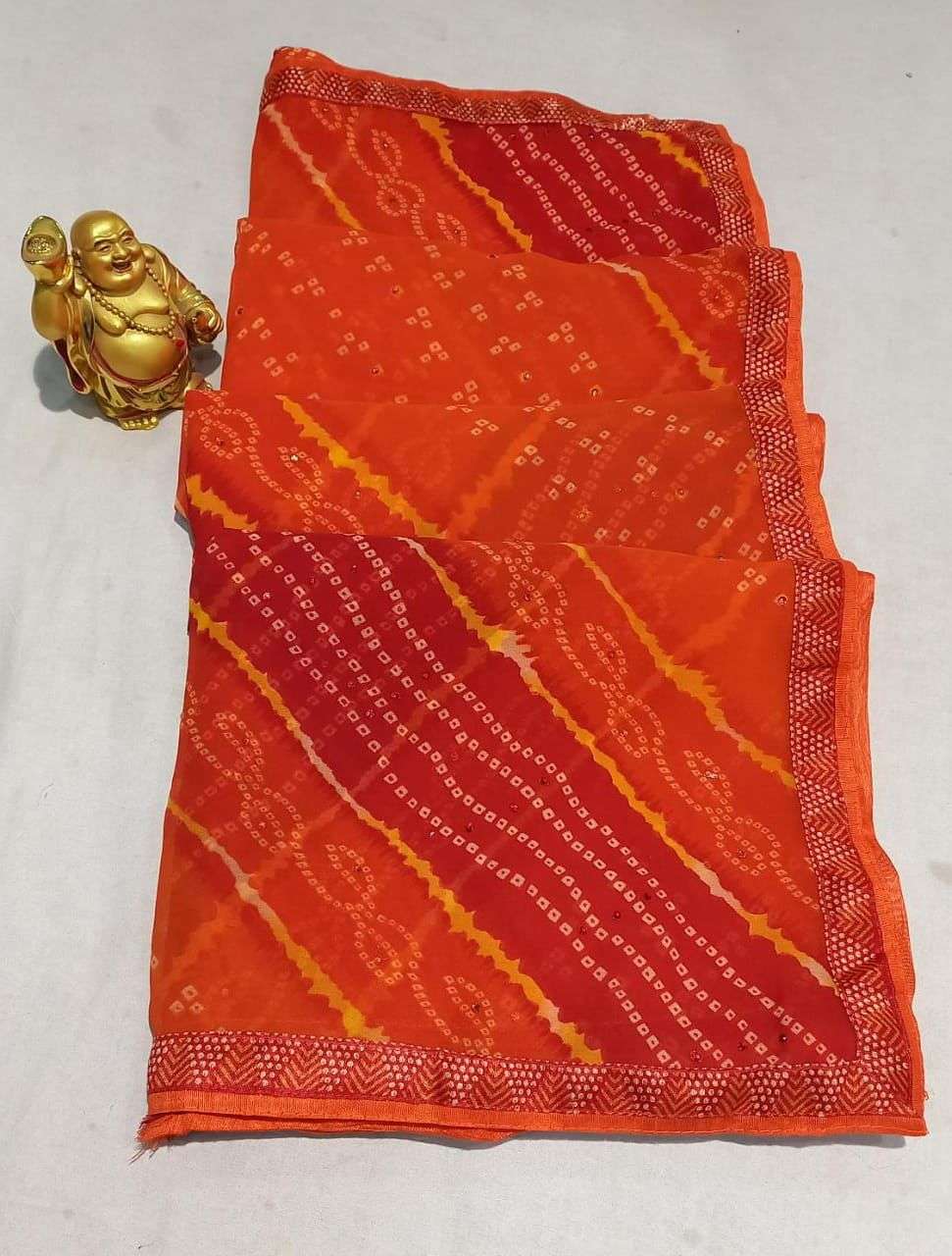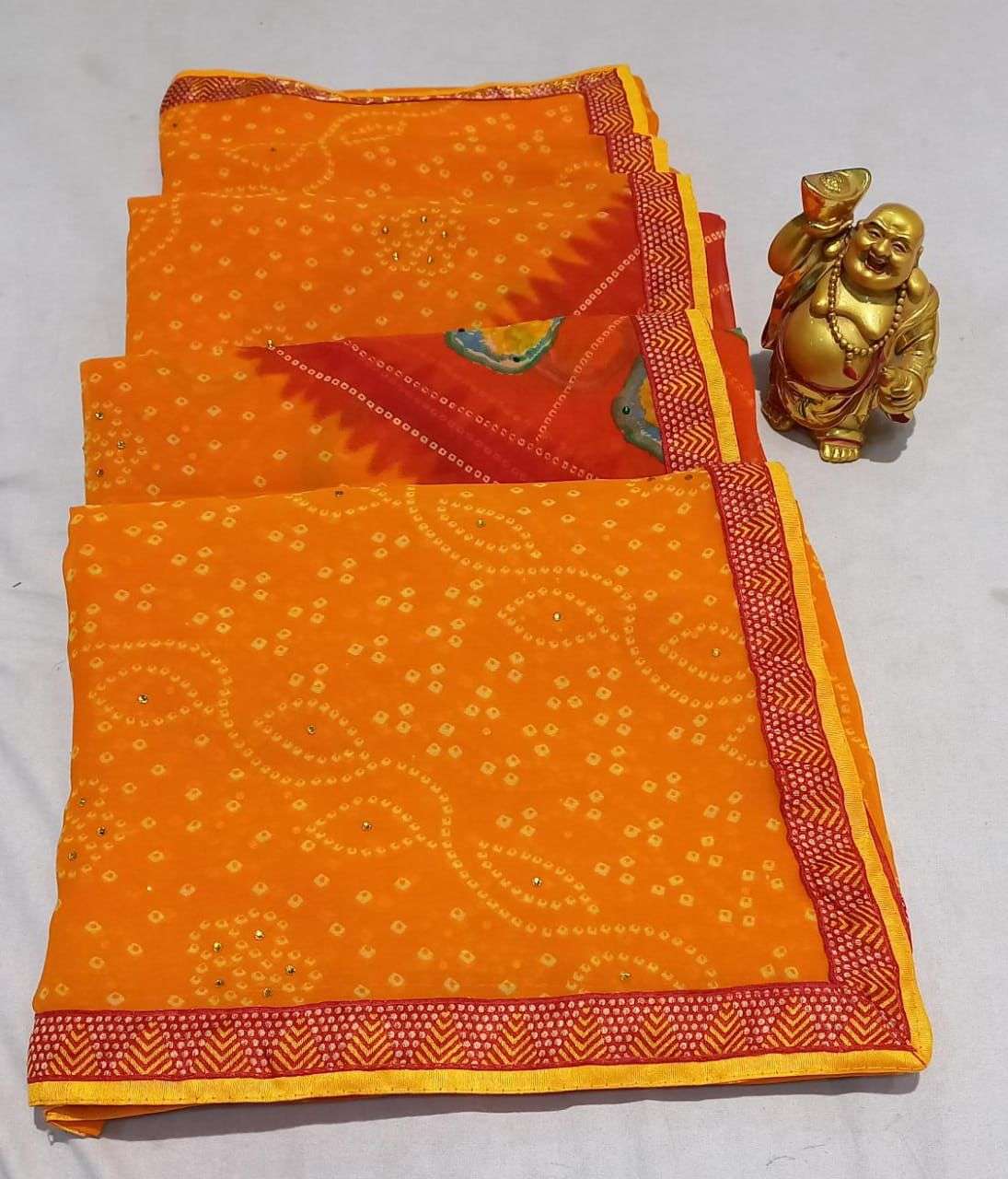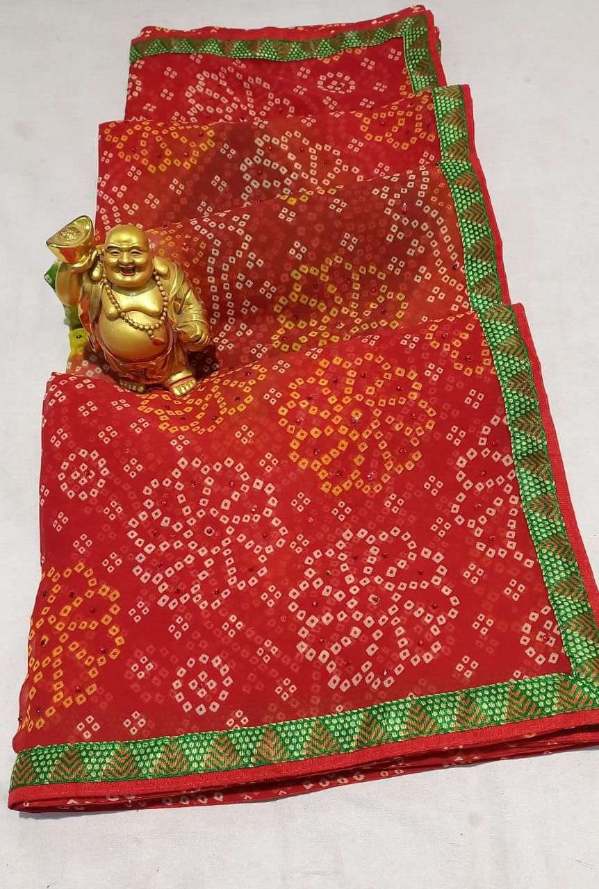 NEW TRADITIONAL PRINT BANDHANI CATALOUGE WITH PRINT CONCEPT BORDER (TILL LAST AND ON BLOUE) DIAMOND WORK ON IT
