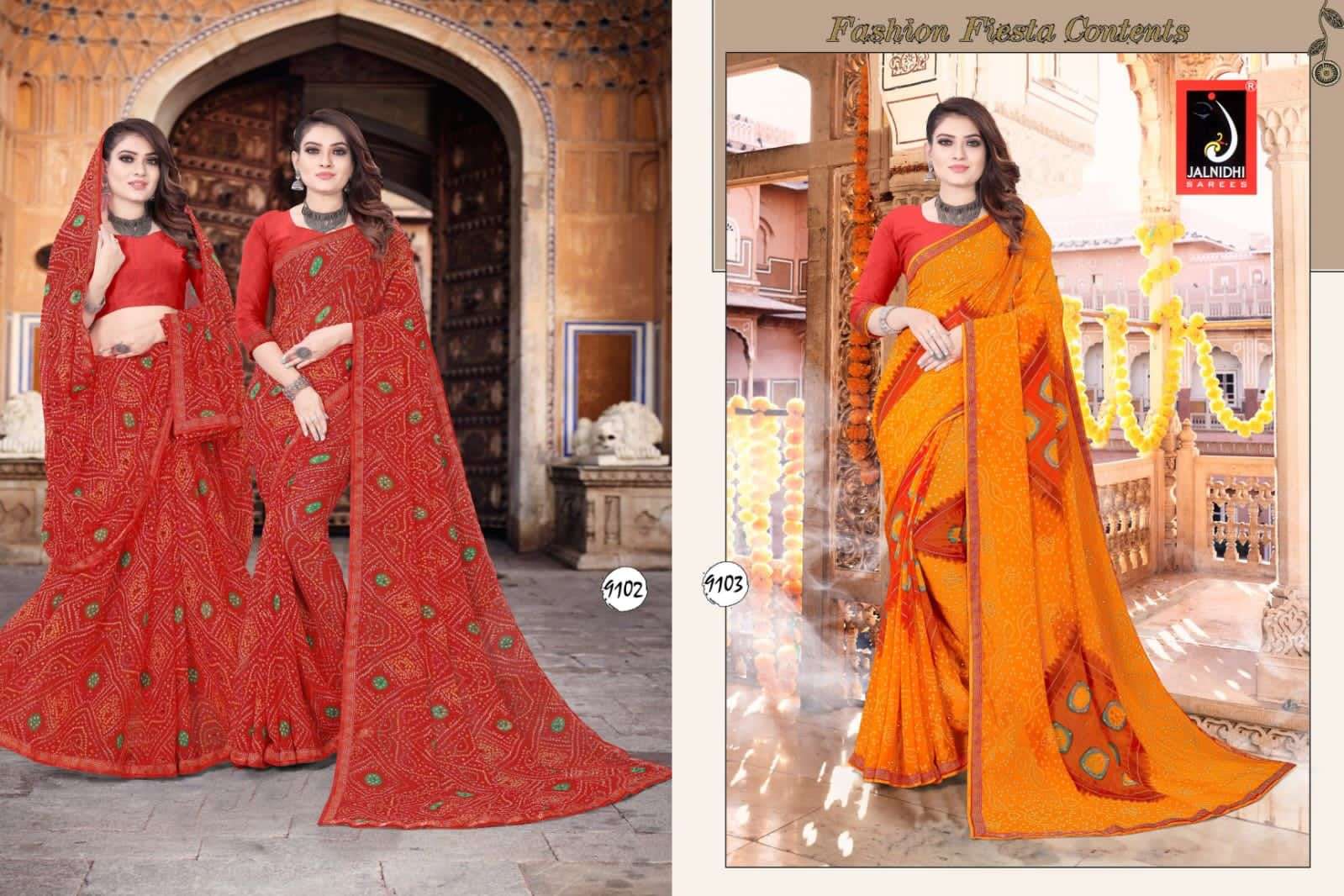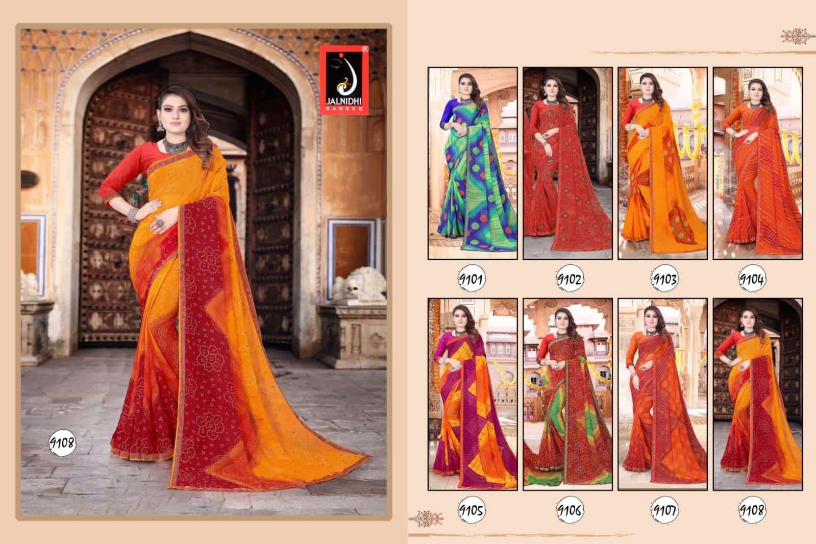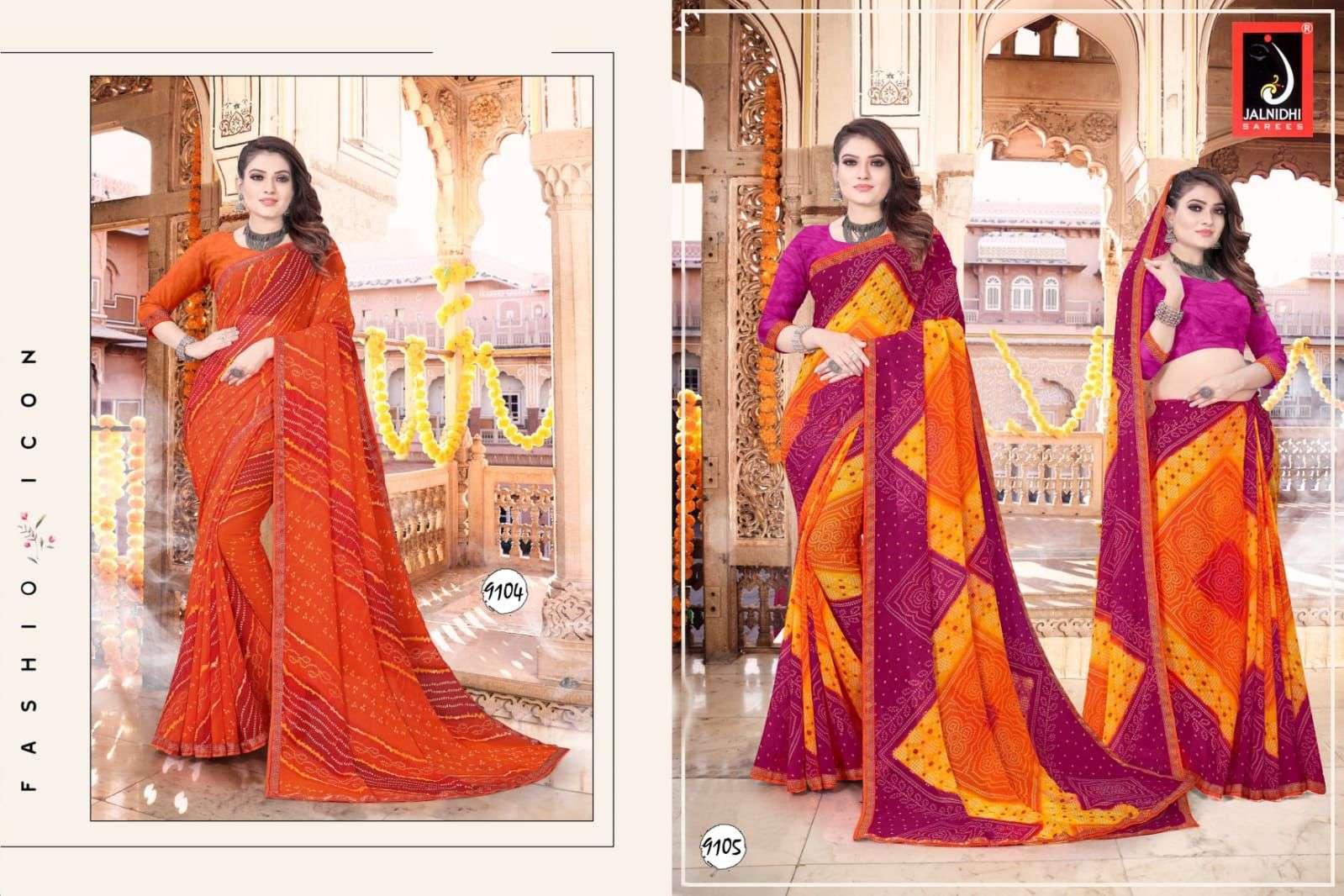 NEW TRADITIONAL PRINT BANDHANI CATALOUGE WITH PRINT CONCEPT BORDER (TILL LAST AND ON BLOUE) DIAMOND WORK ON IT