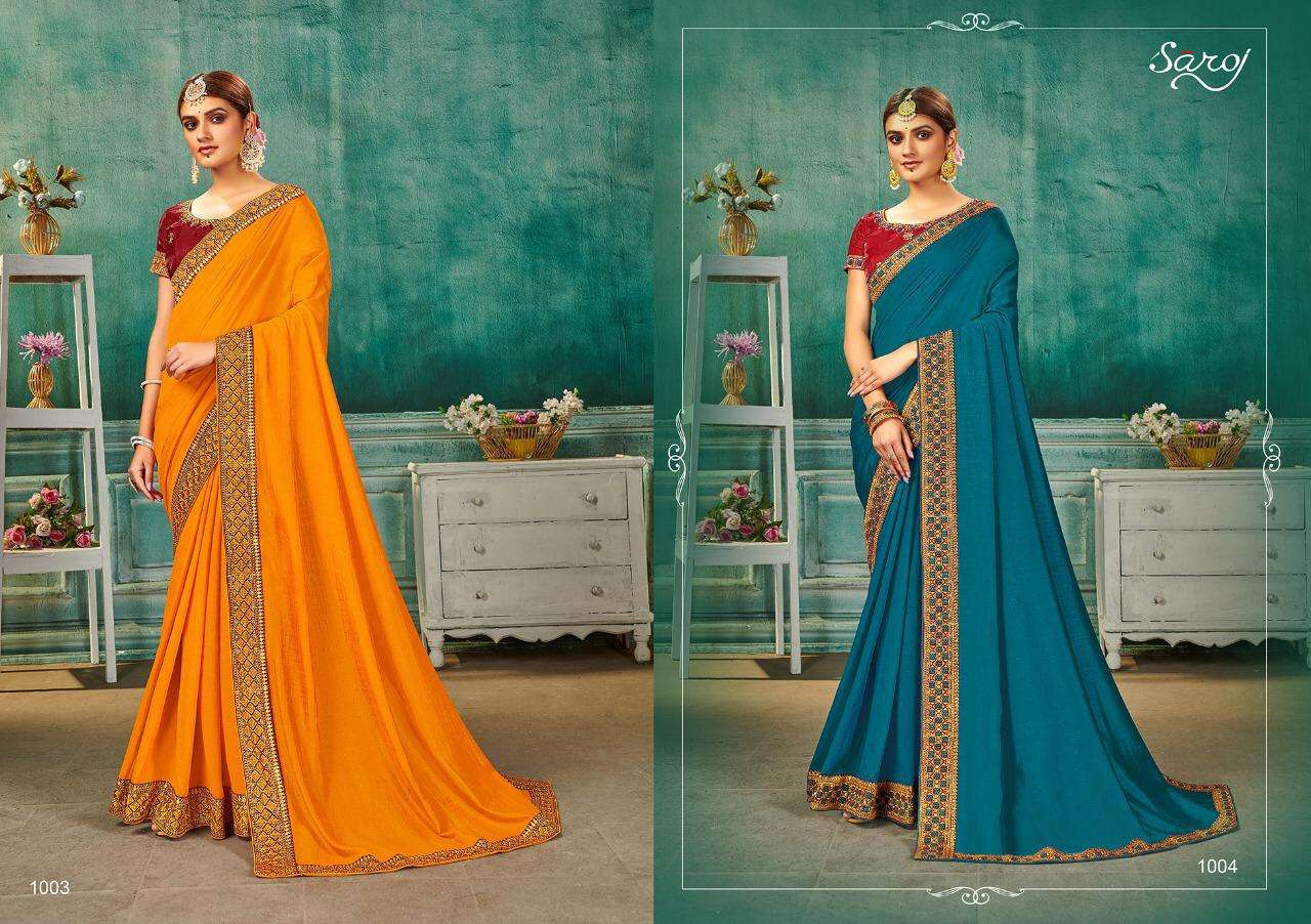 Brand - Saroj *Devika (Rs.815 per PCâs ) * Fabric: Soft P x C Vichitra Dyed Silk with Beauti Full Border. Blouse: Banglori Silk. Delivery 3 days 8 Design in set . Set to set |
