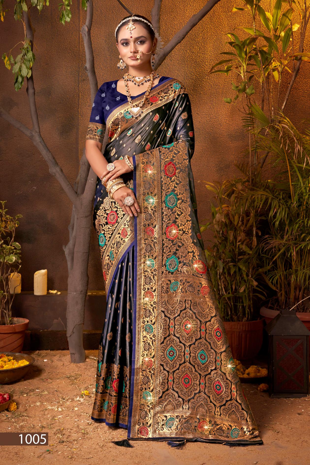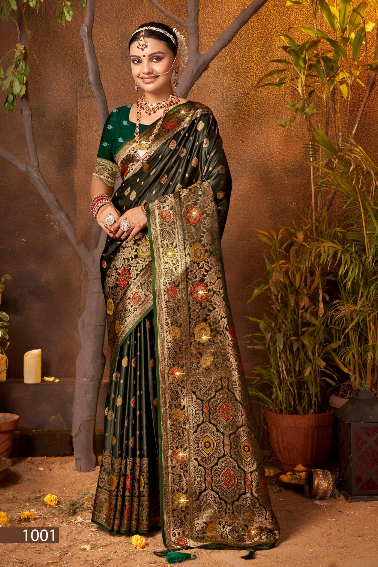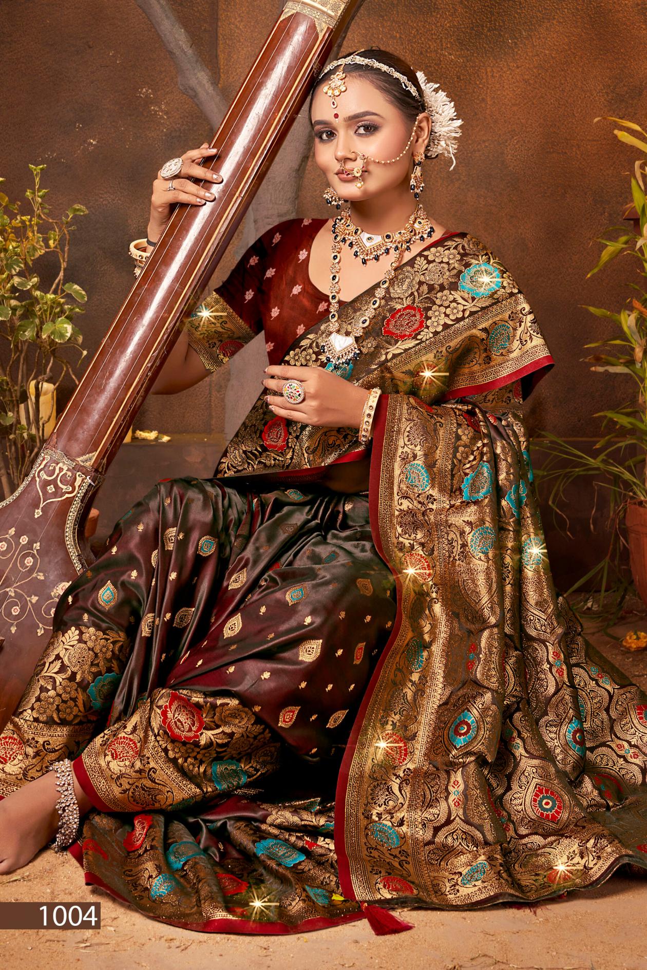 English Sattin Swaroski vol.1 Pure Sattin Silk Mina With Swarovski Work Rich Pallu Saree Rate-1385/- |