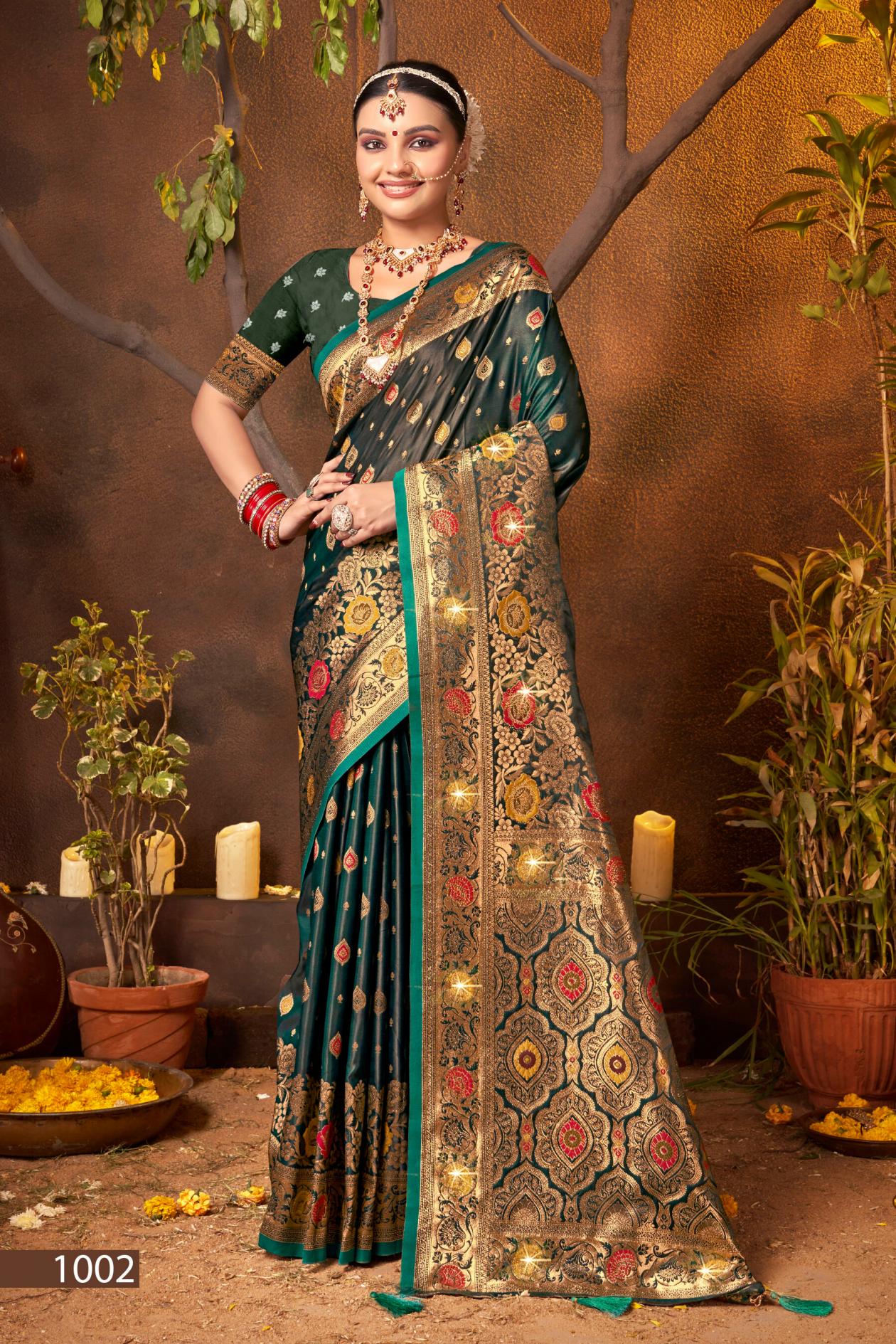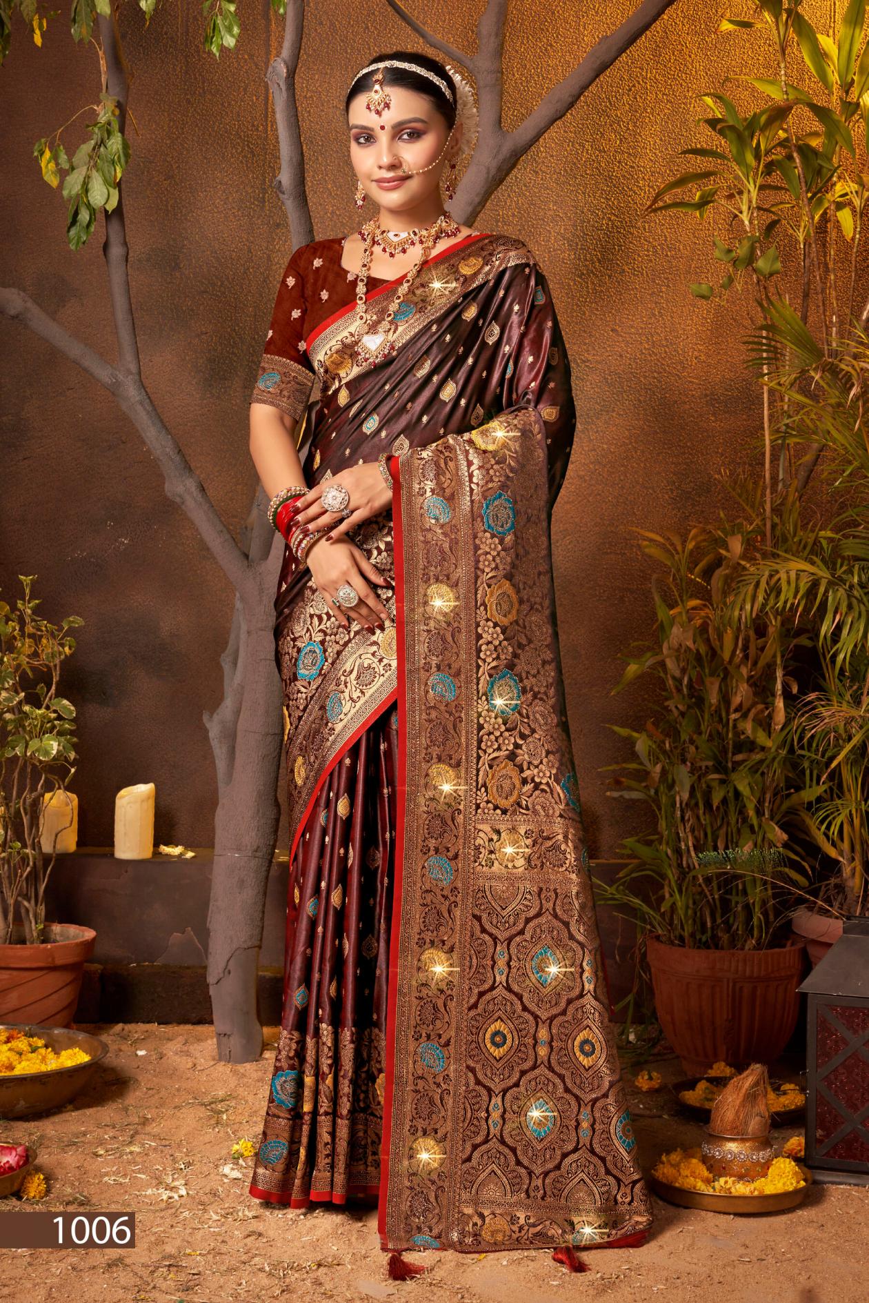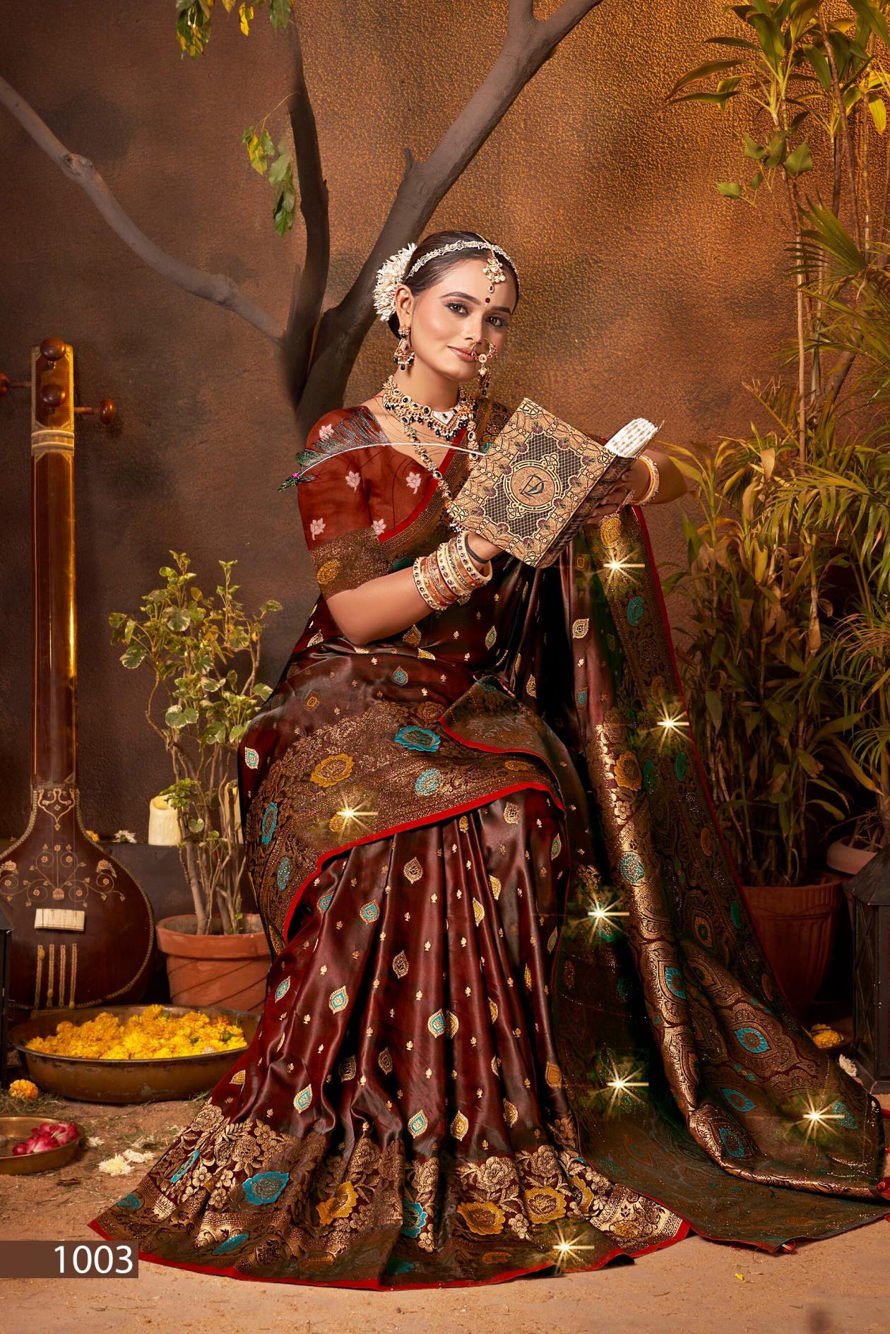 English Sattin Swaroski vol.1 Pure Sattin Silk Mina With Swarovski Work Rich Pallu Saree Rate-1385/- |
