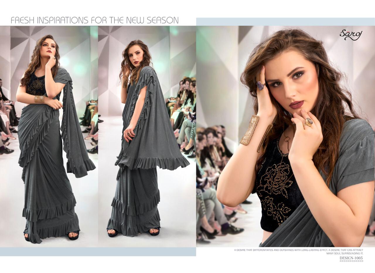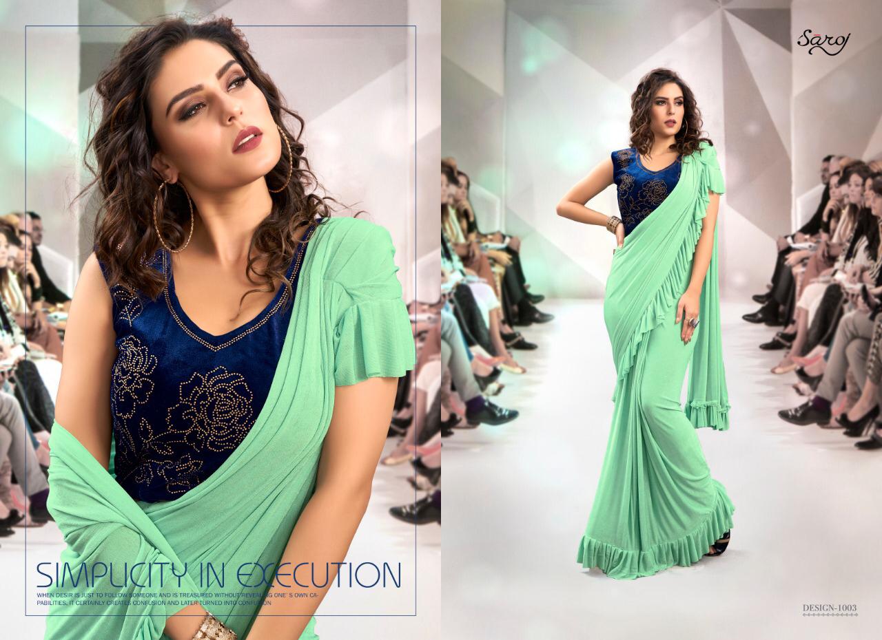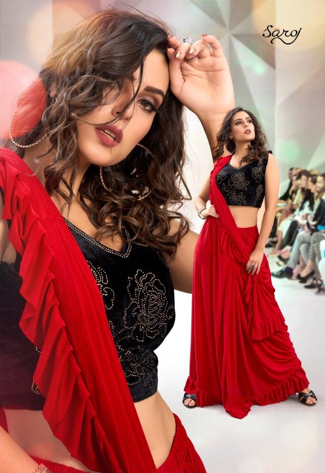 Saroj Film Fare Frill Readymade To Wear Saree With Readymade Blouse Seller
