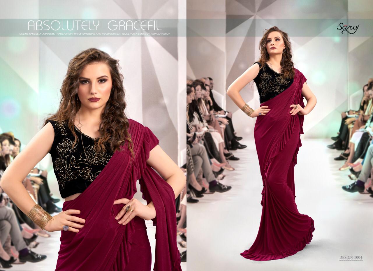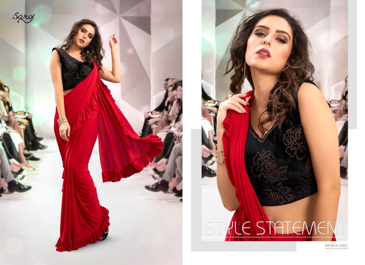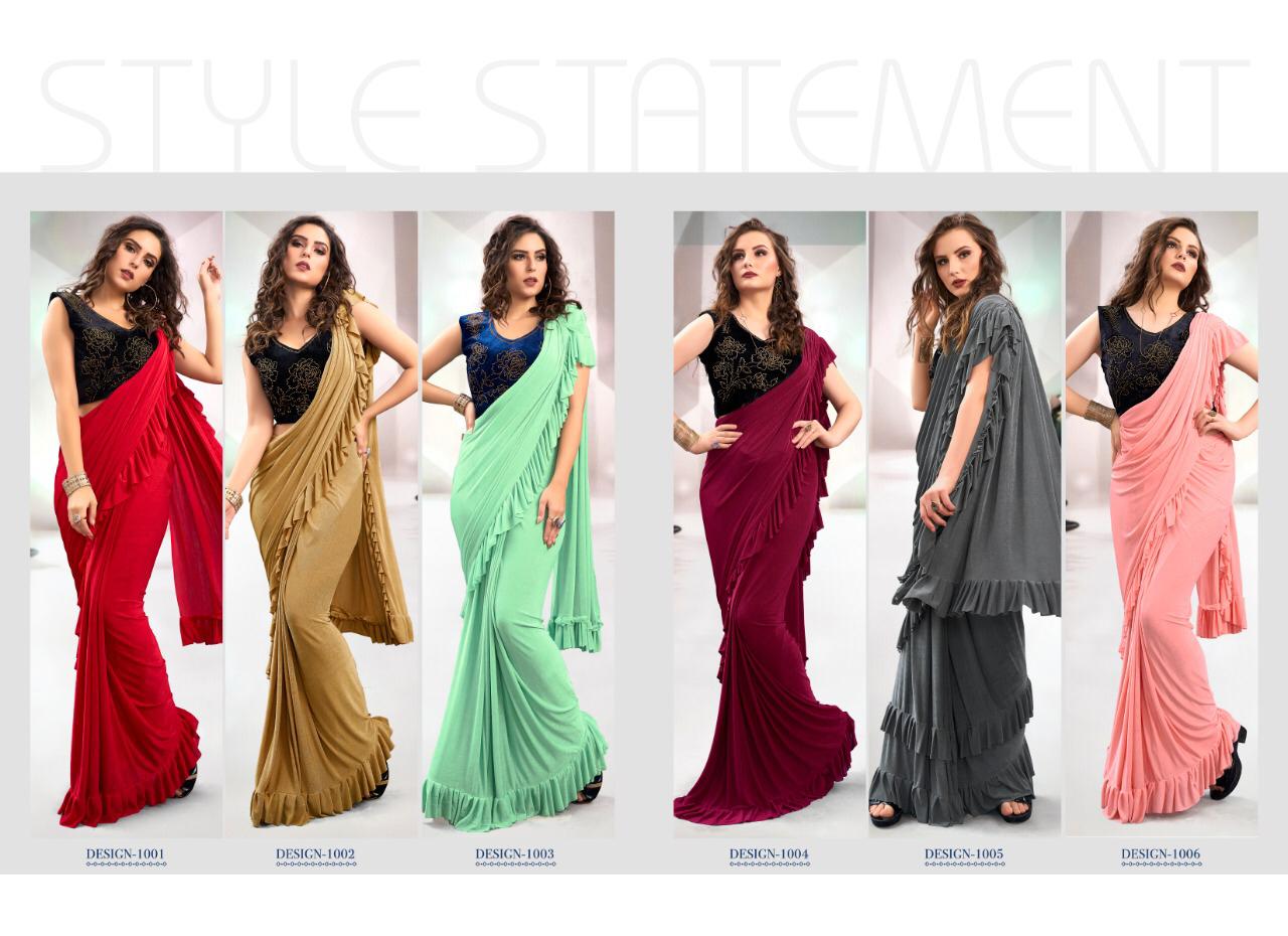 Saroj Film Fare Frill Readymade To Wear Saree With Readymade Blouse Seller