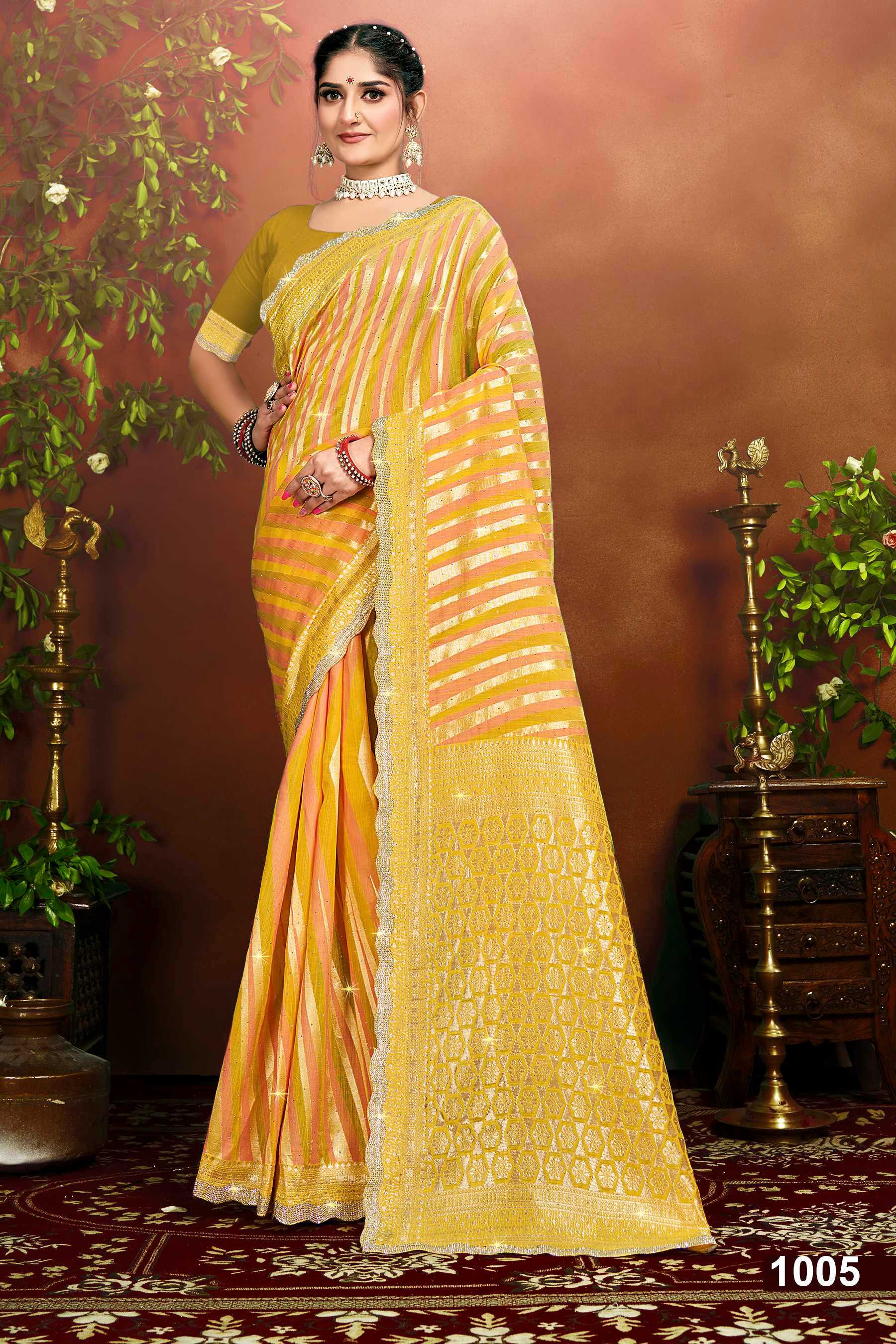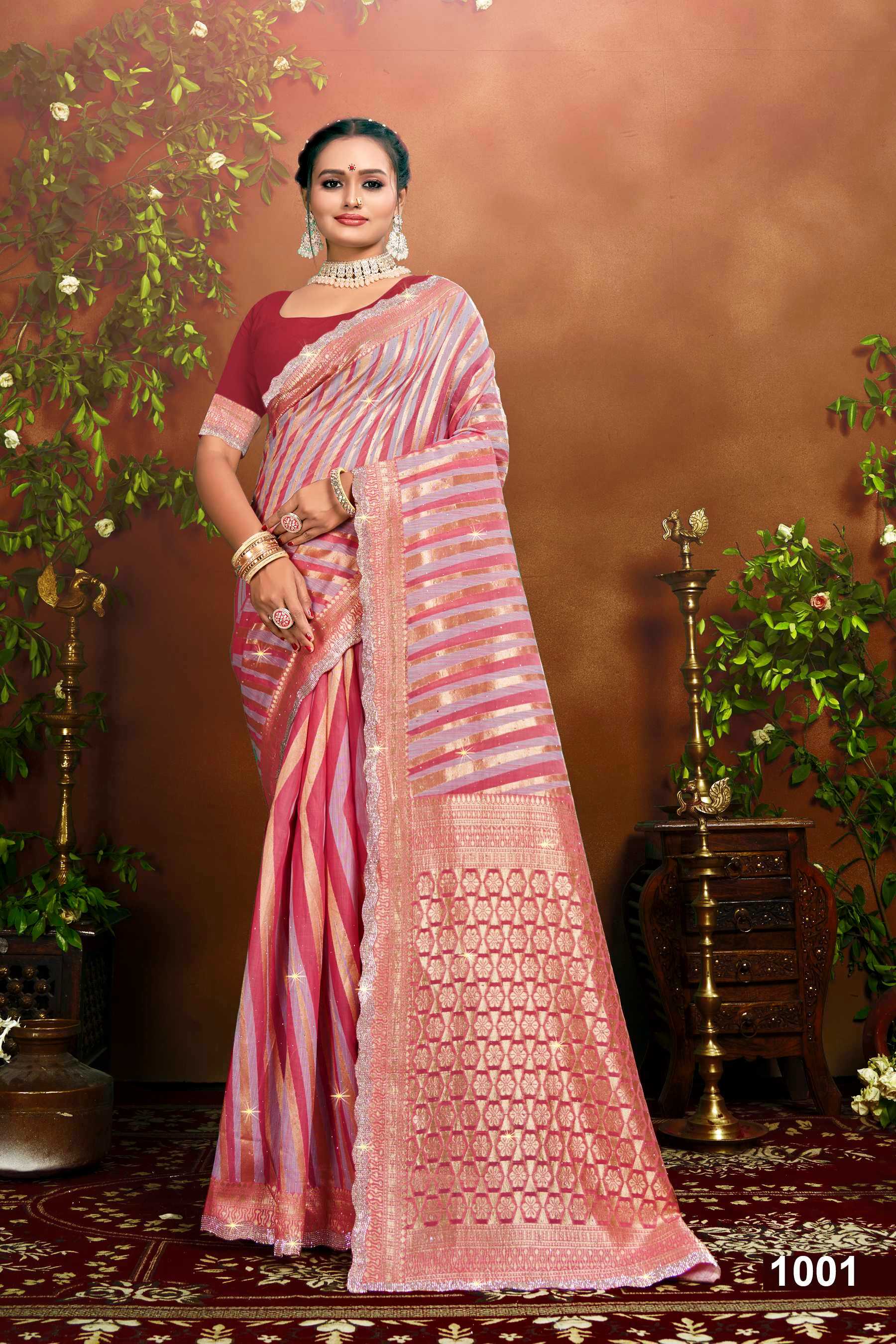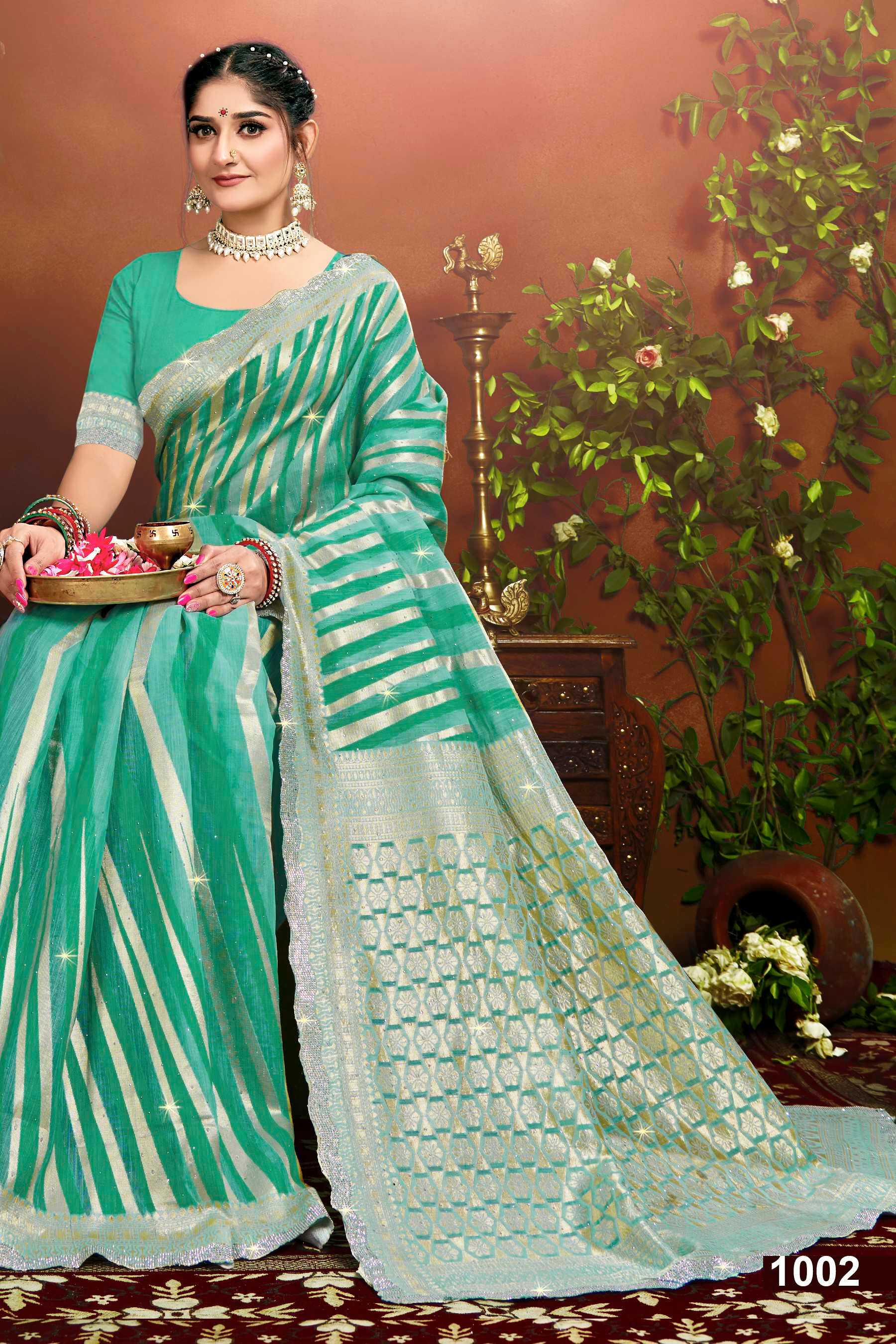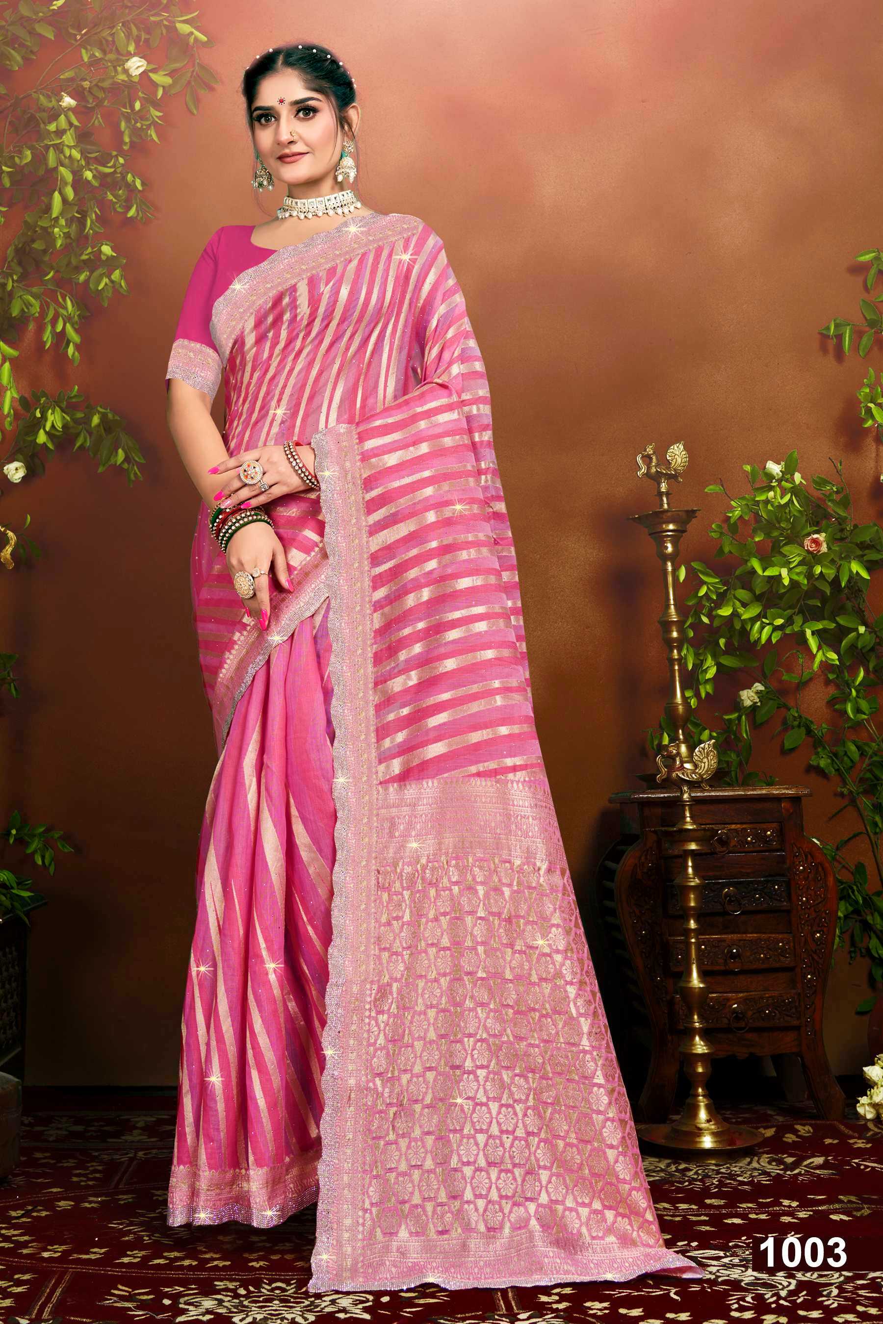 Saroj Fortune Linen Swaroski vol.3 linen silk saree