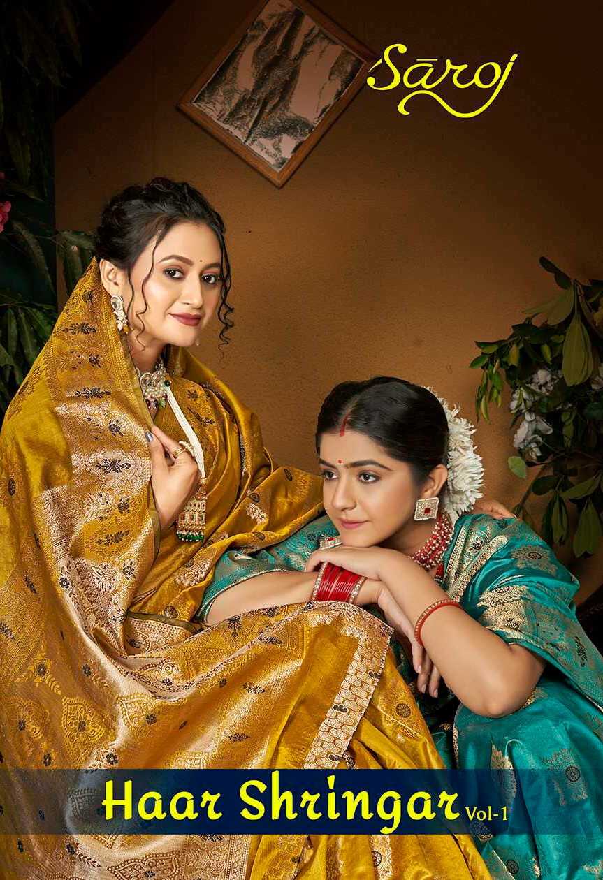Saroj Saree HAAR SHRINGAR Vol-1 6 Designs Packing Premium CXC Orgenza Silk in Bright Matching Rate-₹560/- |