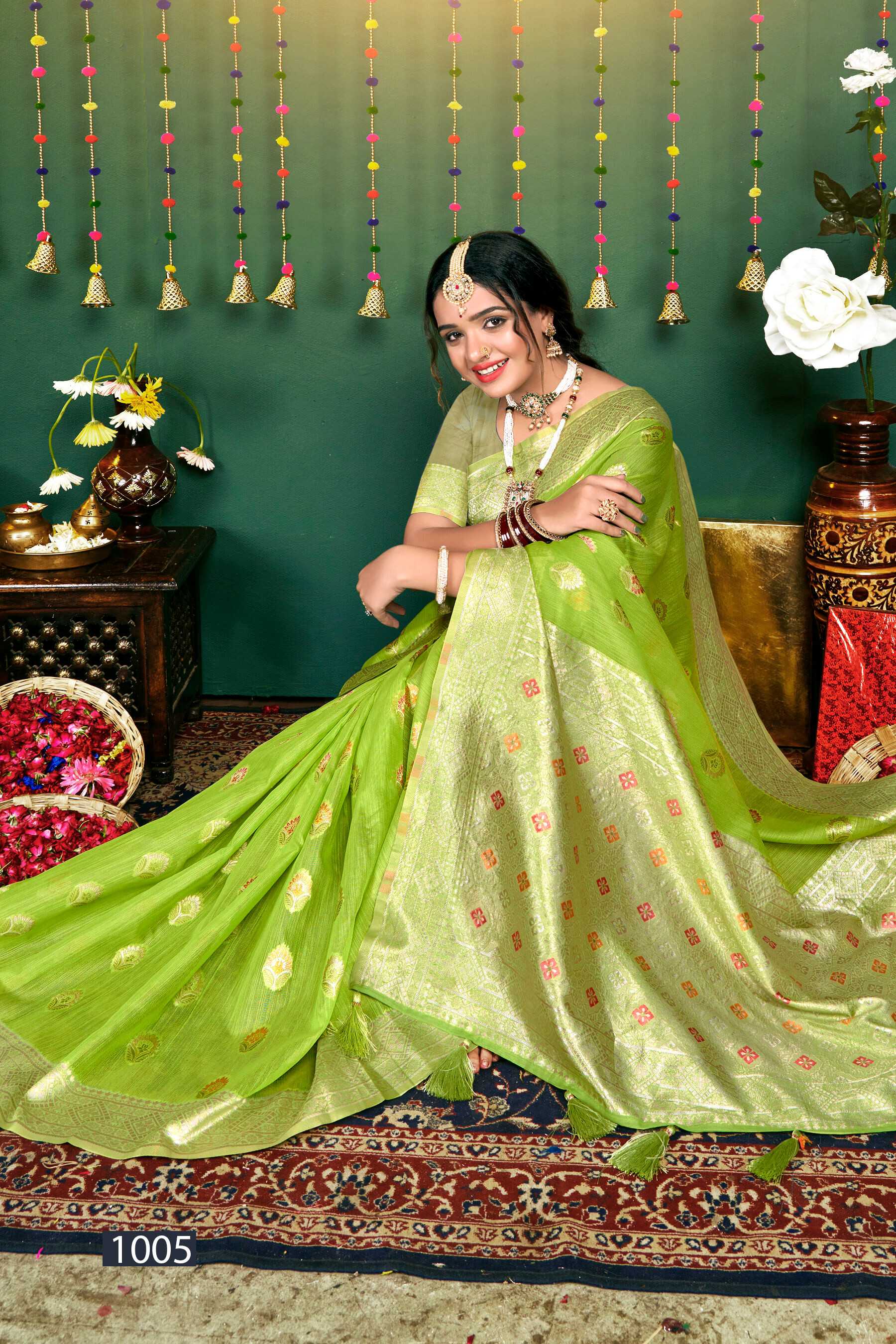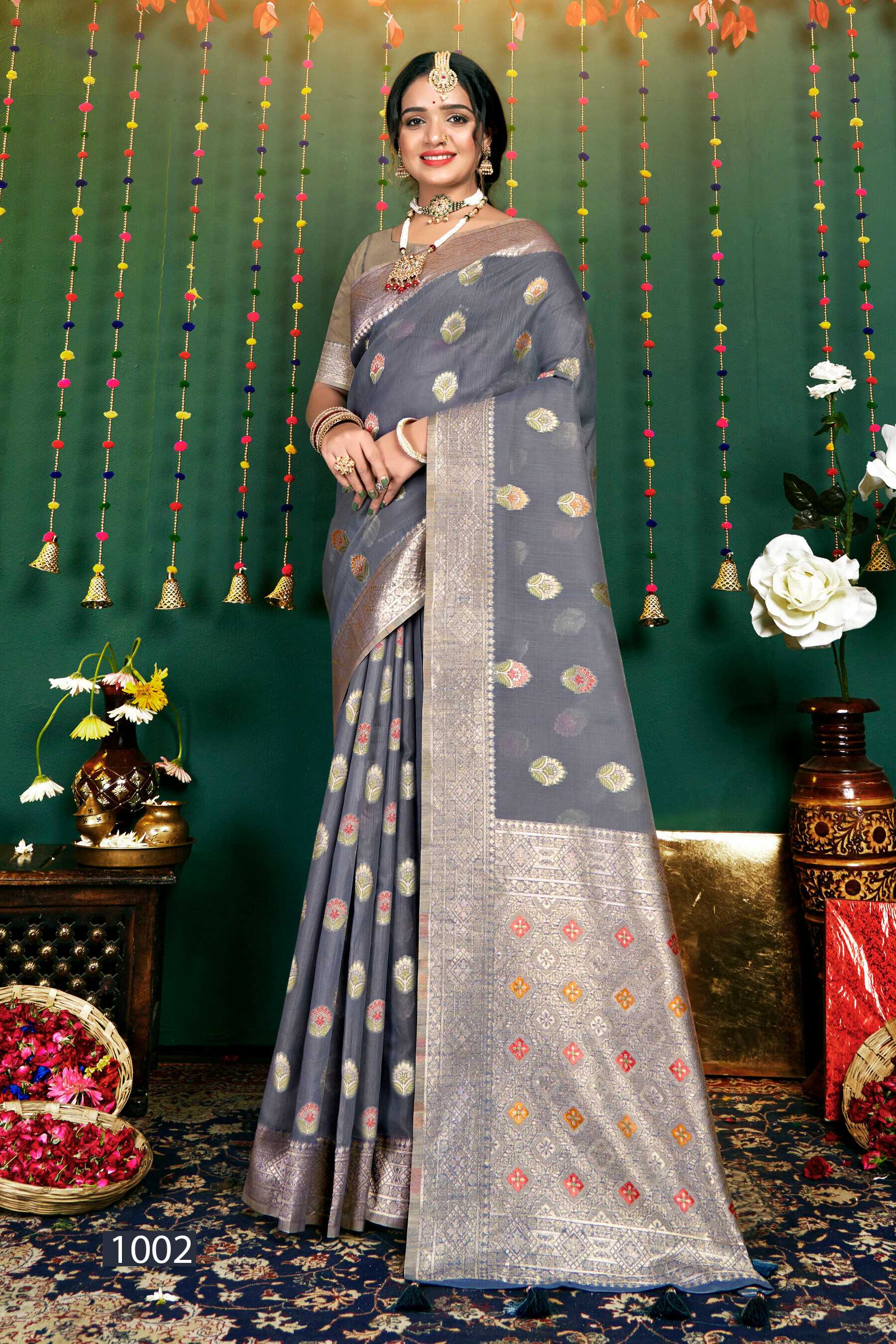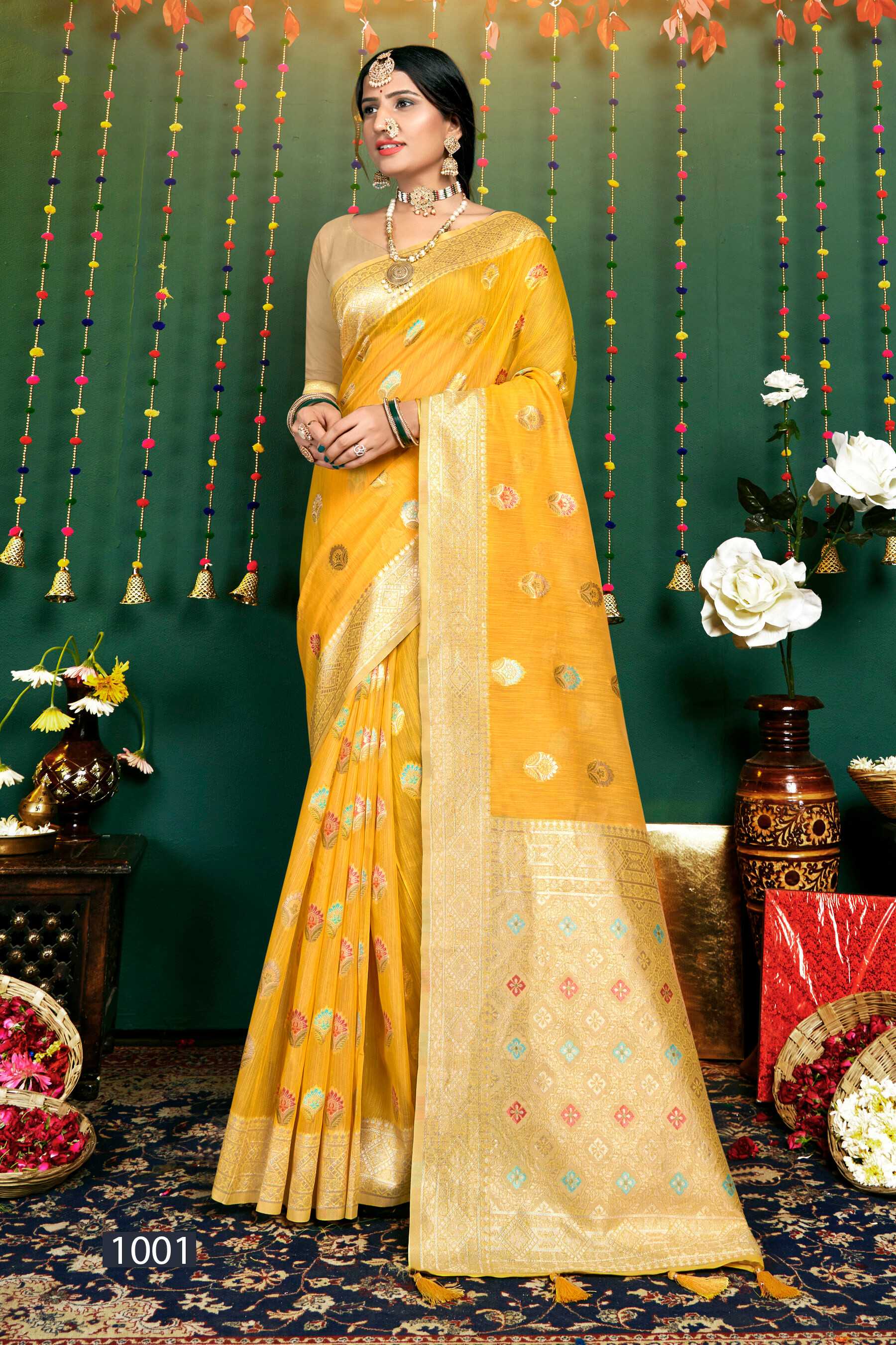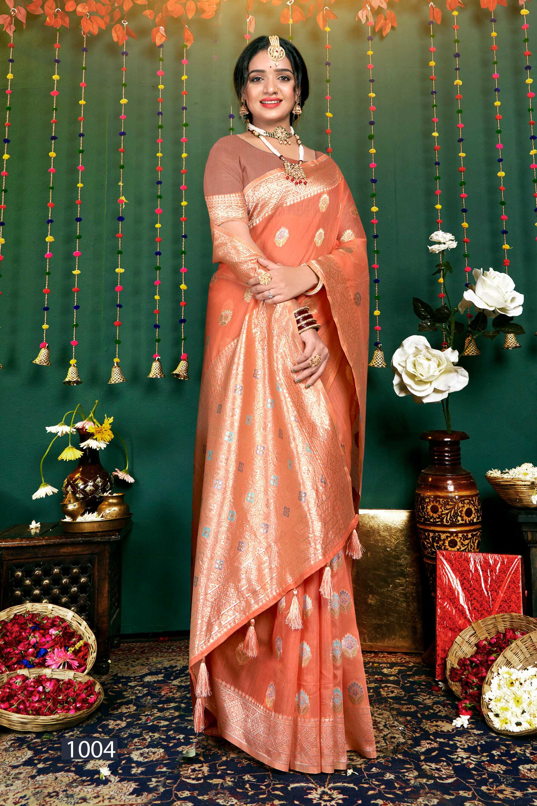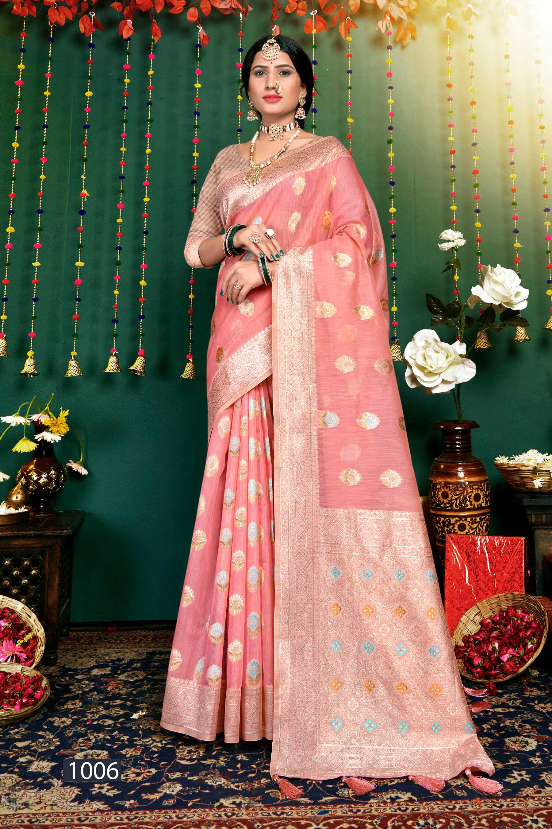Saroj Saree HULCHUL LINEN VOL.2 Heavy Pure Slub Linen Fabric with Fancy Meena Designs Saree Rate-₹695/- |