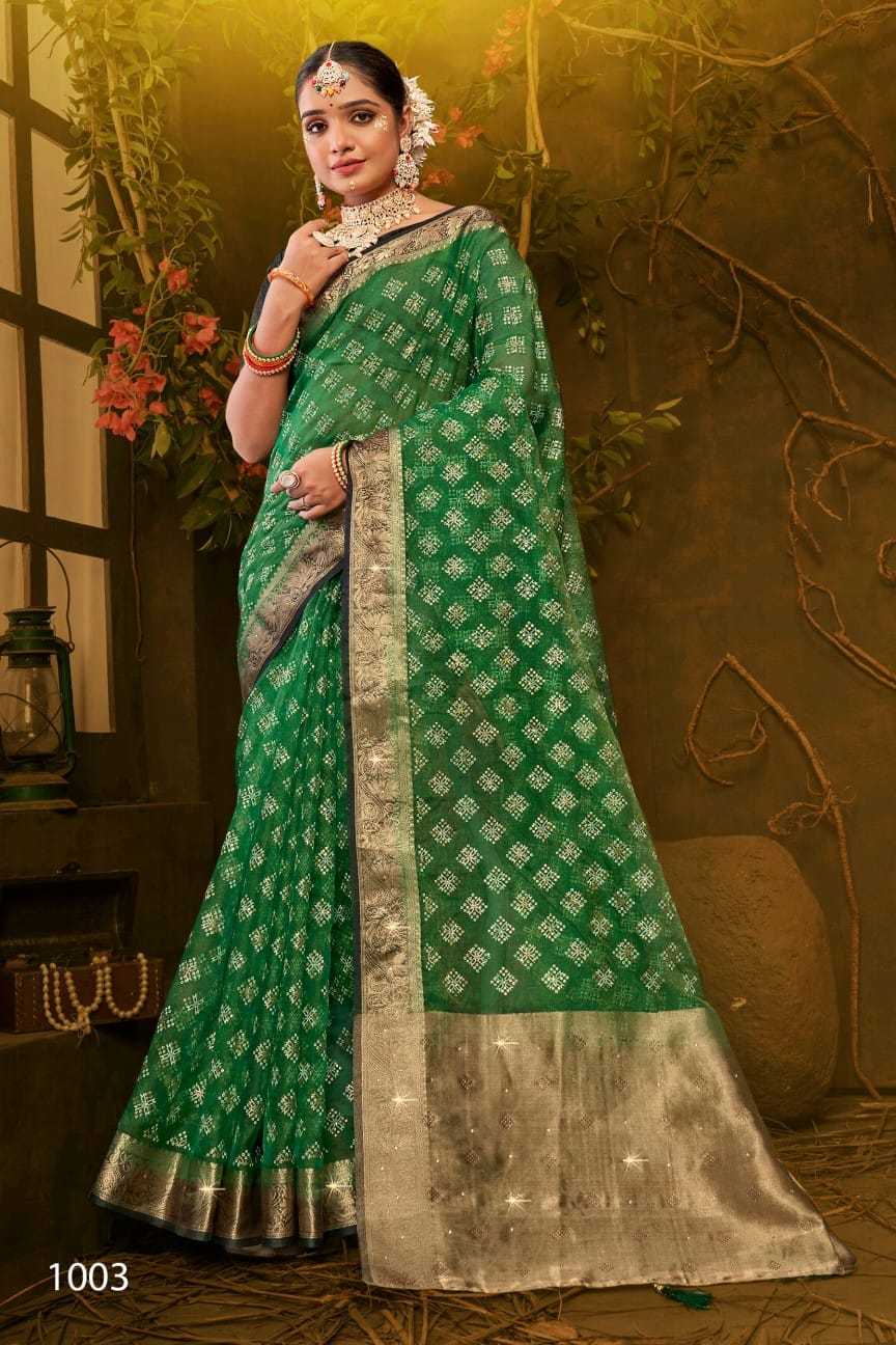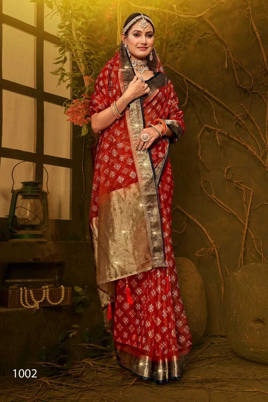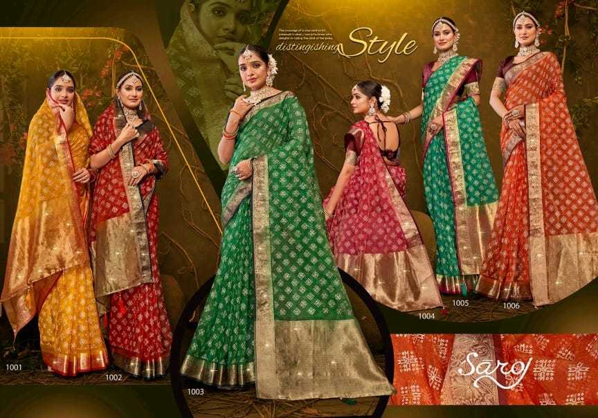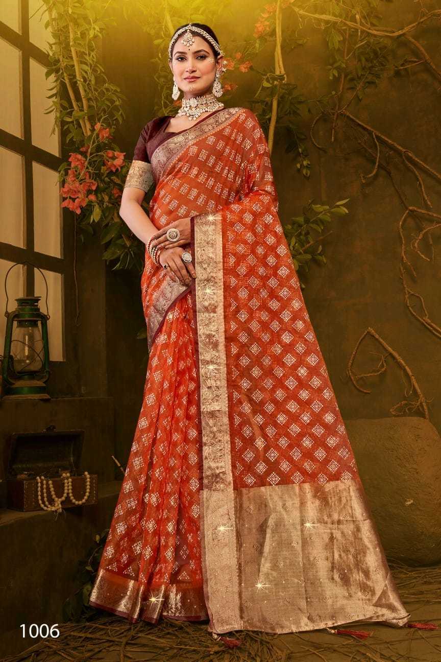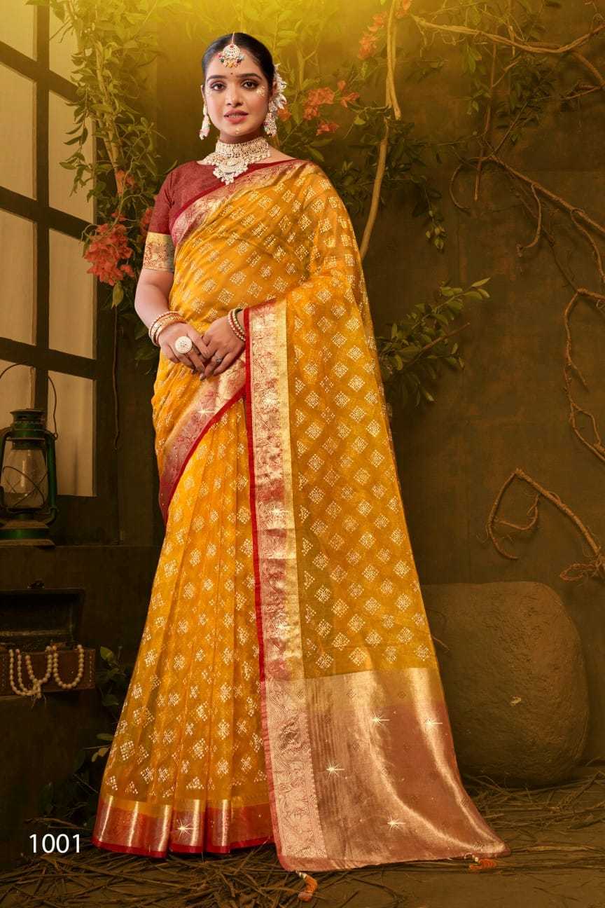Saroj Saree Imperial Gold vol 3 KHADI Organja Saree with Heavy Swaroski Rate-₹605/- per pcs GST EXTRA Set to set |