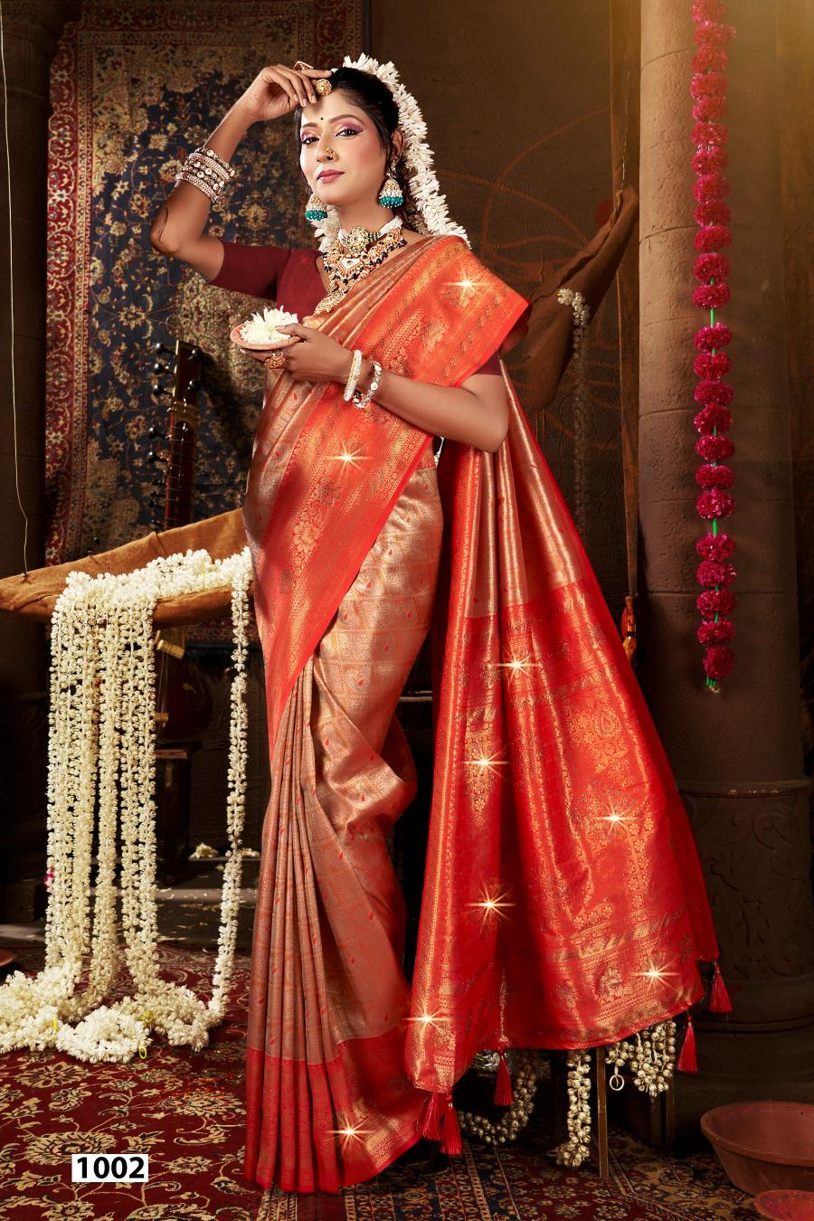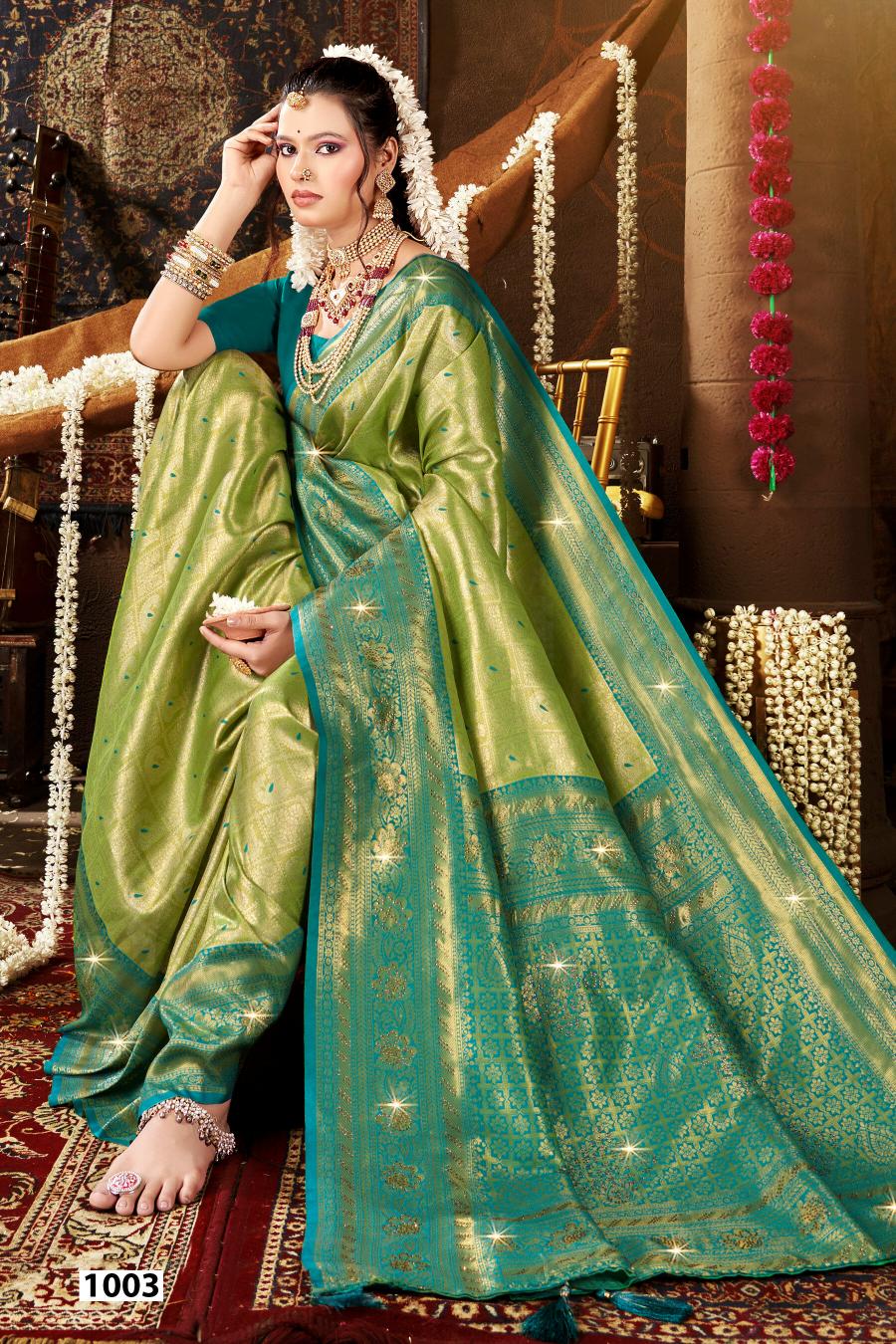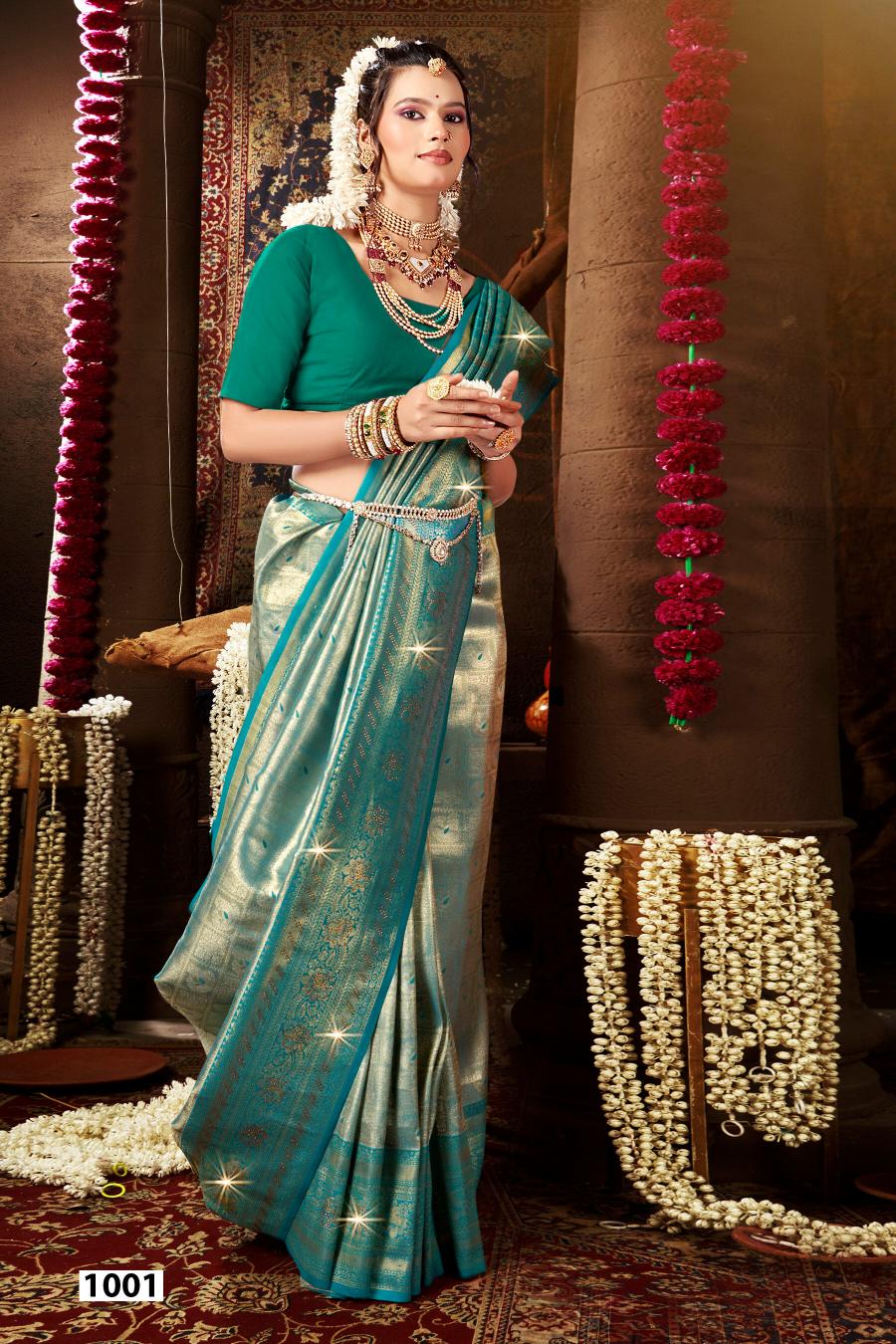Kanha Silk Saroski vol.2 Soft Kanjivaram Silk Rich Pallu Swarovski Work Saree Rate-1130/- |