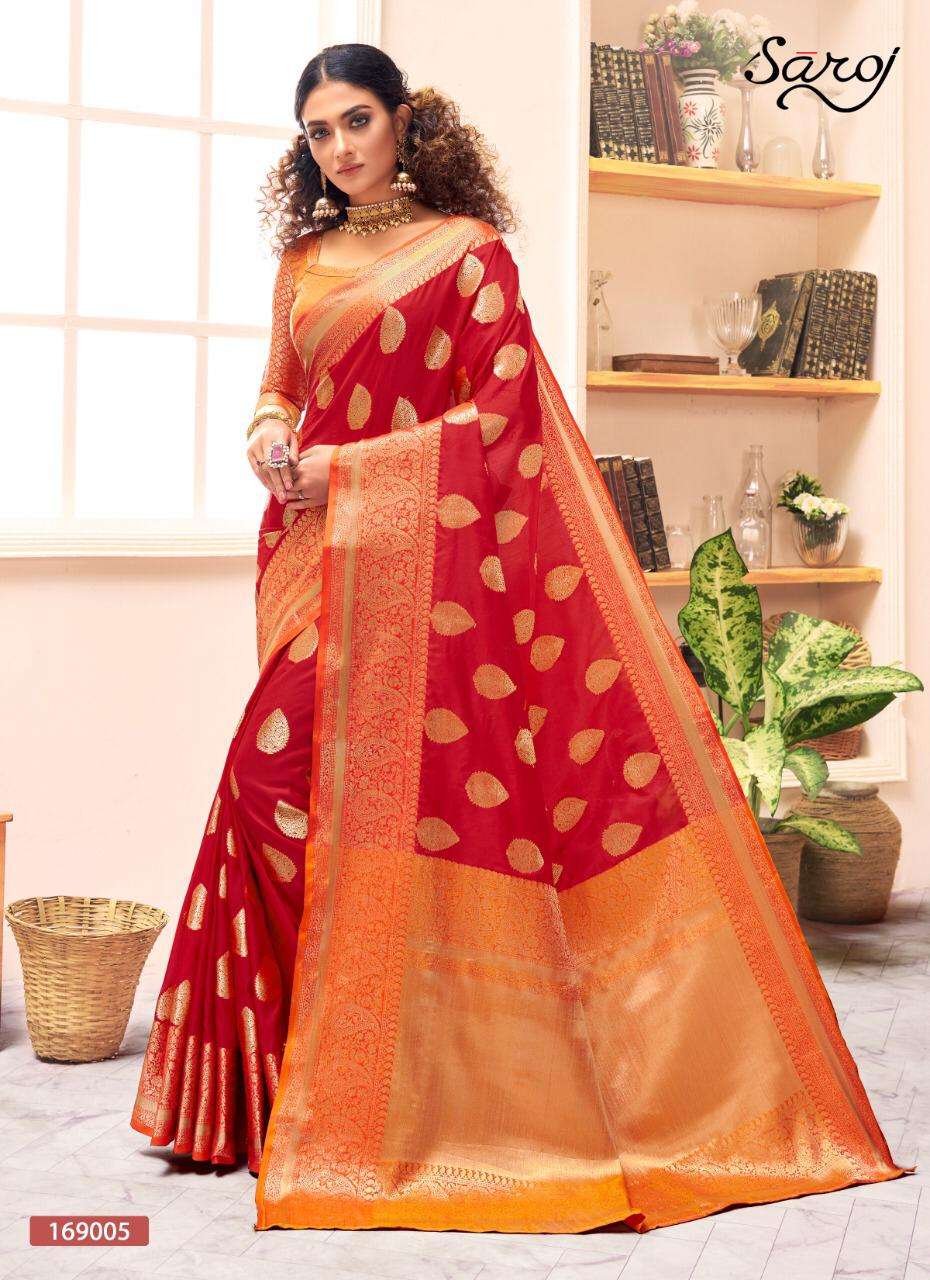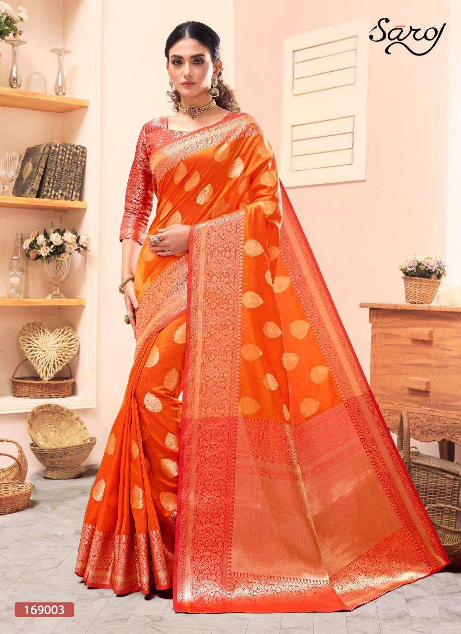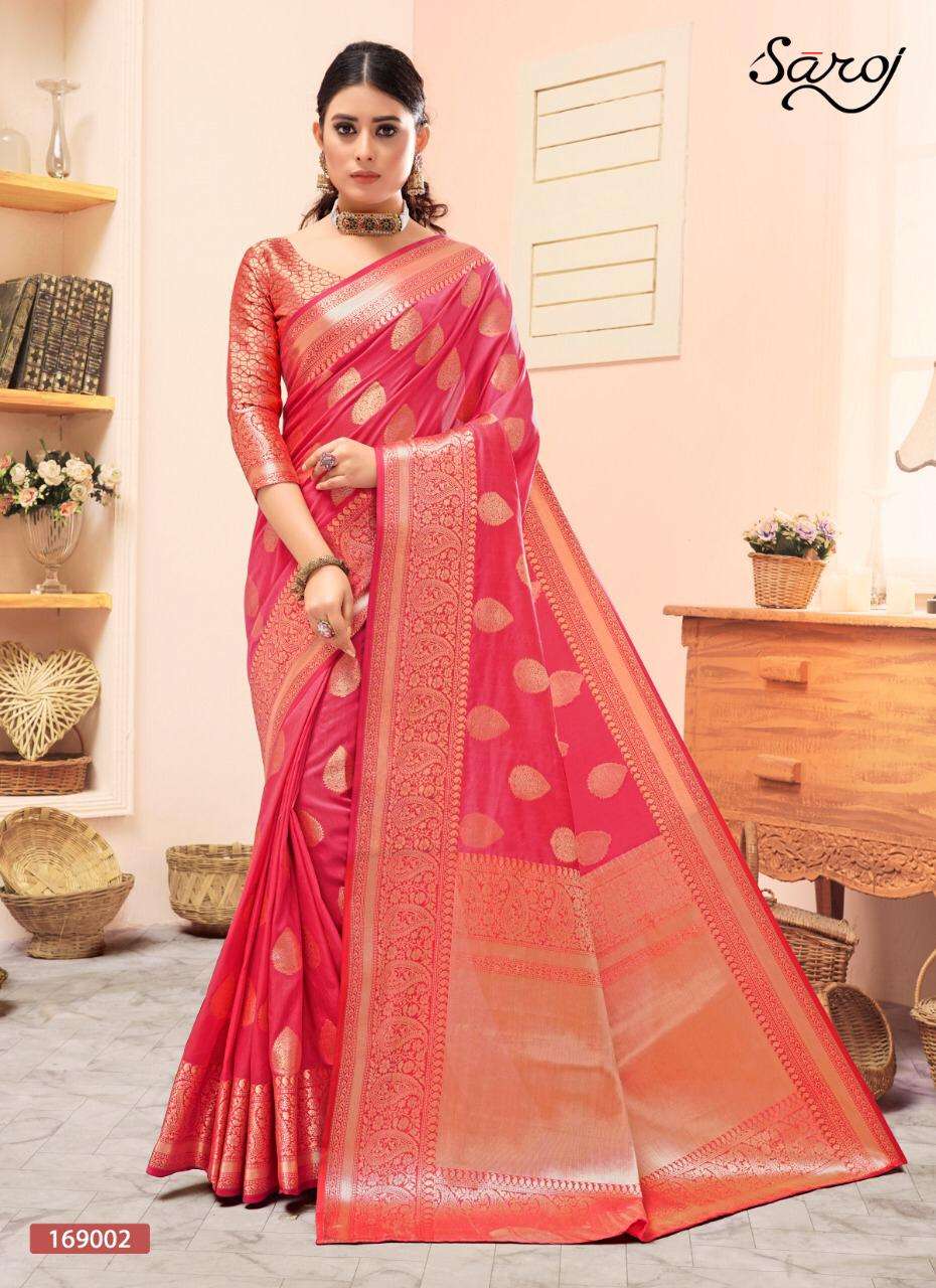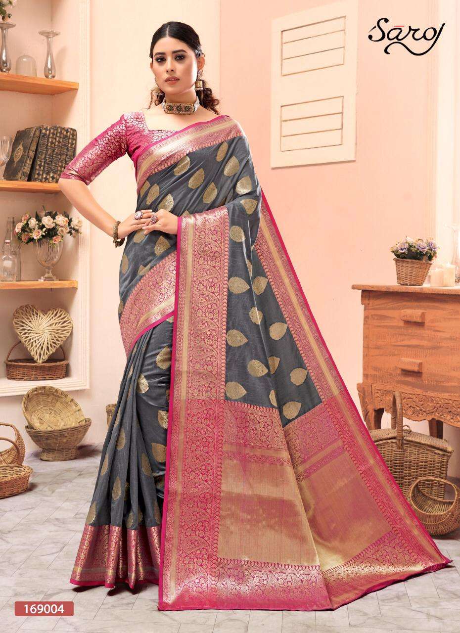 Brand - Saroj . Fabric: Dora Silk with Banarsi border and Pallu and Viscoss Butta. |