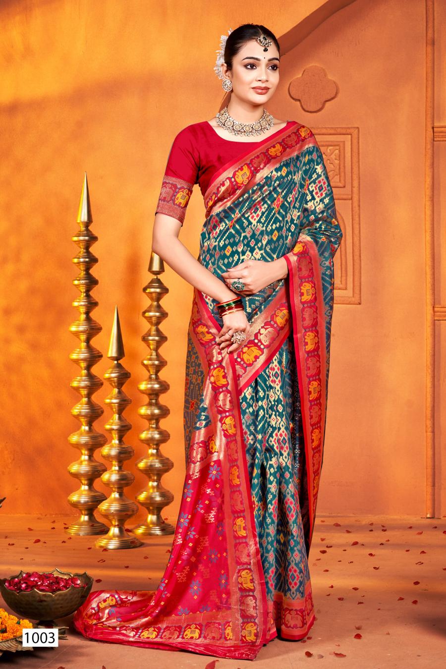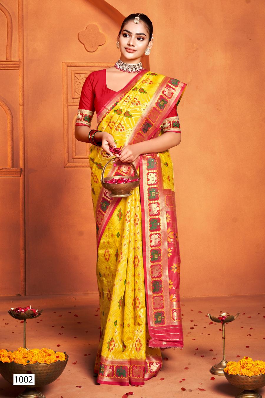 Saroj Kartikey silk vol.1 soft silk contrast rich pallu saree
