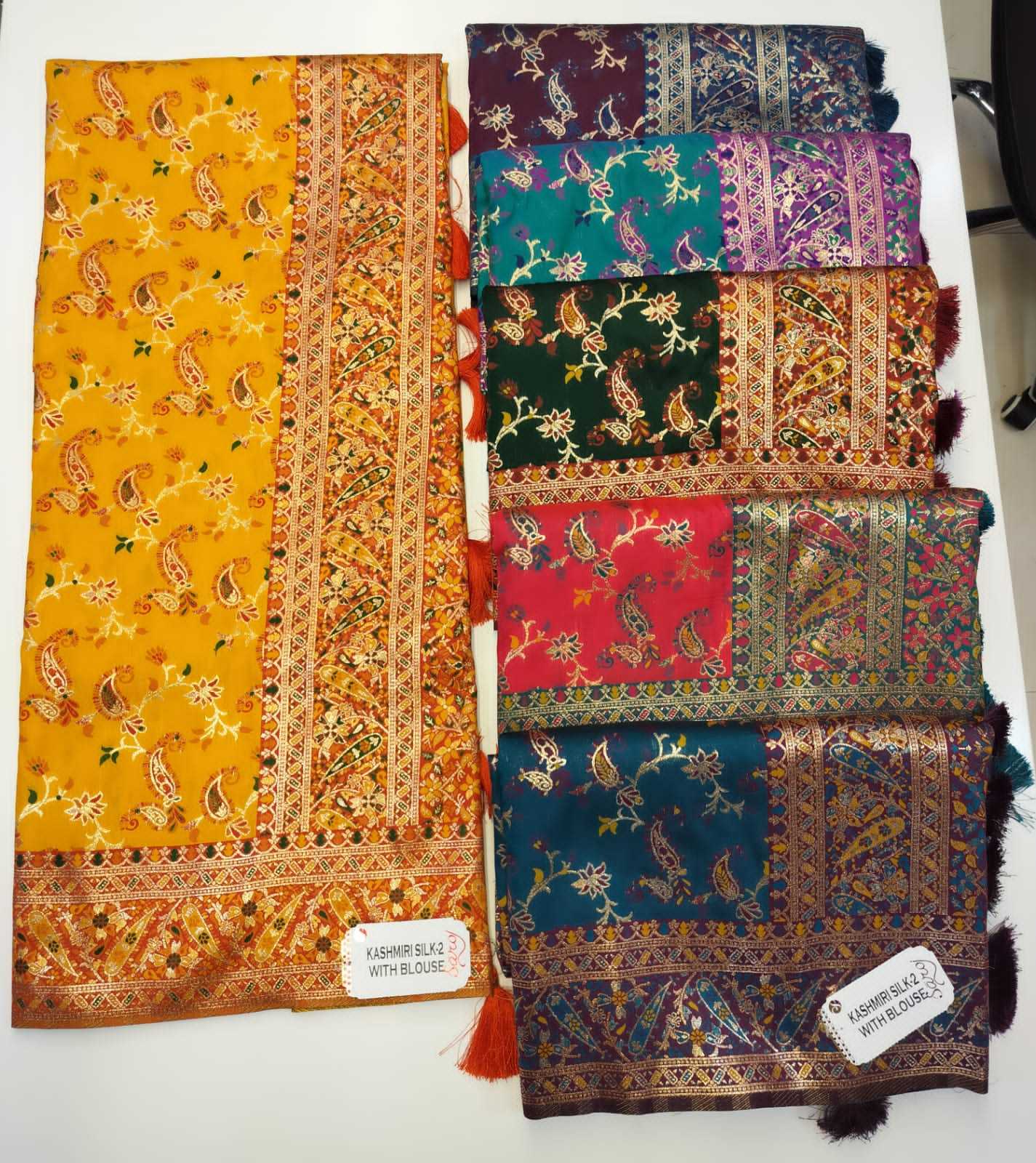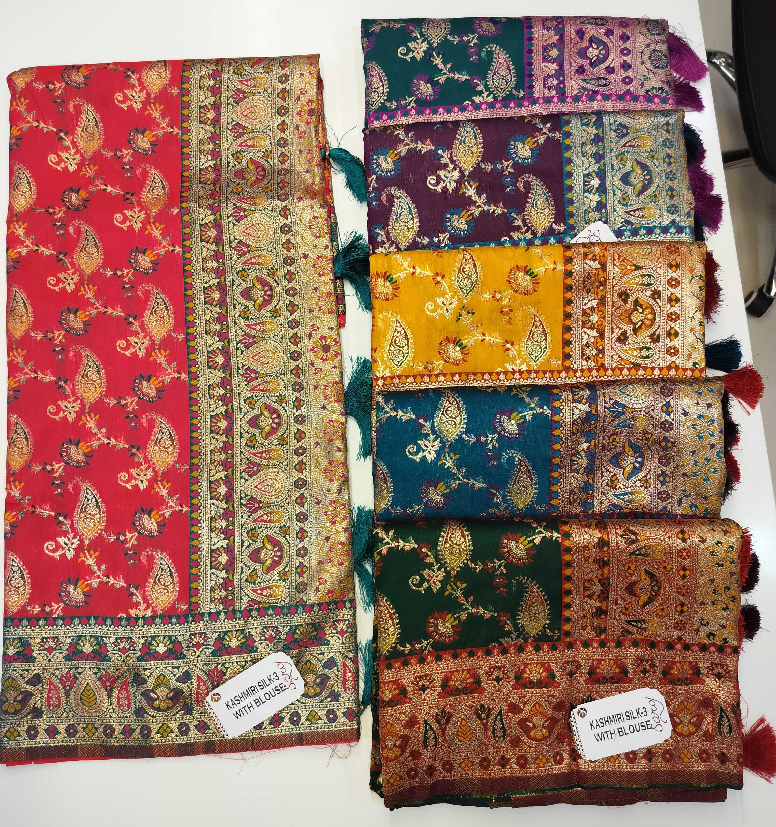Kashmiri Silk Pure 50*600 Kashmiri Silk Rich Pallu Saree With Heavy Latkans Rate-1060/- |