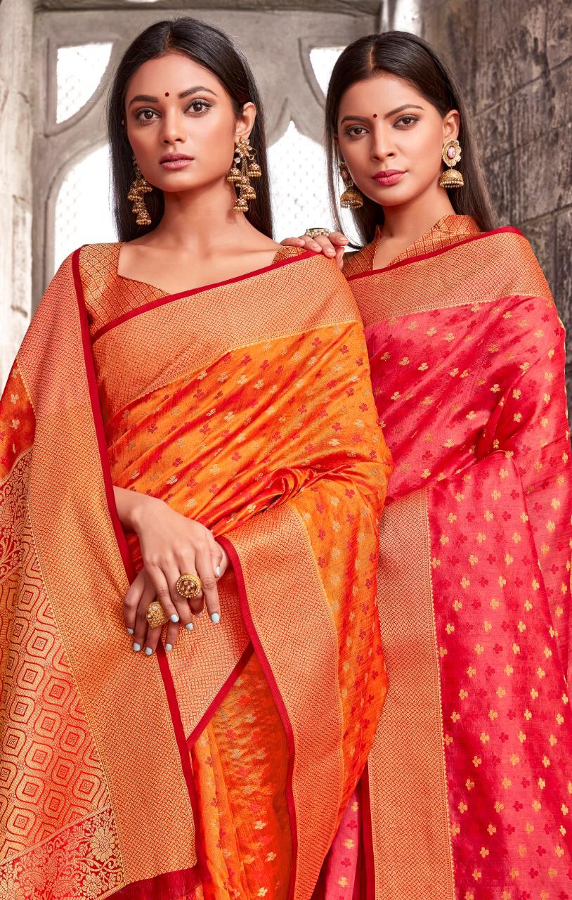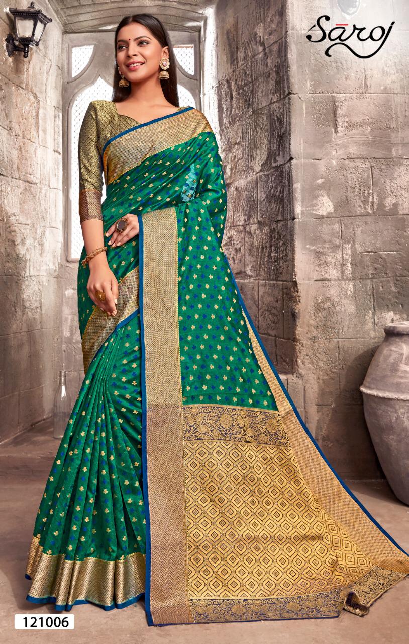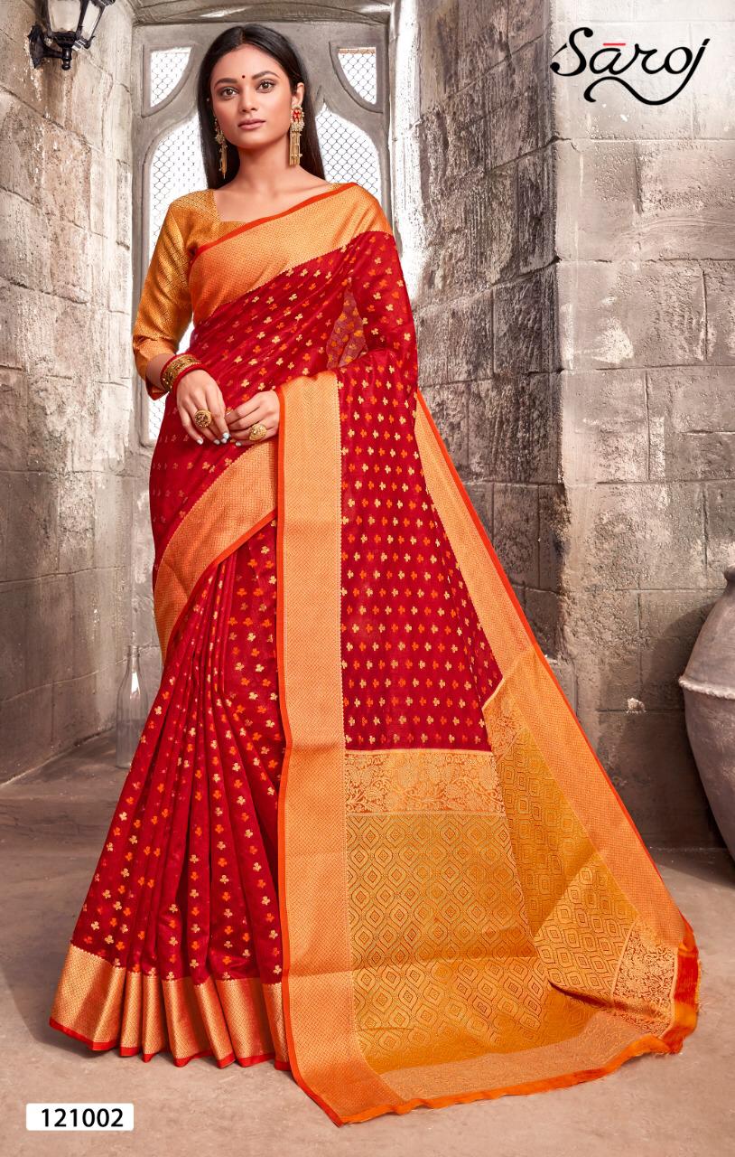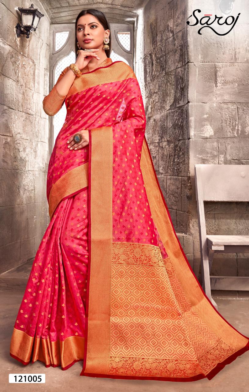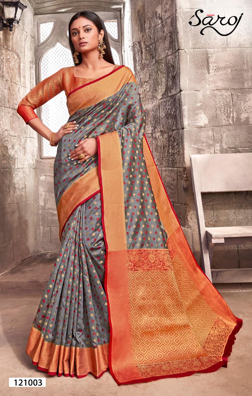 SAROJ Kesar Silk (Rs.1155) Fabric: Repair Jacquard (Banarsi Silk). Blouse: Repair Jaq. 6 Designs |