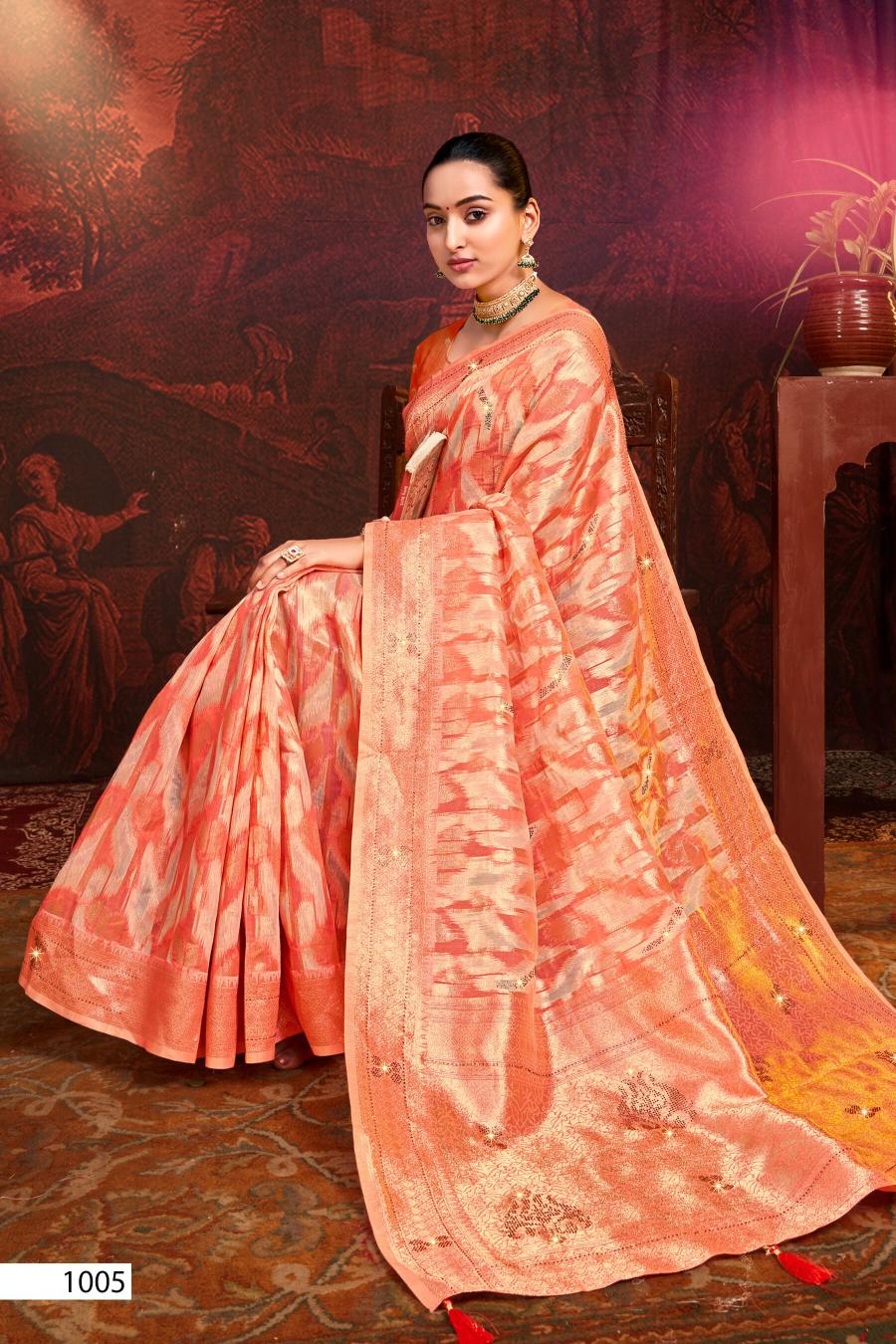 Kishori Saroski vol.3 Soft Linen and Heavy Jari Rich Pallu Saree With Heavy Saroski Work Rate-900/- |