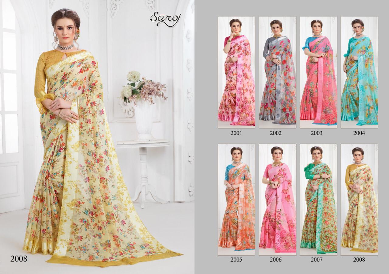 SAROJ Annaya (Rs.575) Fabric: Cotton Patta Print. Blouse: Cotton Patta Print. 8 Designs |