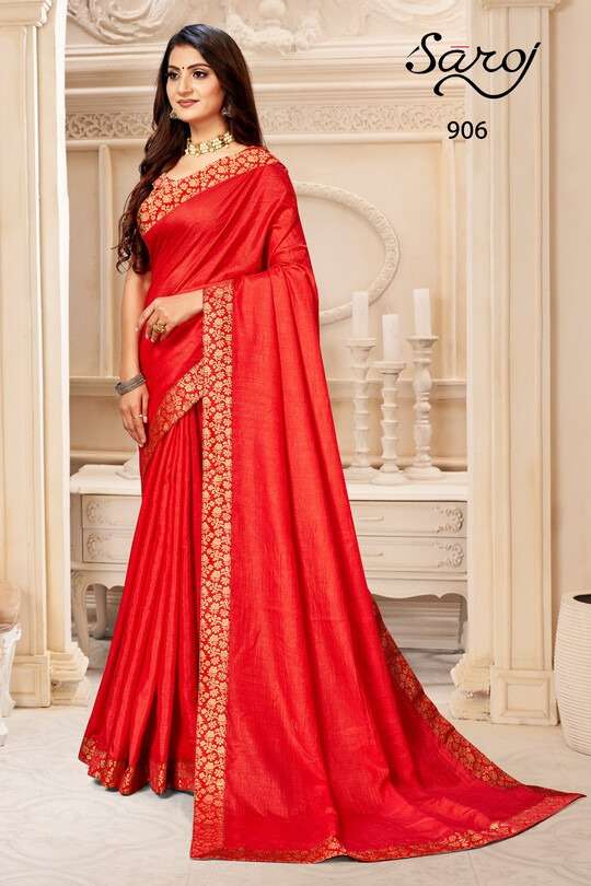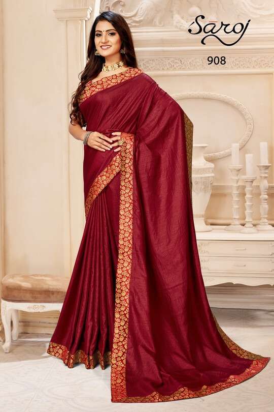 Brand - Saroj . Fabric: Vichitra Silk with Lace. |