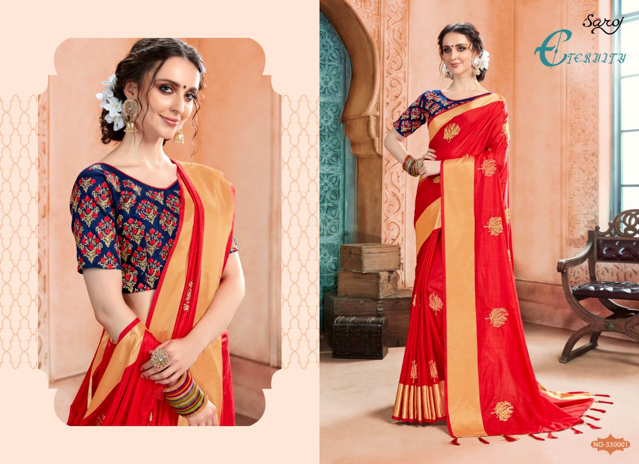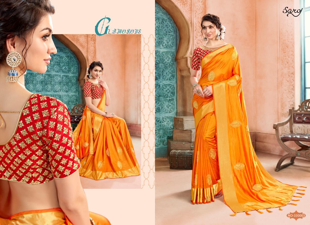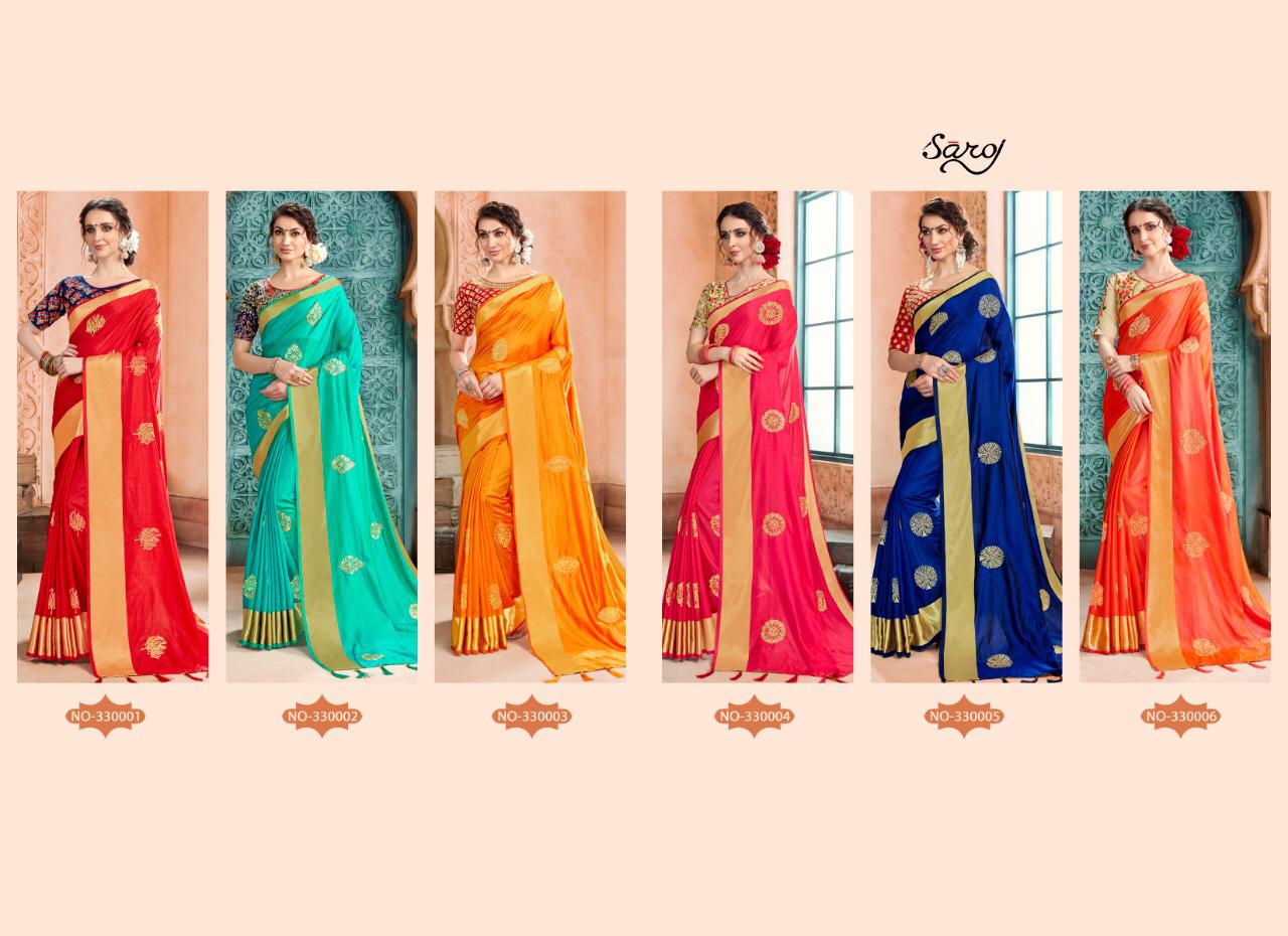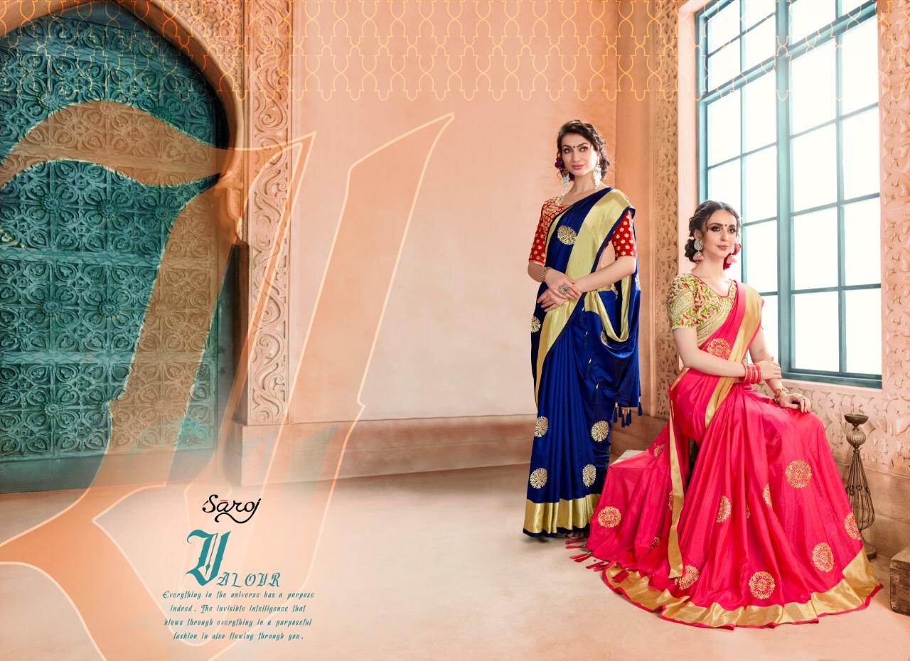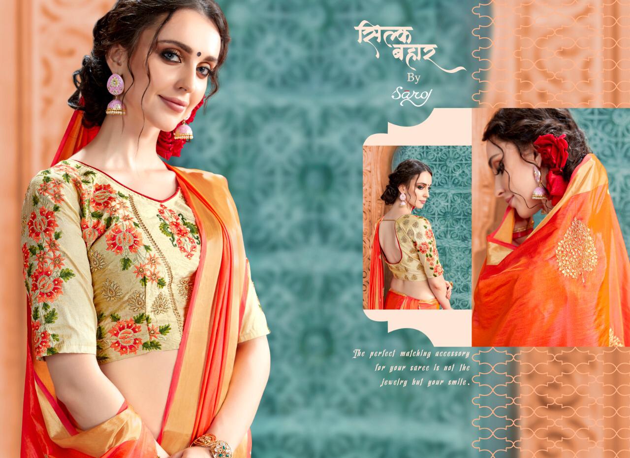 Saroj Sarees Presents... Silk Bahar (Rs.1095) Fabric: Heavy two ton Silk with beautiful Banarsi Border and jari emb work. Blouse: Baglori silk with heavy emb. work. 6 Designs |