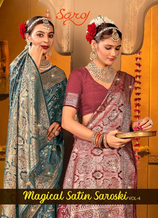 Saroj Magical satin swarovski vol.4 Satin silk saree