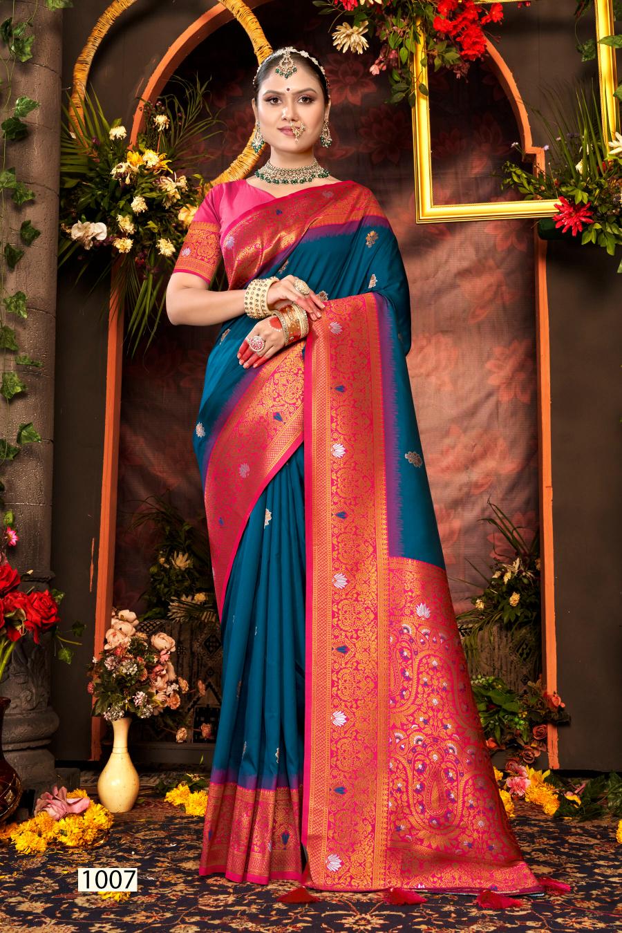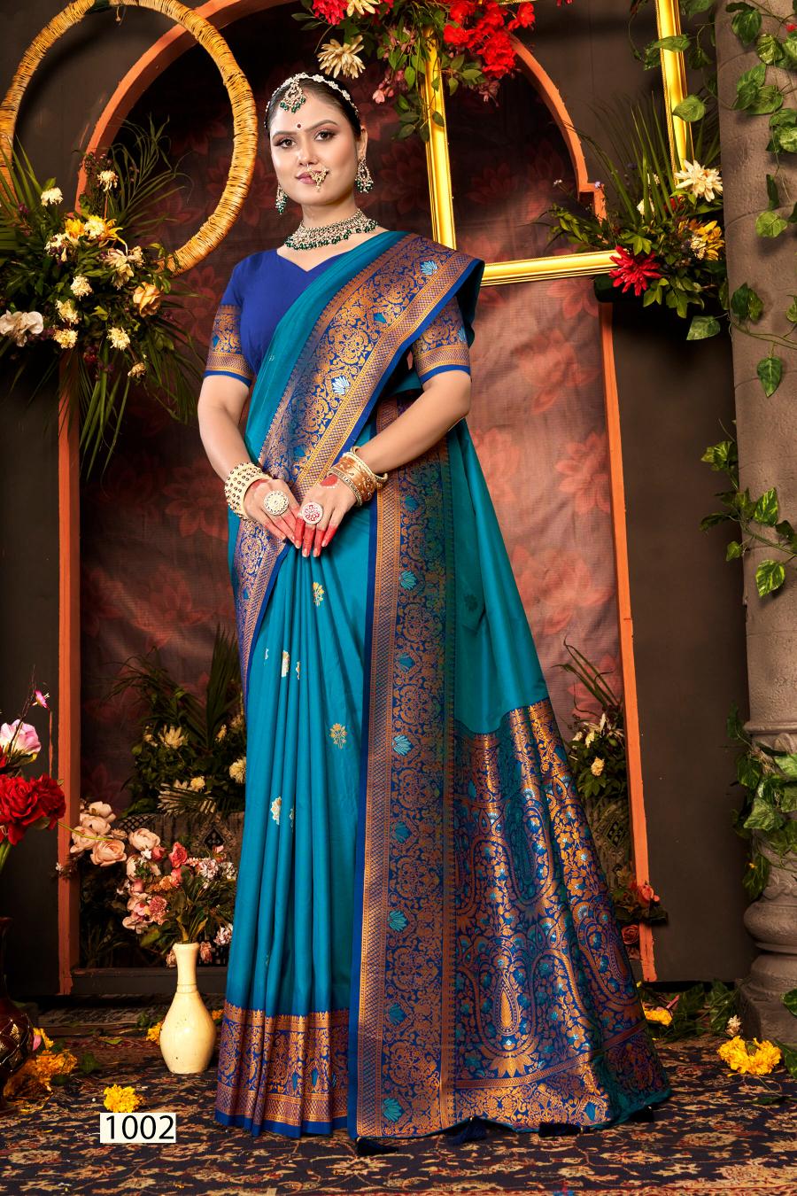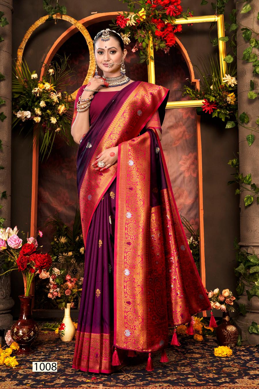 Masoom Silk vol.3 Pure 50*600 Silk With Heavy Copper & Silver Double Jari Rich Pallu Saree Rate-₹1000/- |