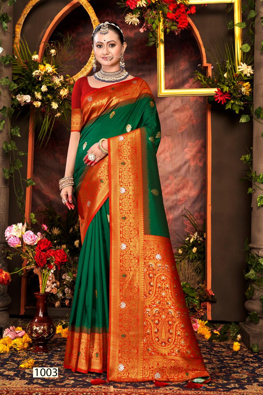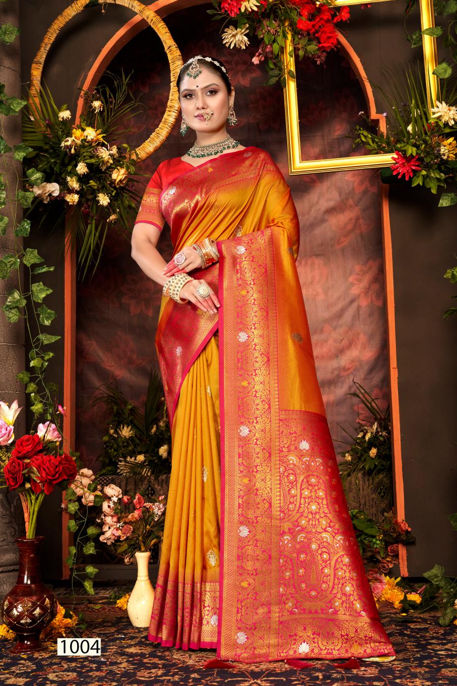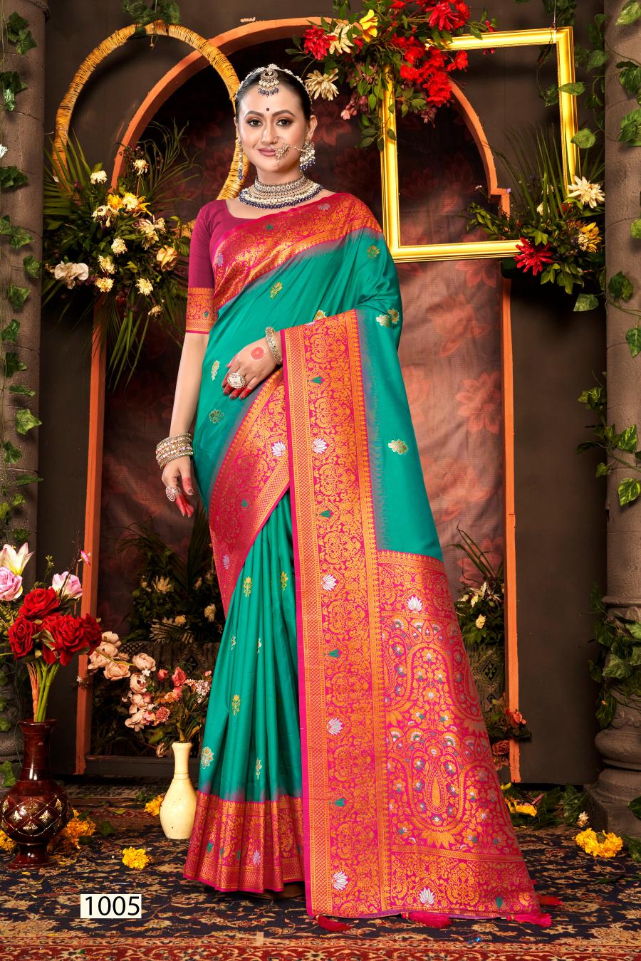 Masoom Silk vol.3 Pure 50*600 Silk With Heavy Copper & Silver Double Jari Rich Pallu Saree Rate-₹1000/- |