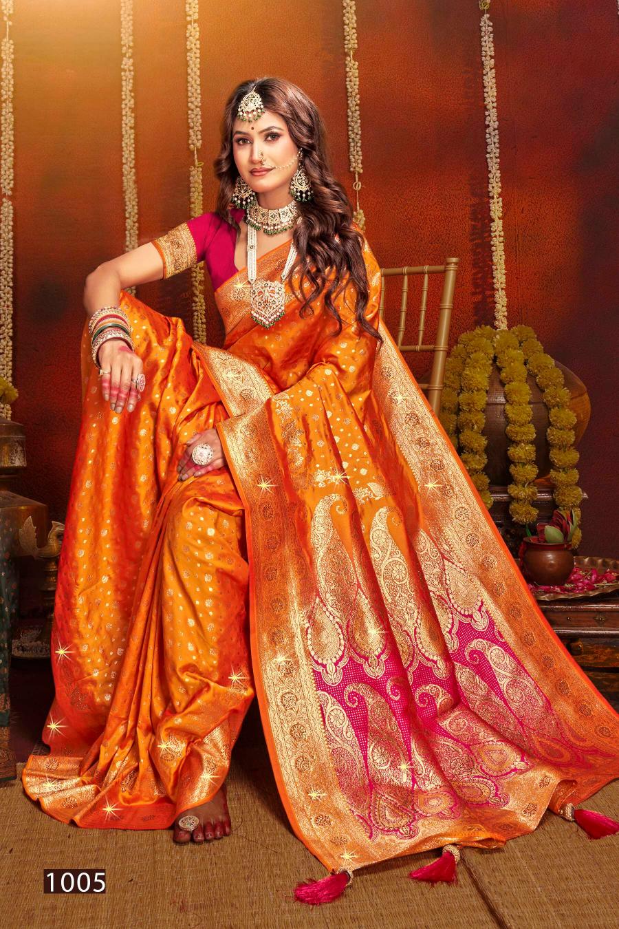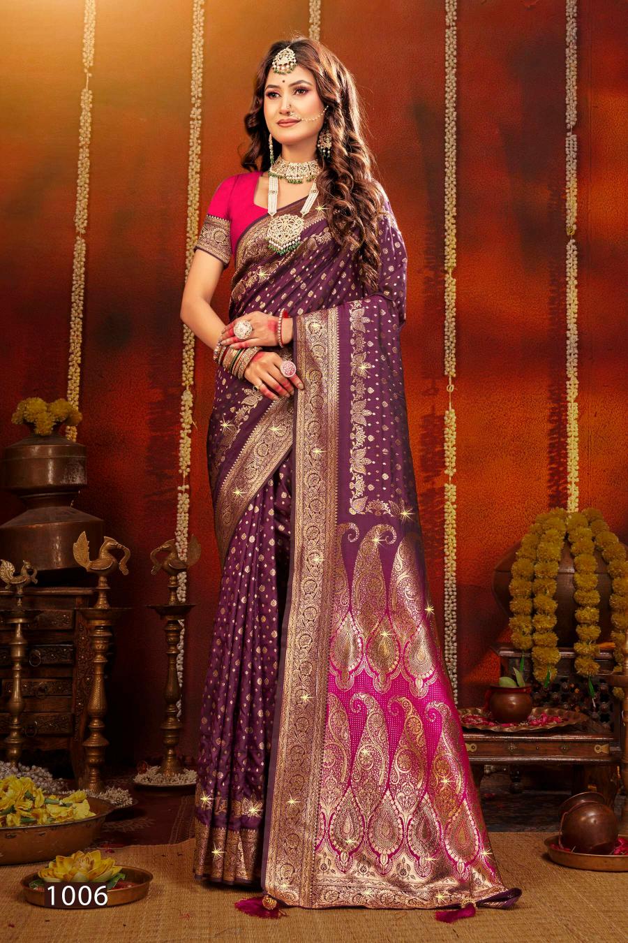 Megh Mayur Swaroski Vol.3 Soft Silk Contrast Rich Pallu With Heavy Swaroski Work Rate-₹1205/- |