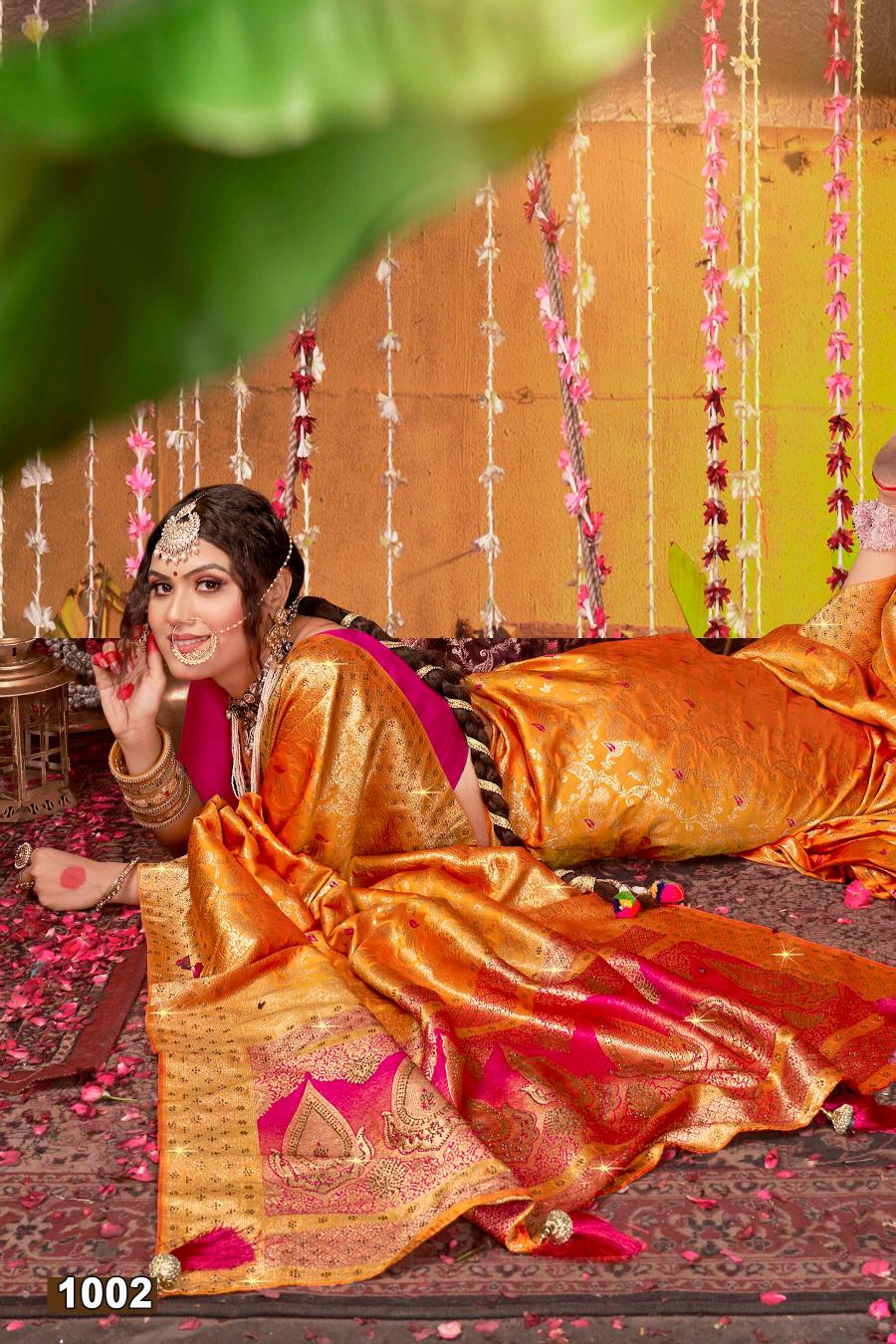 Megh Mayur Swaroski Vol.4 Soft Silk Contrast Rich Pallu With Heavy Swaroski Work Rate-₹1205/- |