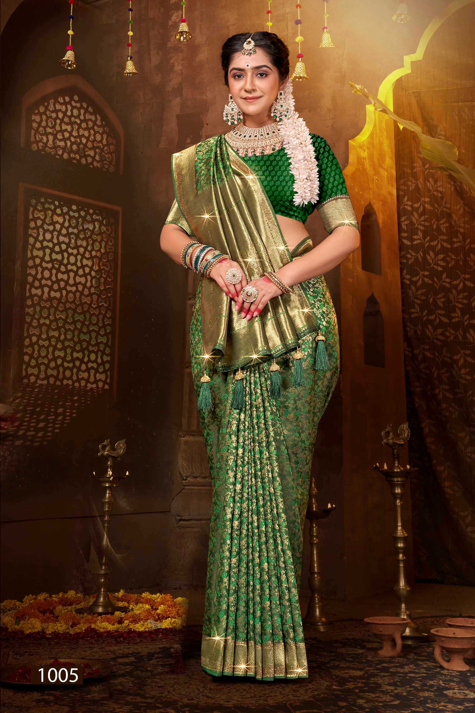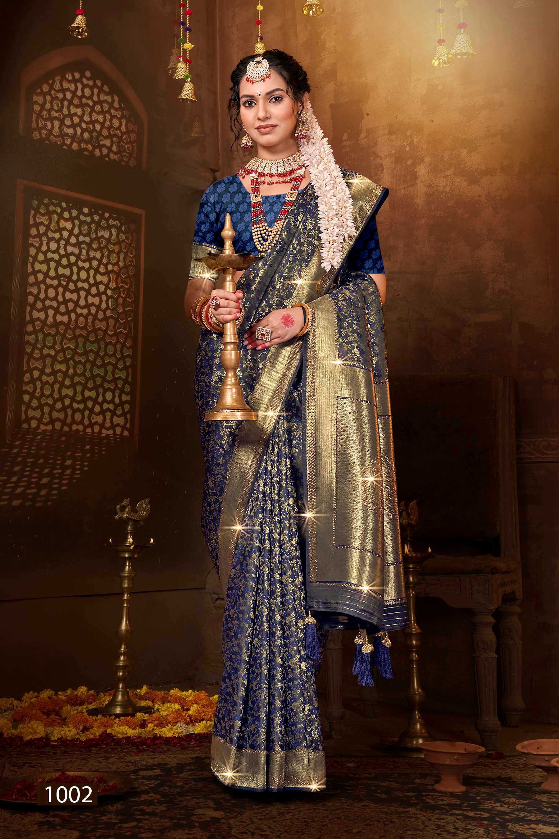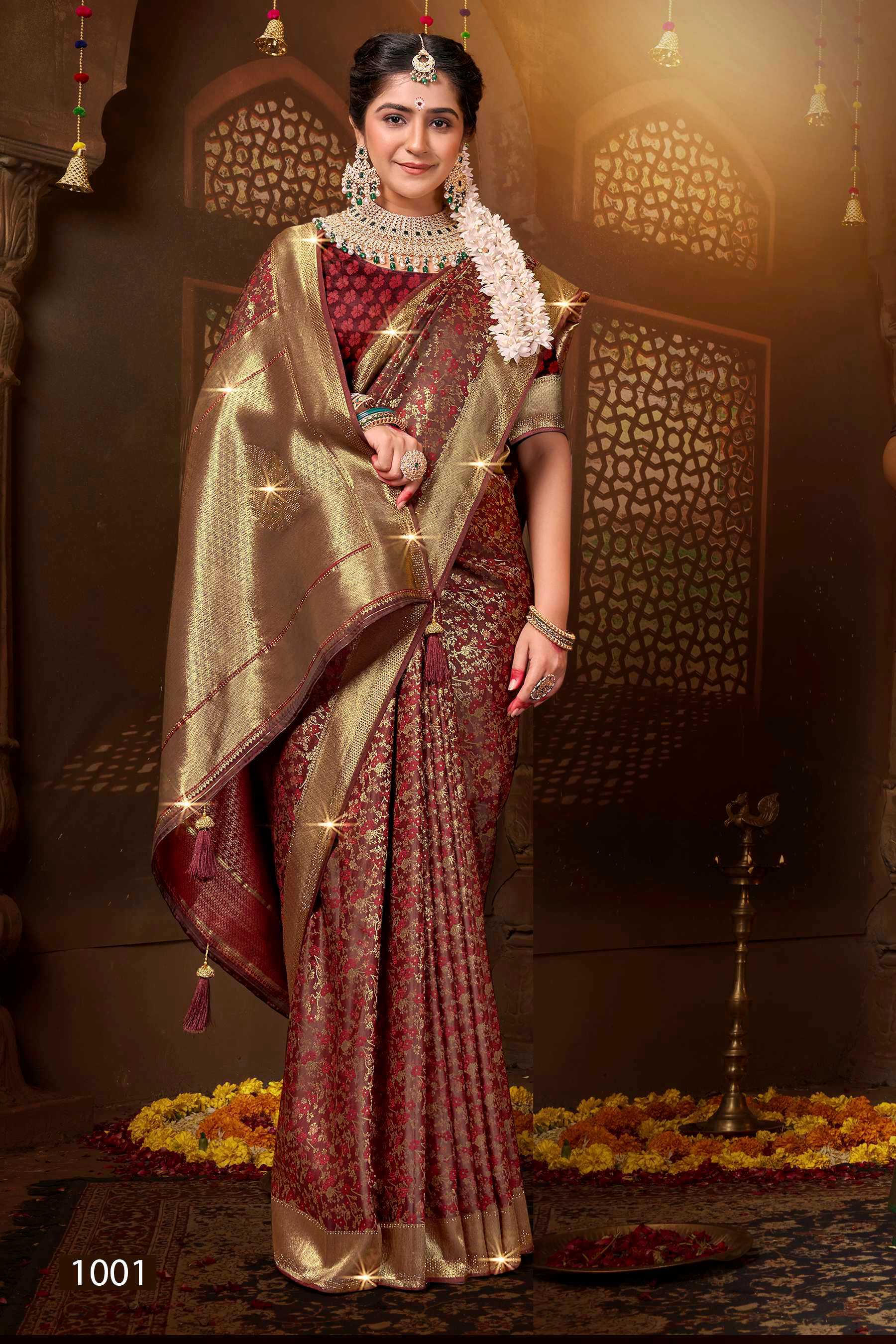 Saroj Saree Meher Swarovski Satin silk rich pallu with swaroski design Rate- ₹1410/- |