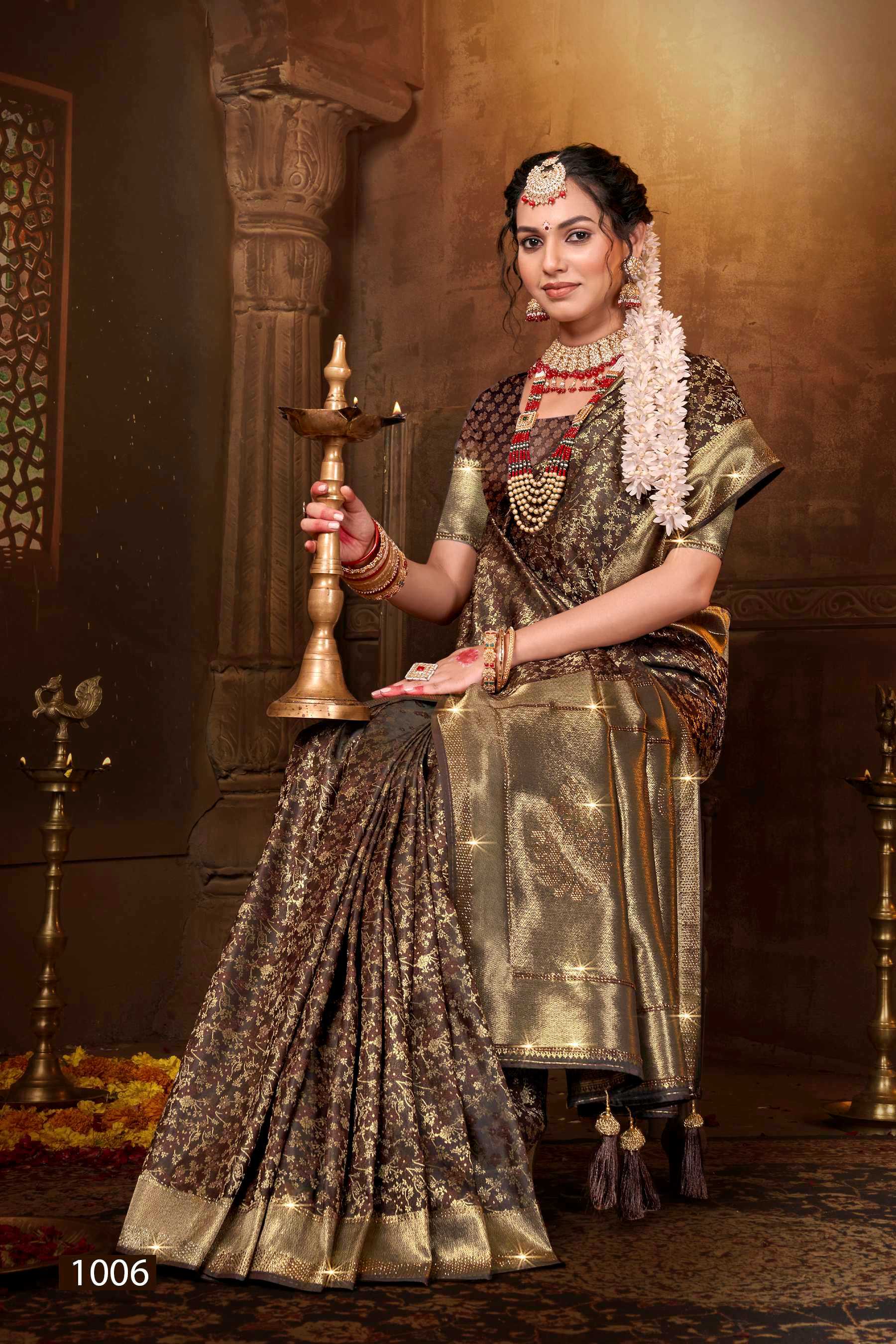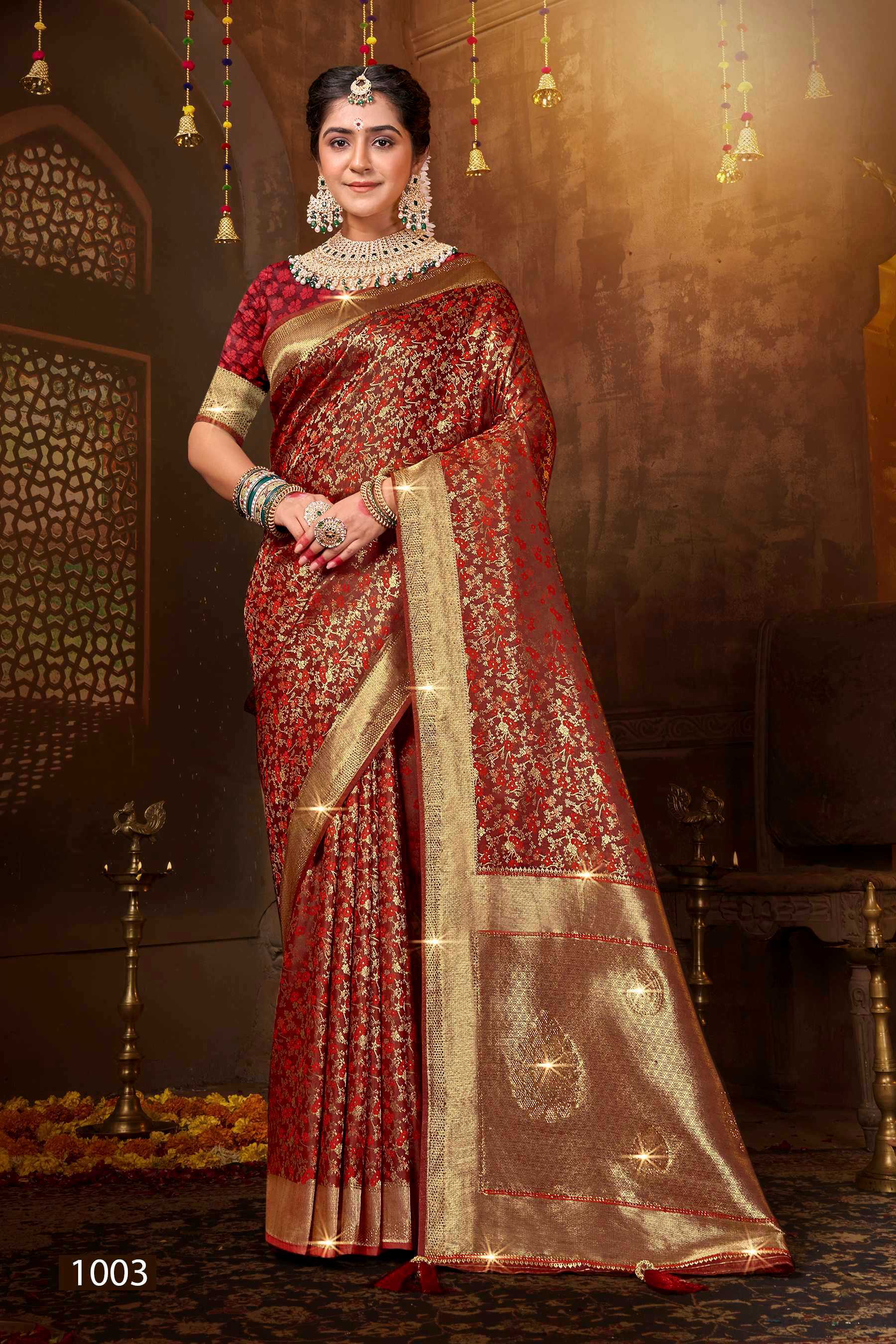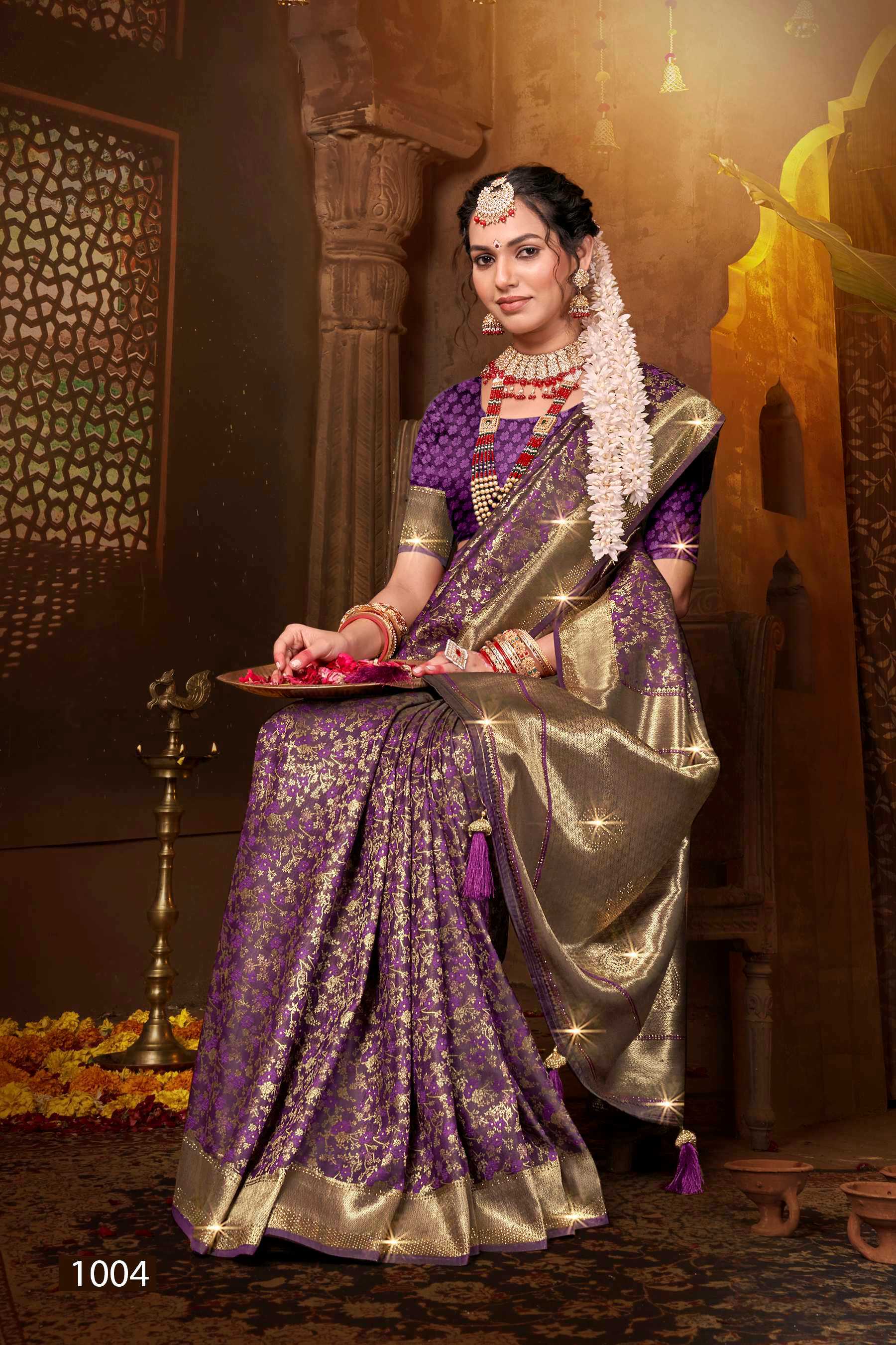 Saroj Saree Meher Swarovski Satin silk rich pallu with swaroski design Rate- ₹1410/- |