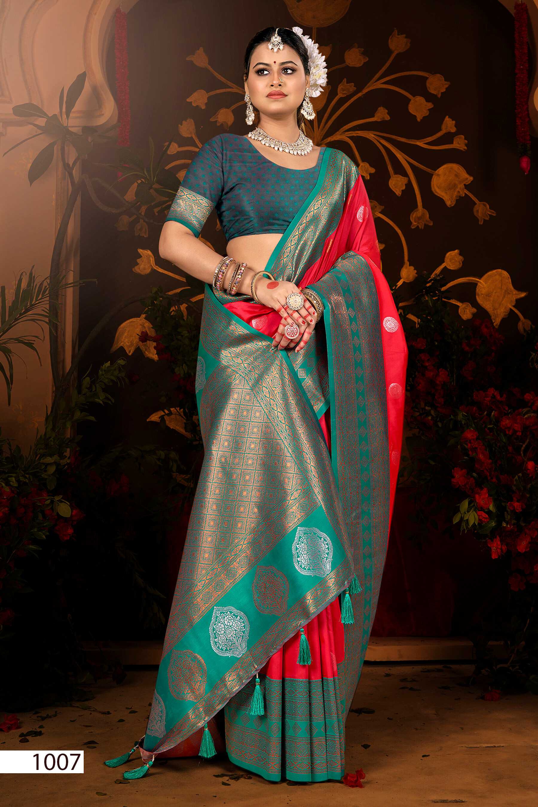 Meraki Silk vol.6 50X600 Heavy Silk Copper & Silver Jari Concept Saree Rate-₹1310/- |