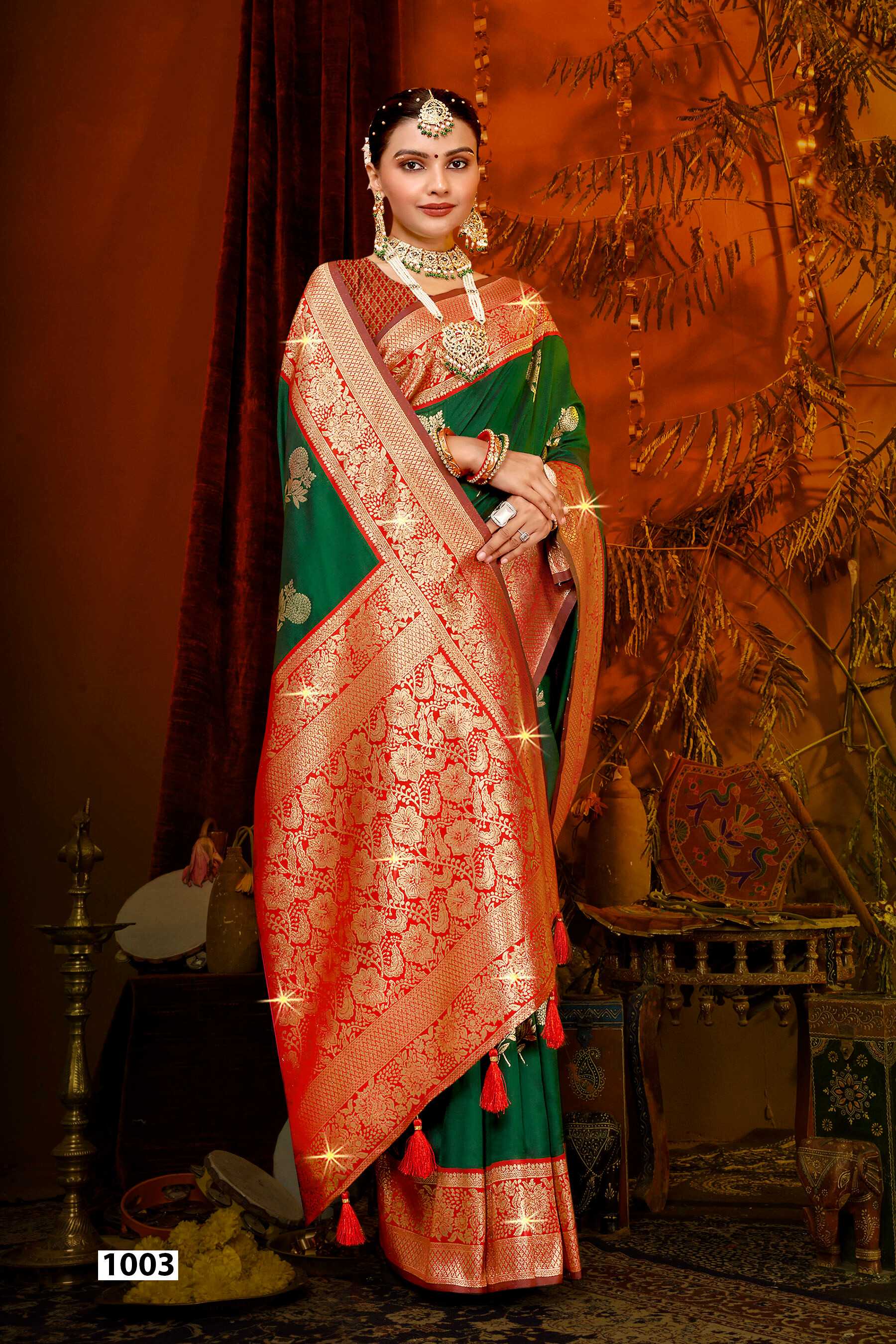 Mubarak Silk Saroski vol.2 Pure 50*600 Silk With Heavy Banarasi Jari Rich Pallu Saree & Heavy Saroski Work Rate-₹1285/- |