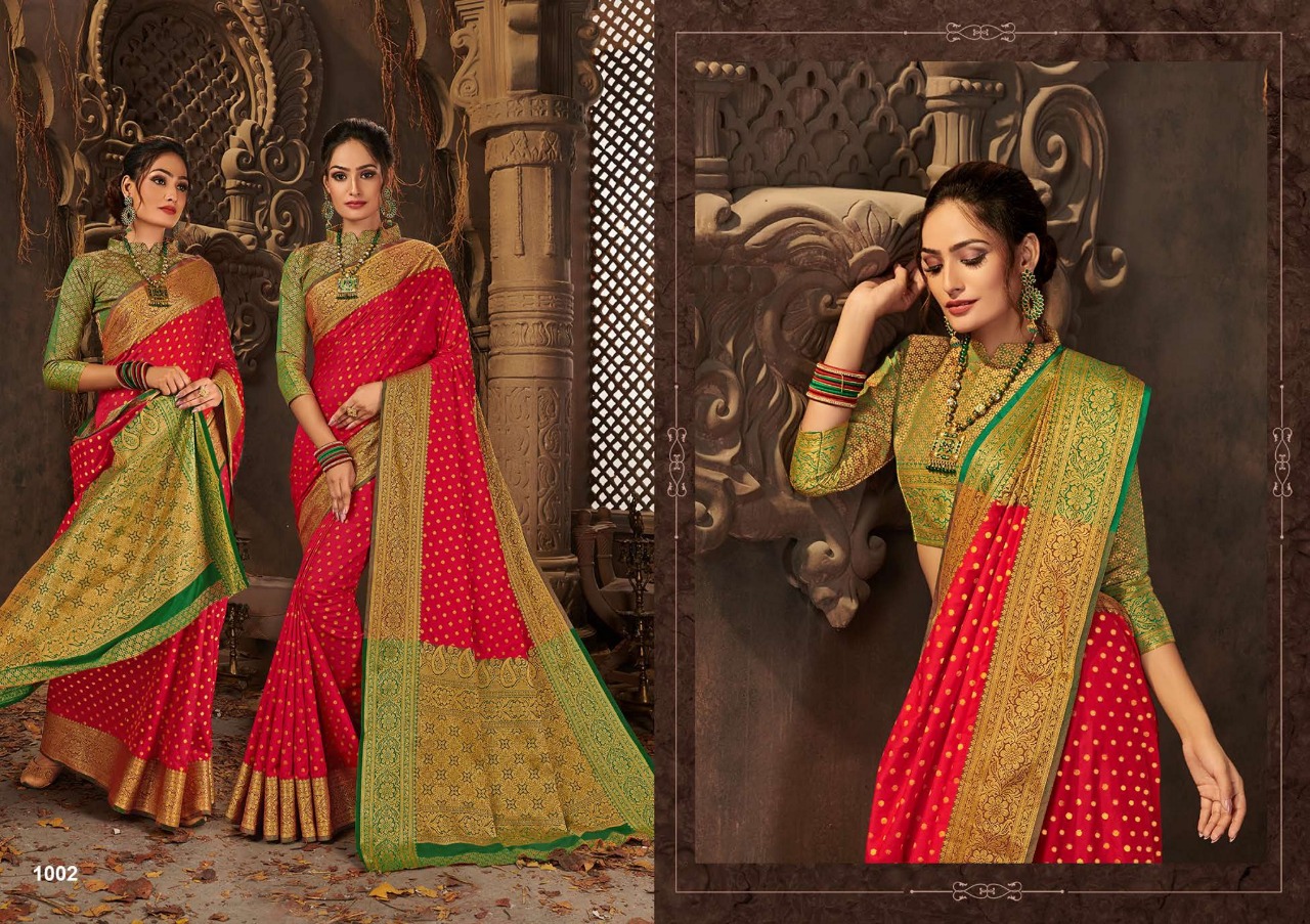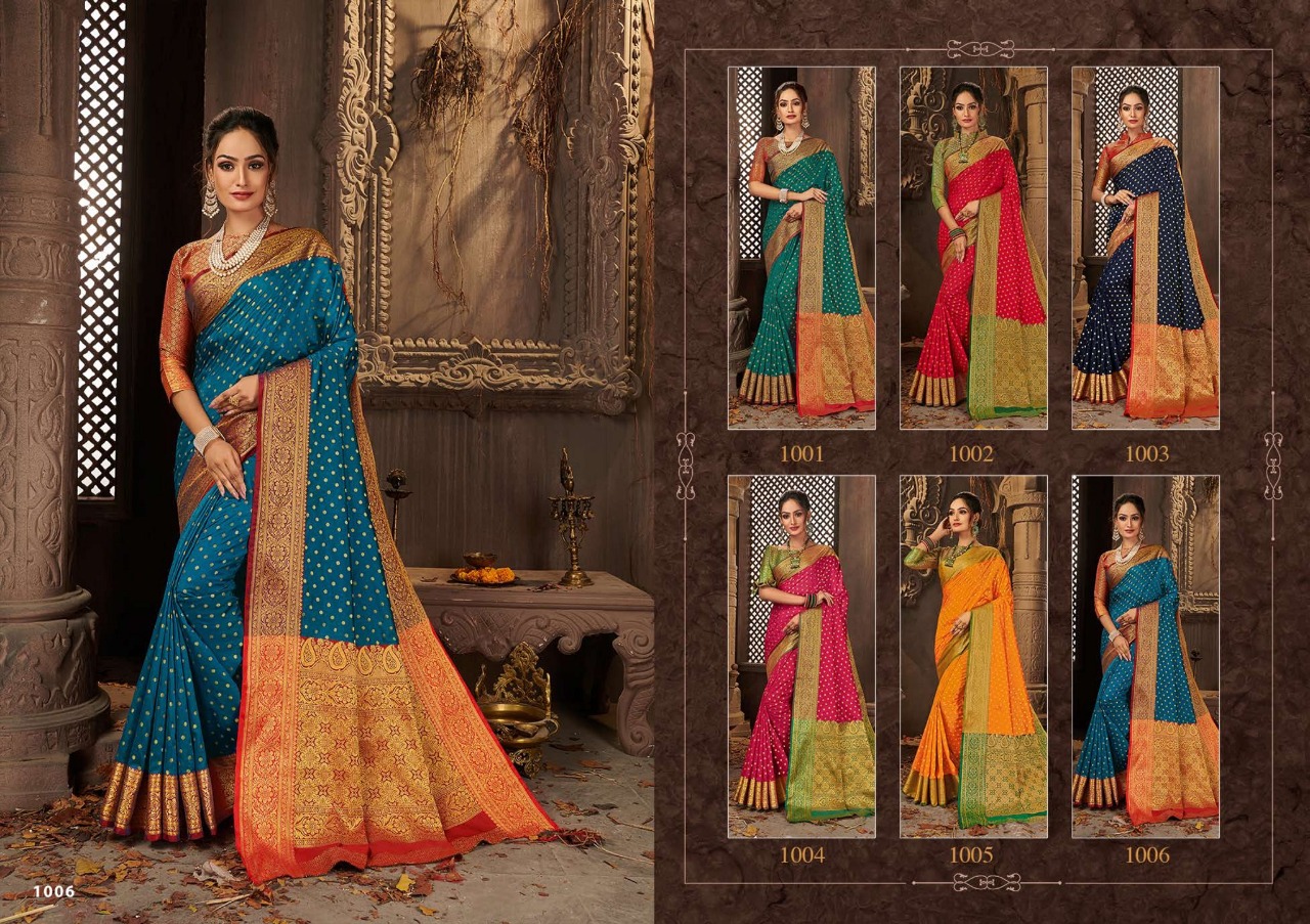 Rate- 1070 per pcs . Set to set Fabric: Rapier jacquard silk - Banarsi Silk. Blouse: Banarsi Silk. 6 Designs in set . Set to set . |