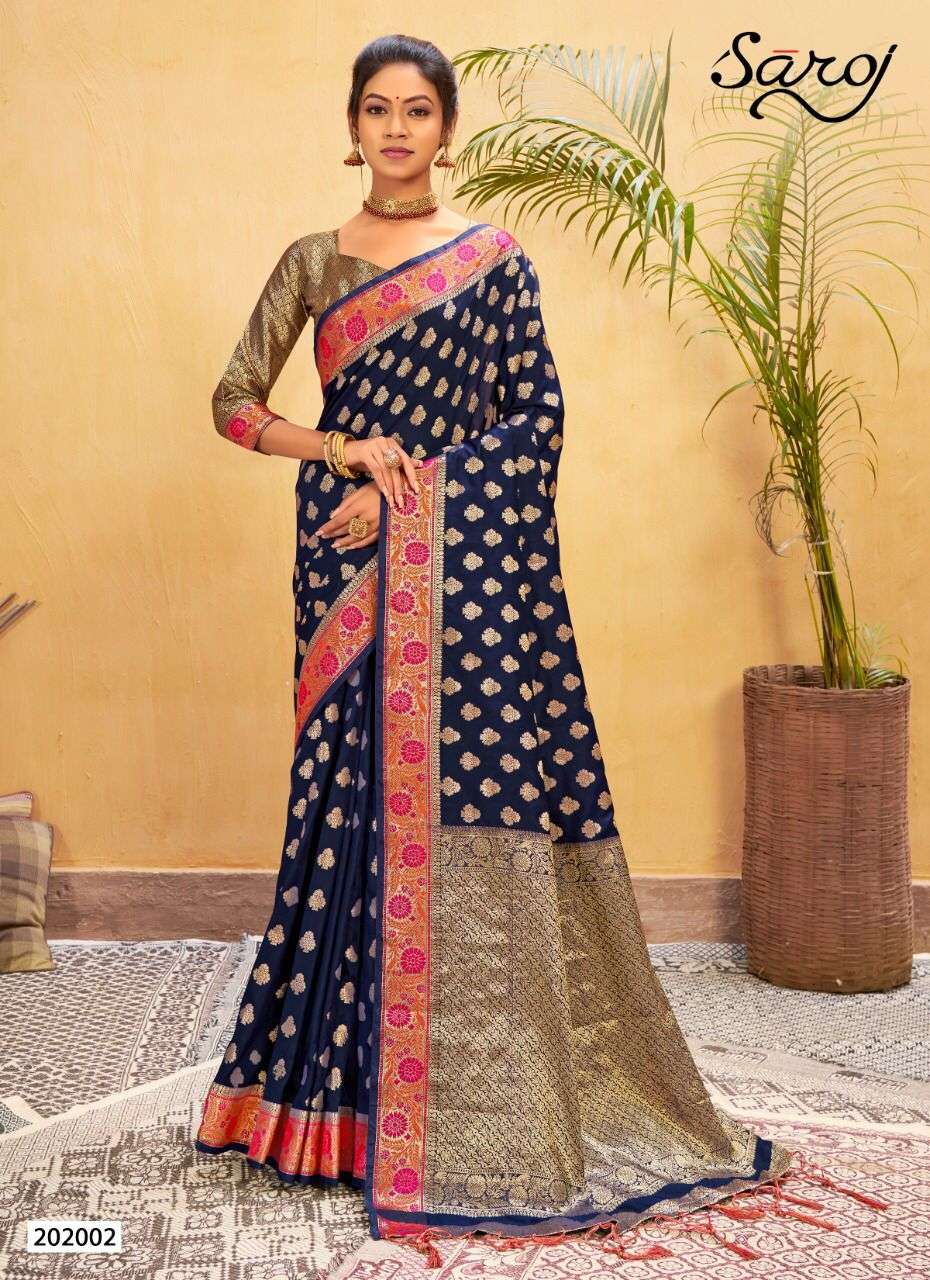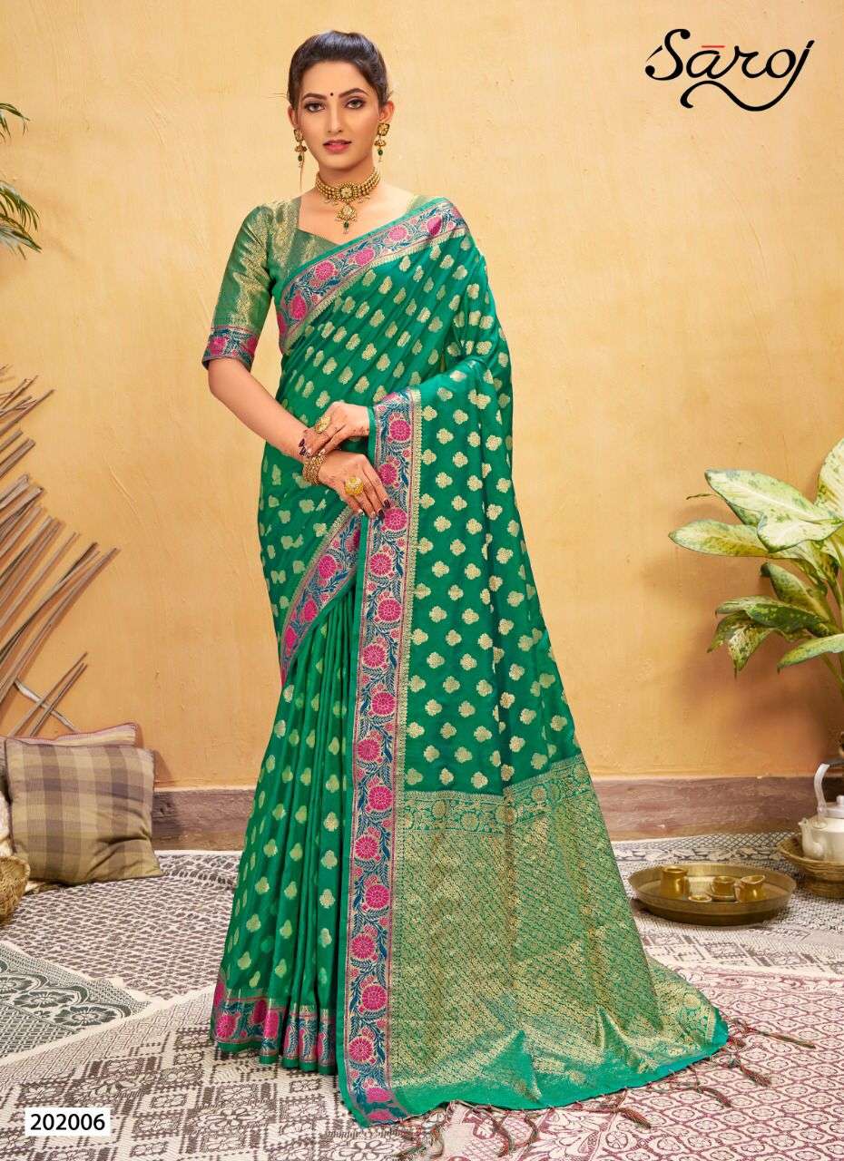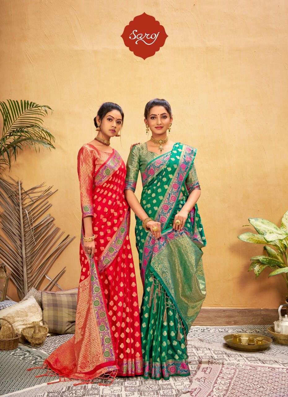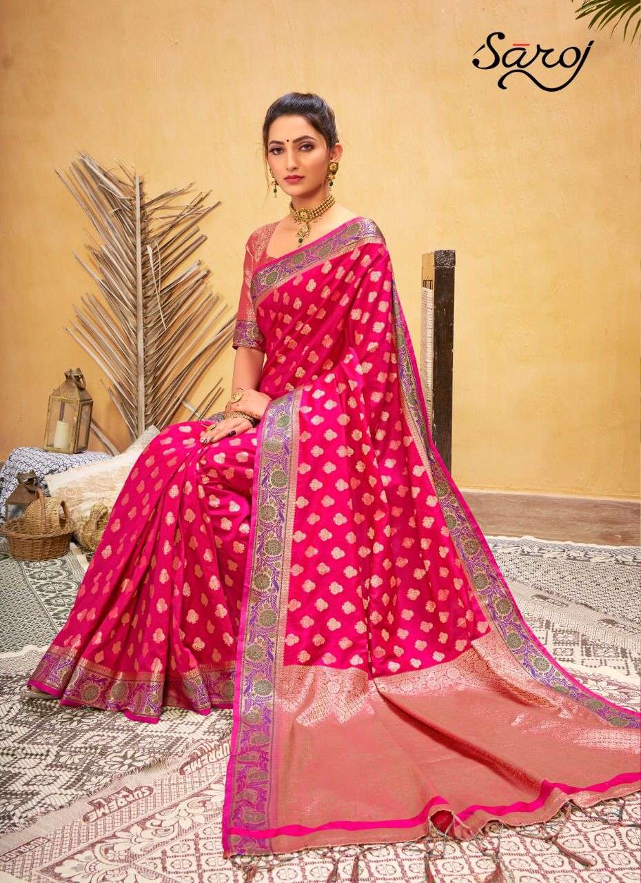 Brand - saroj . Fabric: Soft and Silky Lichi Silk with Viscose butti, and Heavy Pallu. |