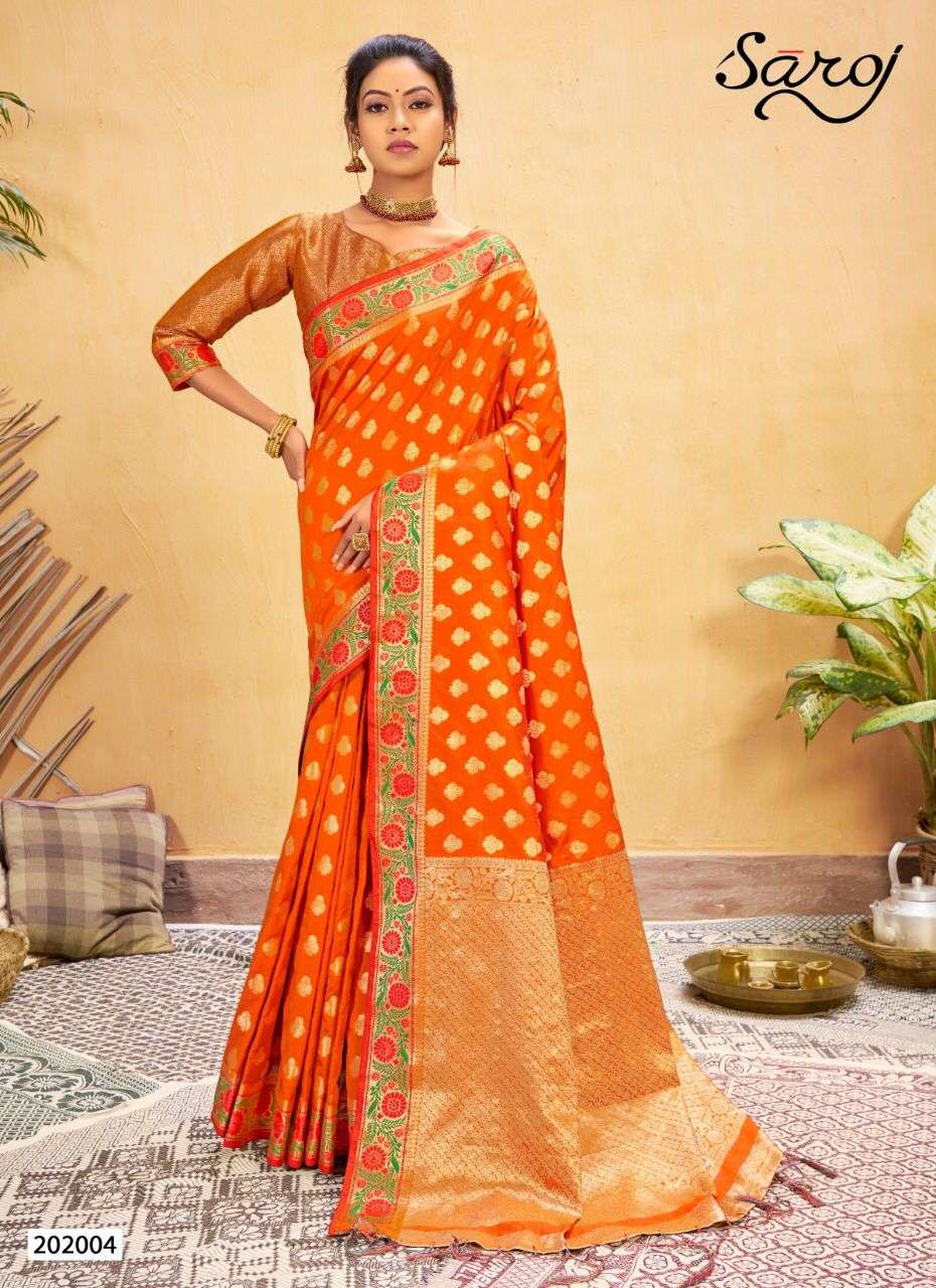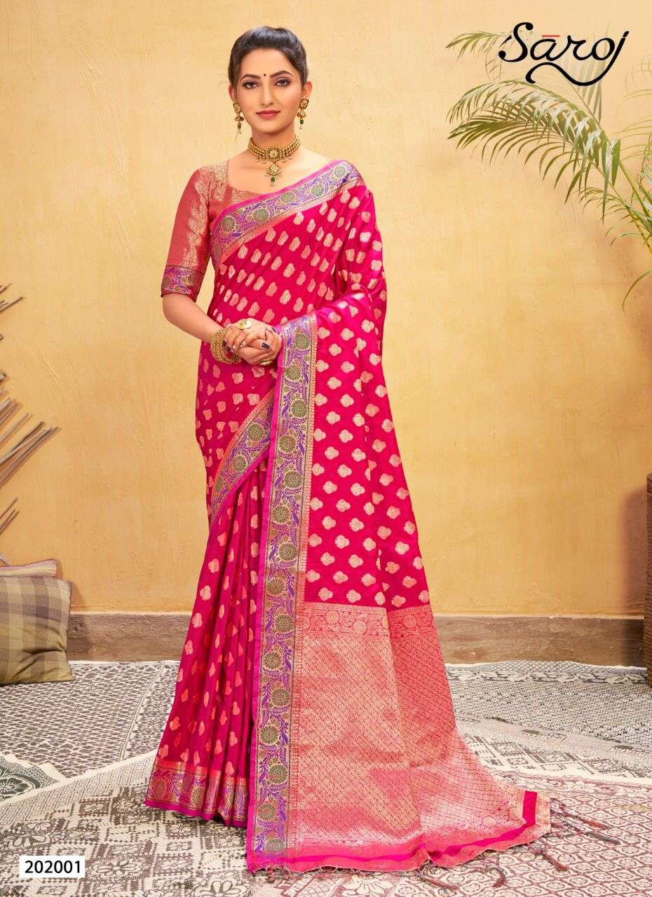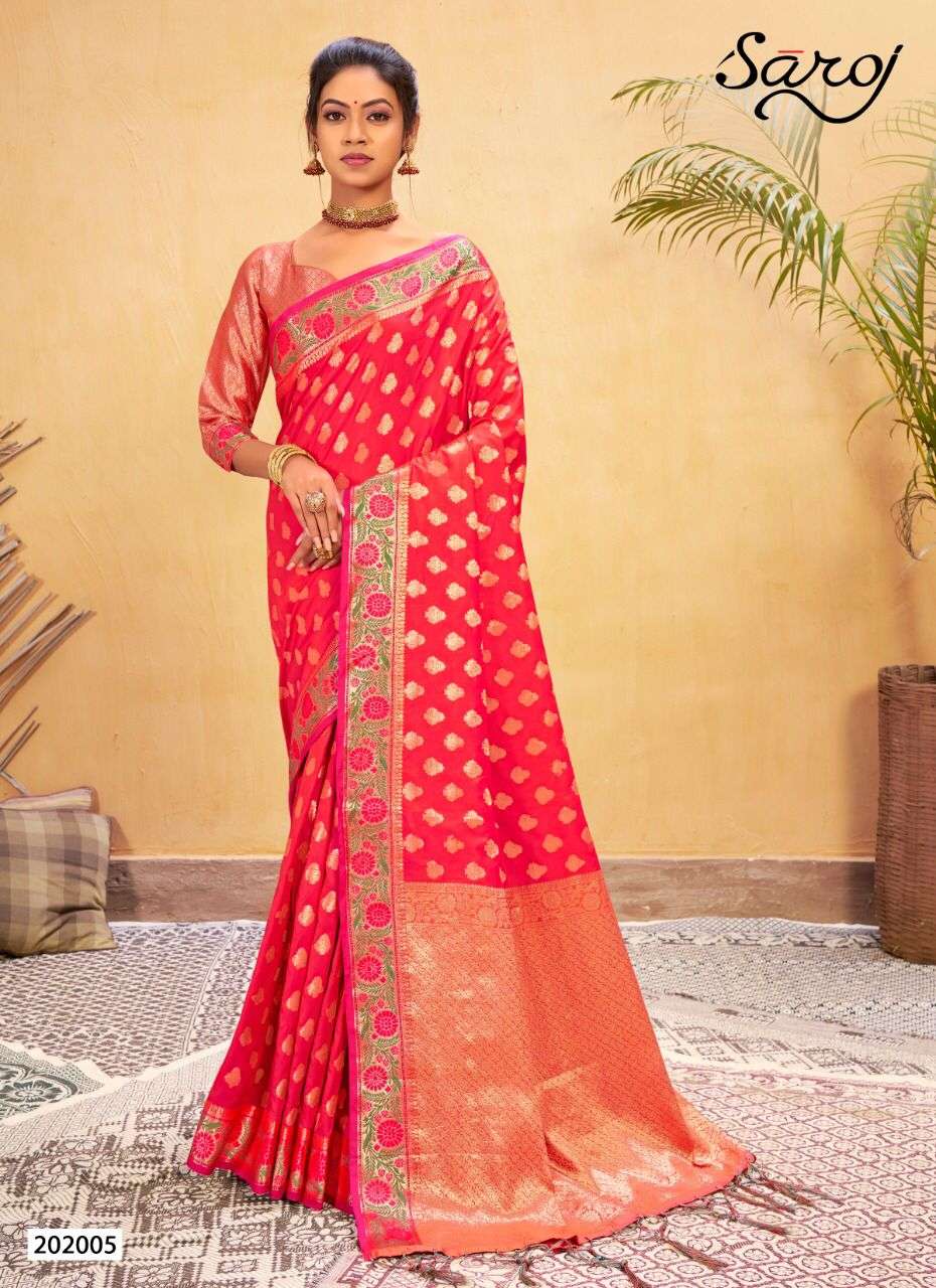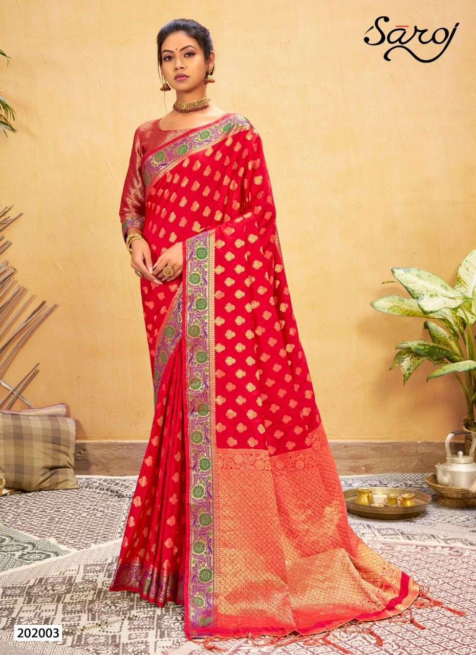 Brand - saroj . Fabric: Soft and Silky Lichi Silk with Viscose butti, and Heavy Pallu. |