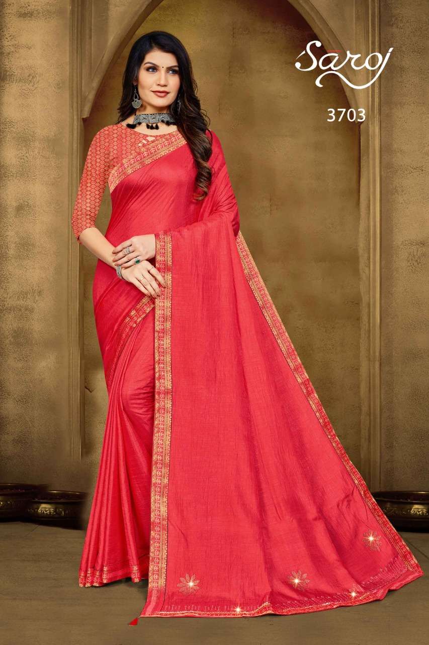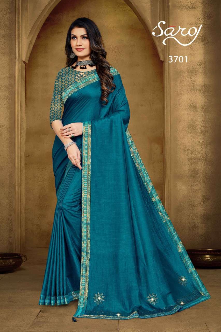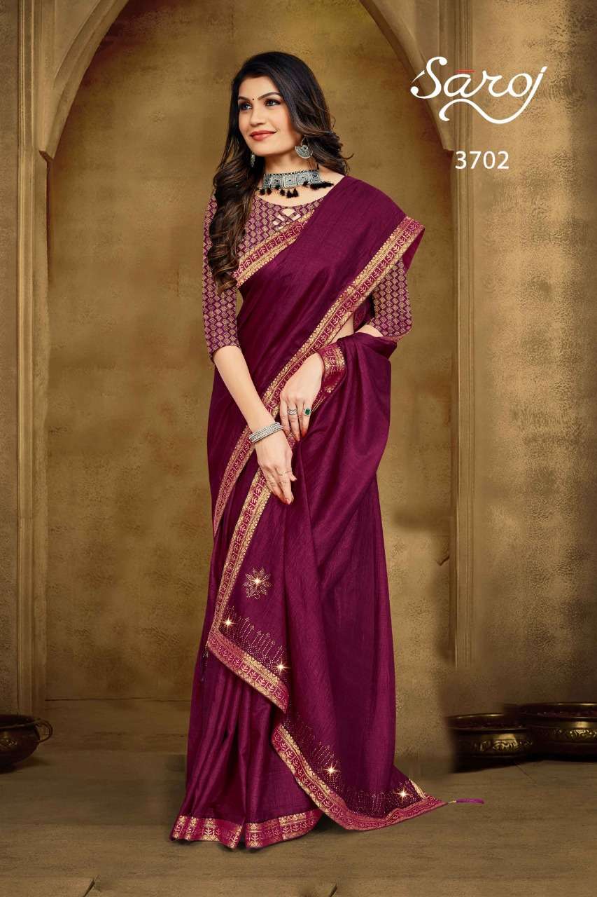Brand - Saroj . Fabric: Soft Vichitra Silk with Swaroski and Lace. |