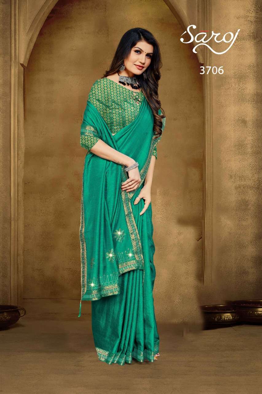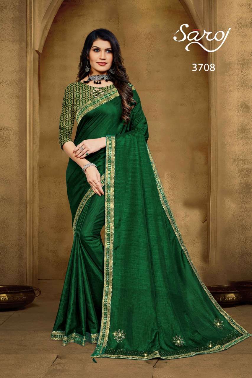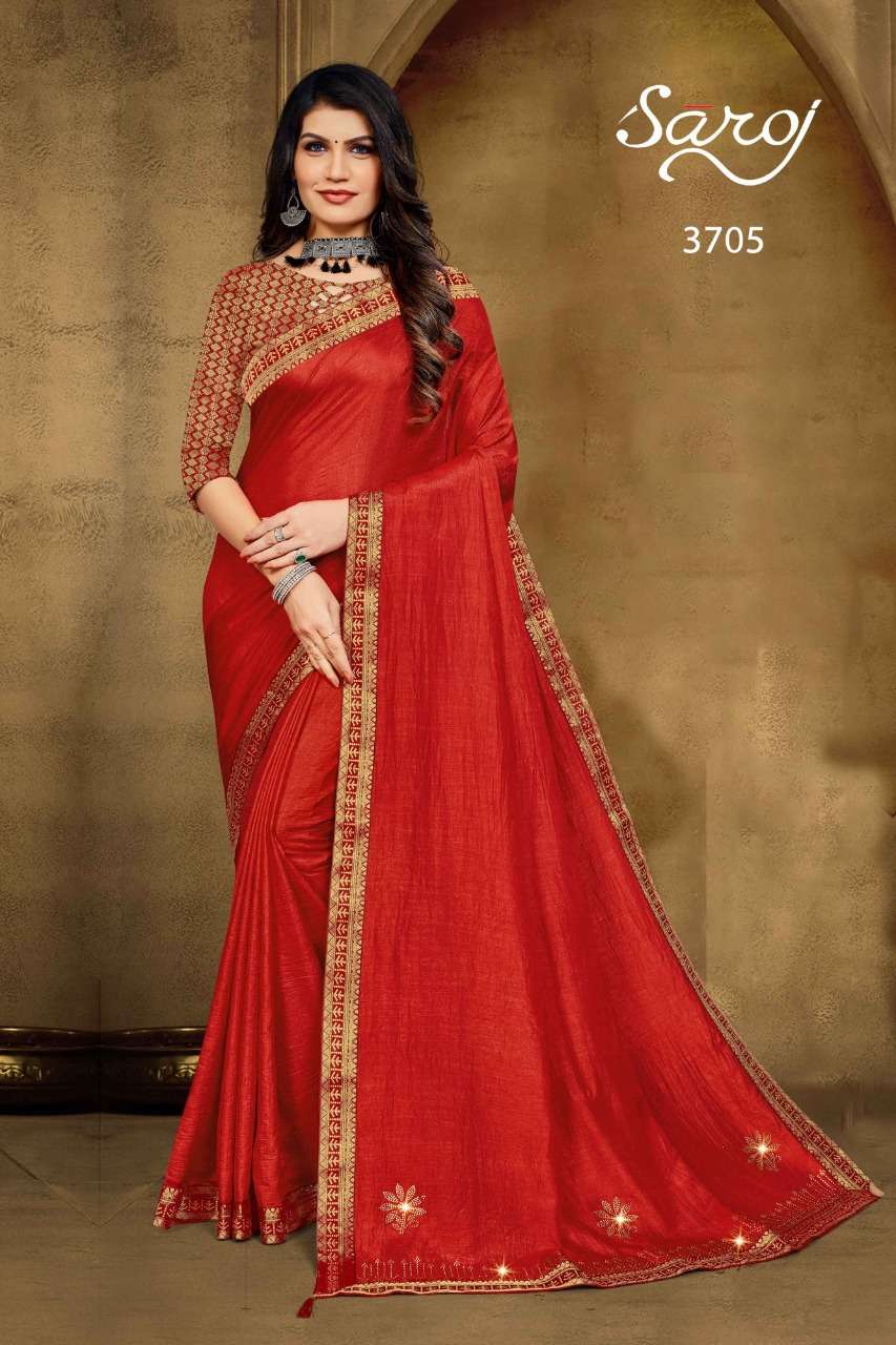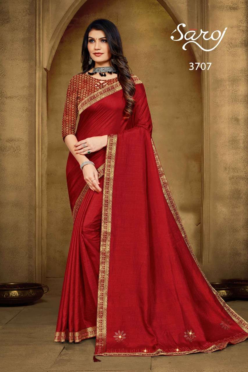 Brand - Saroj . Fabric: Soft Vichitra Silk with Swaroski and Lace. |