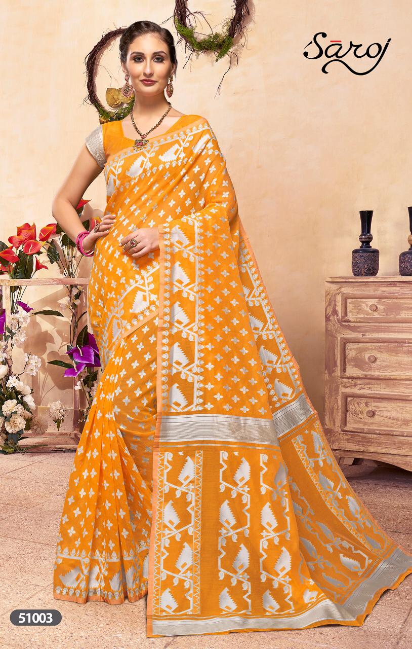 *Meenakshi by Saroj * Rate -765 per pcs . Fabric: Cotton Jaq butta. Blouse: Cotton Jaq butta. 6 Design in set . Set To Set . GST 5 Percent Extra. Delivery from today |