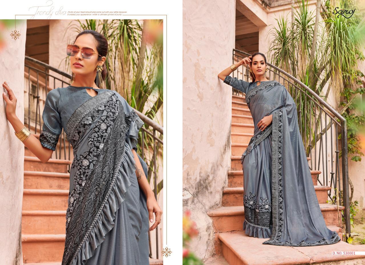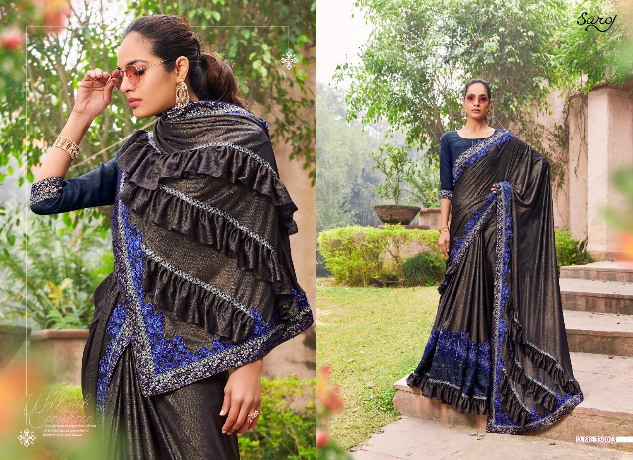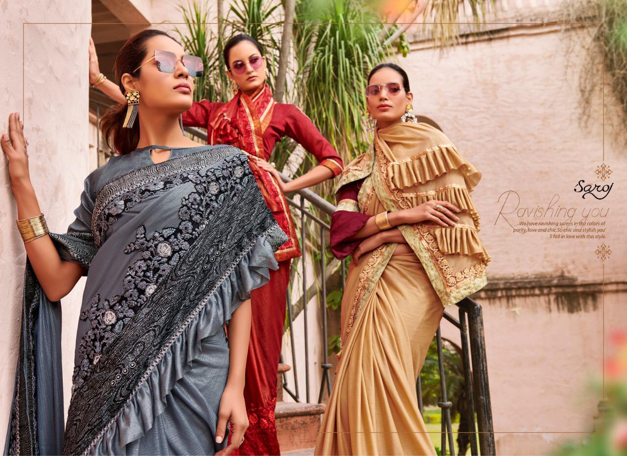 Saroj Present Melody Imported Lycra Frill Indian Festival Wear Saree