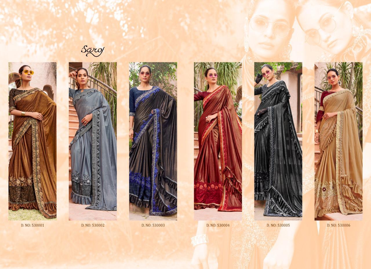 *Melody by Saroj* Rate -1290 per Pcs . Fabric: Imported heavy Lycrea, Frill saree with beautiful designs . Blouse: Banglori silk. 6 Designs in set . Set to set . GST 5 Percent Extra Delivery 3-4 days |