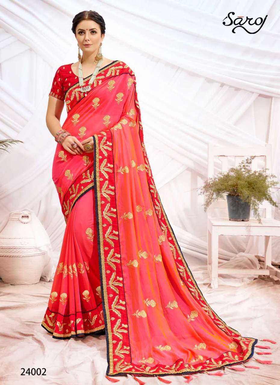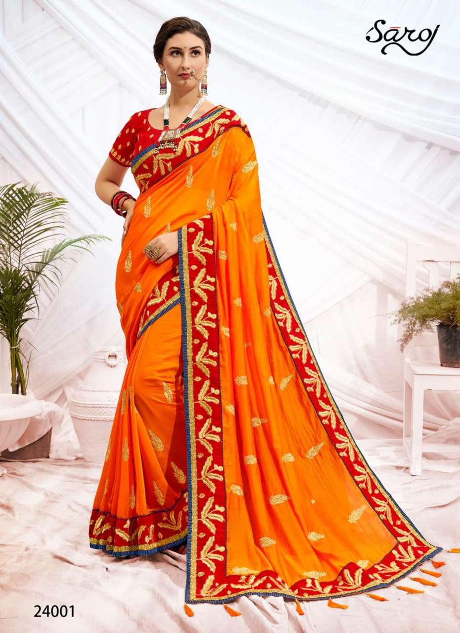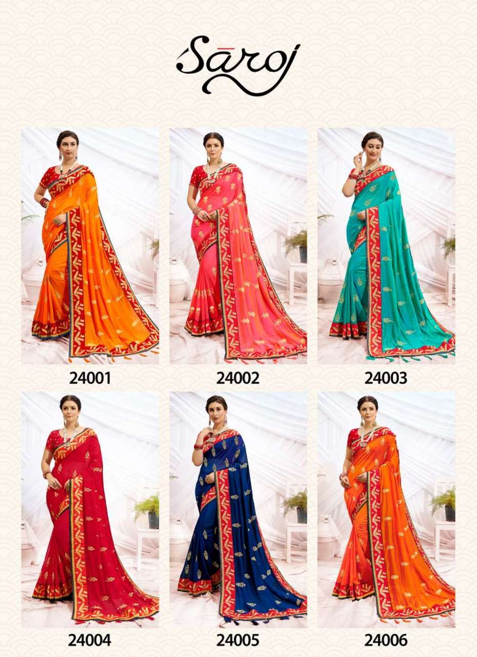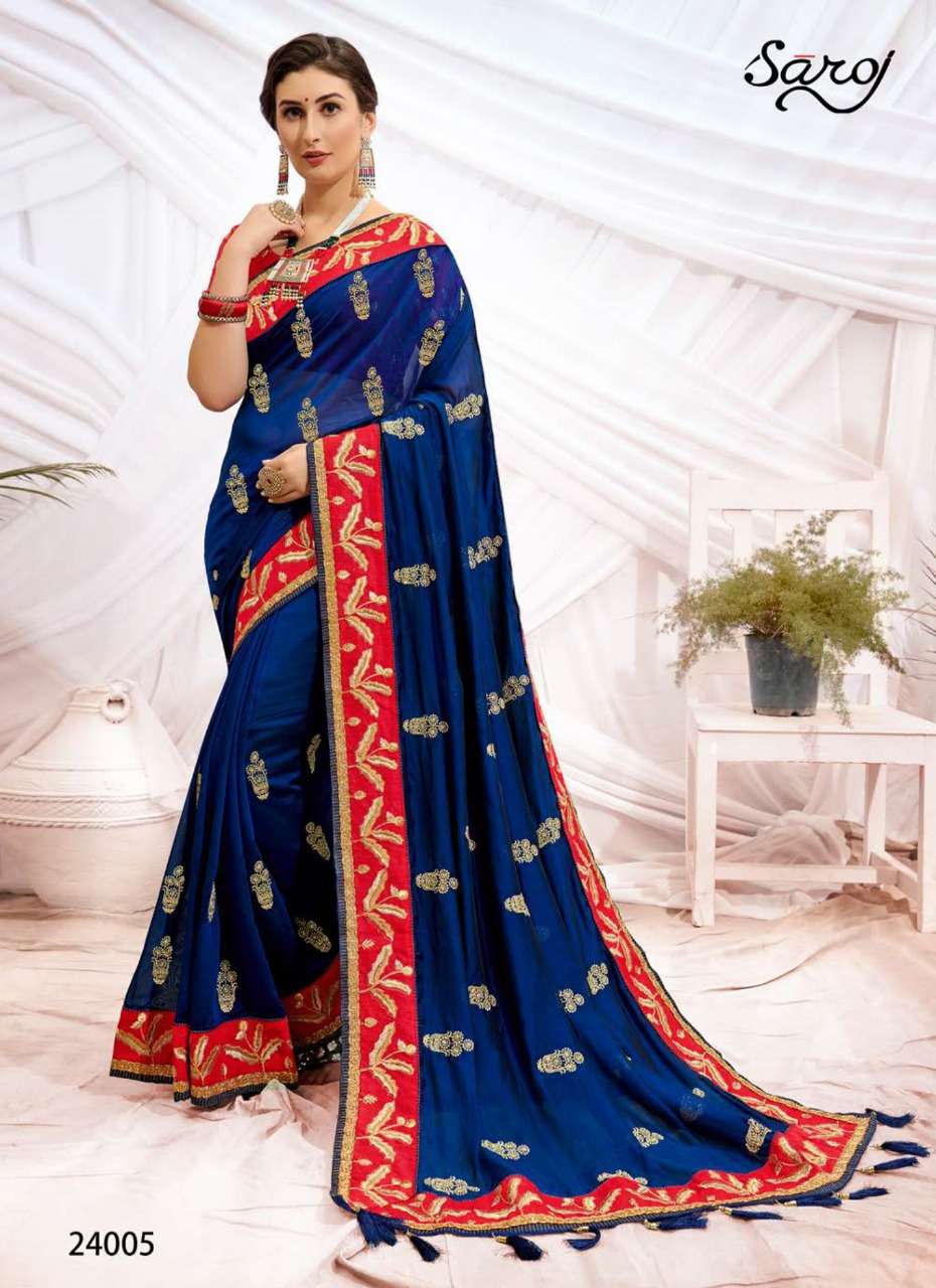 SAROJ Rudraksh (Rs.1315) Fabric: Heavy Dupion with embroidery butta and beautiful work border lace. Blouse: Silk work butti saree. 6 Design |