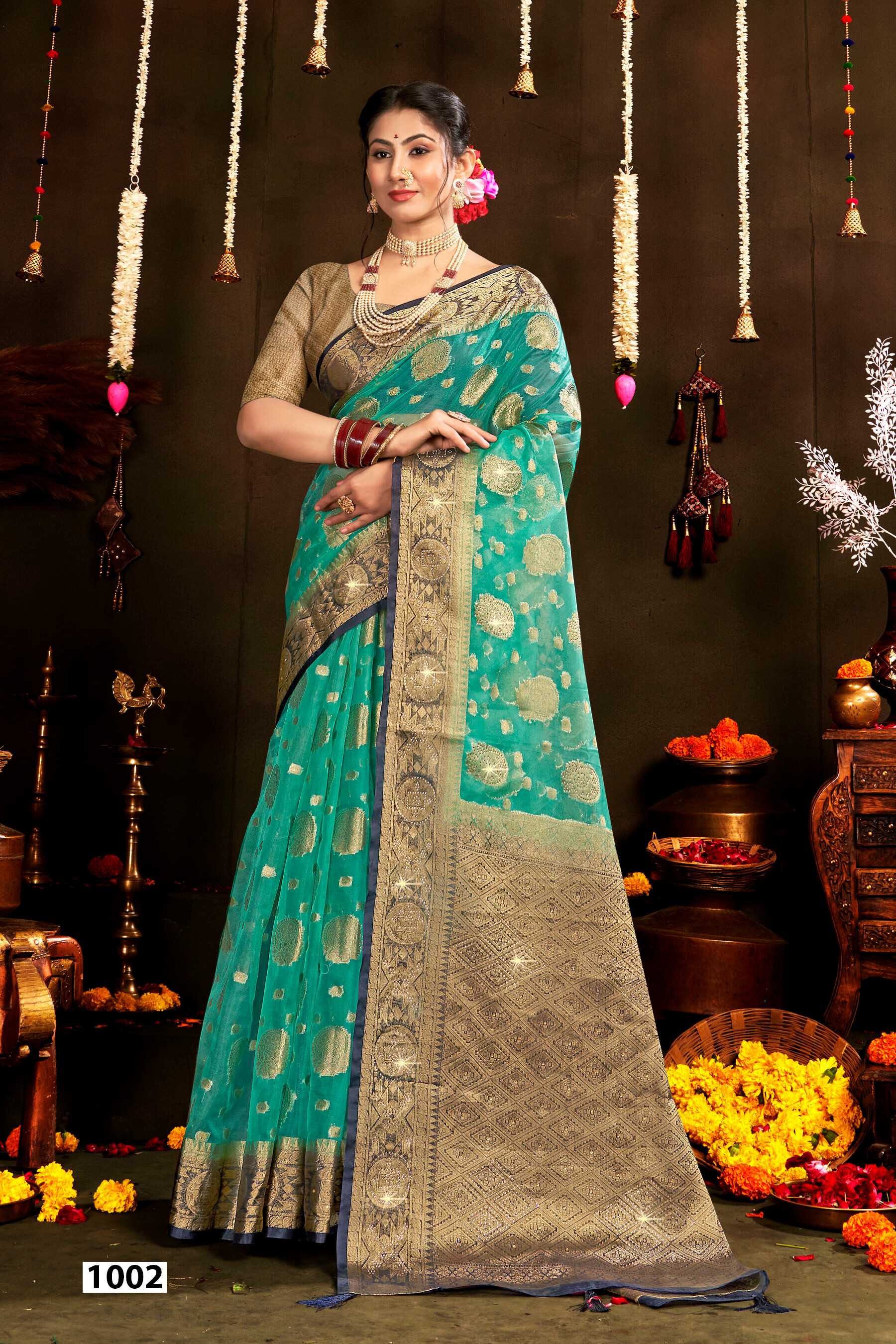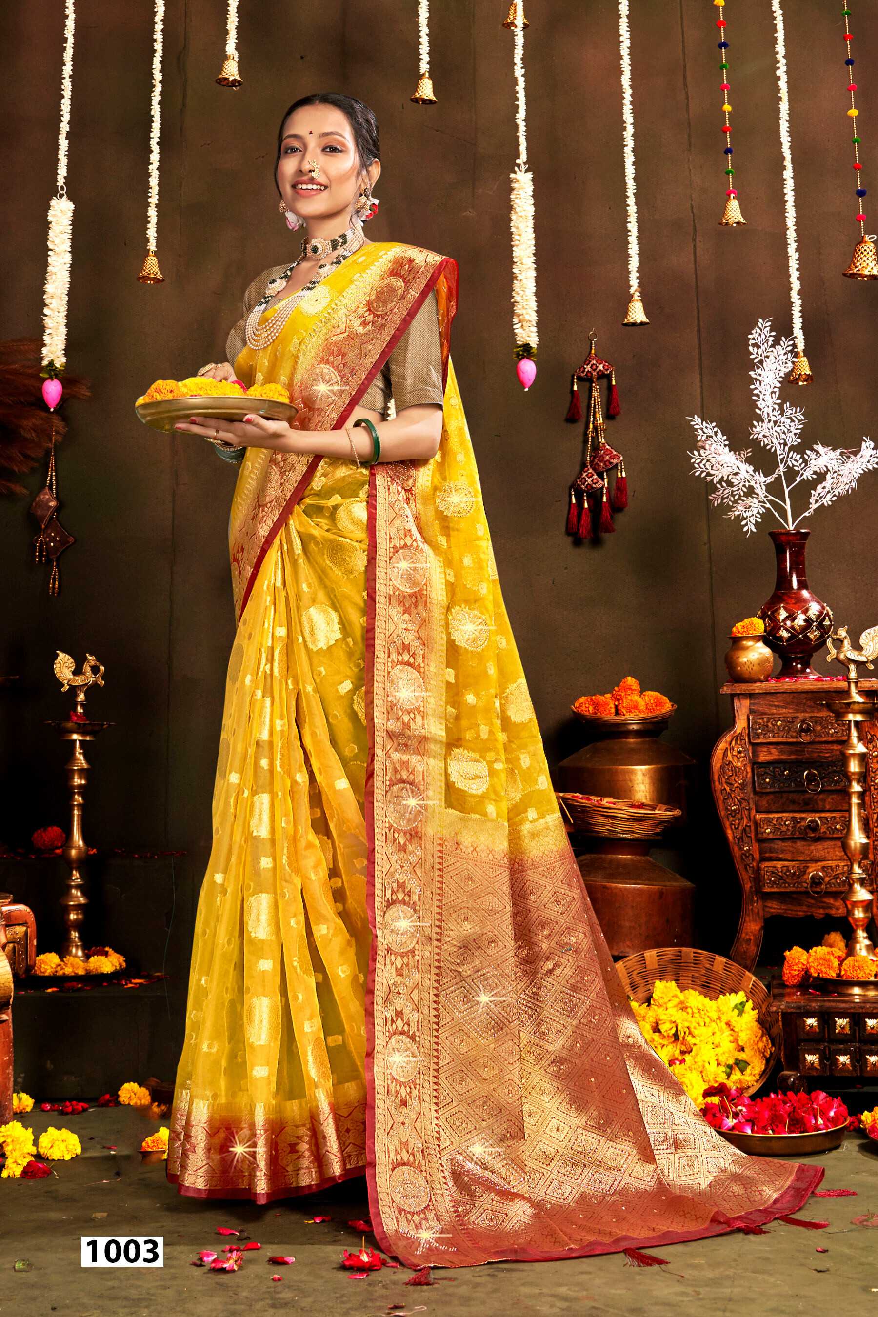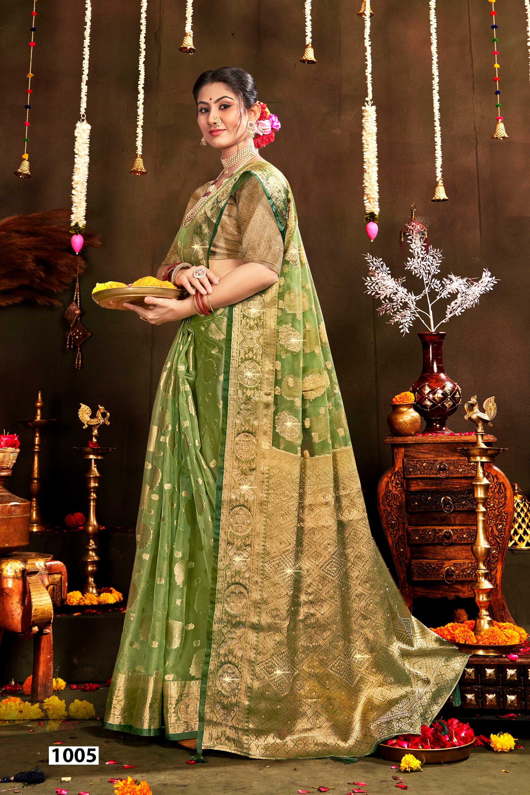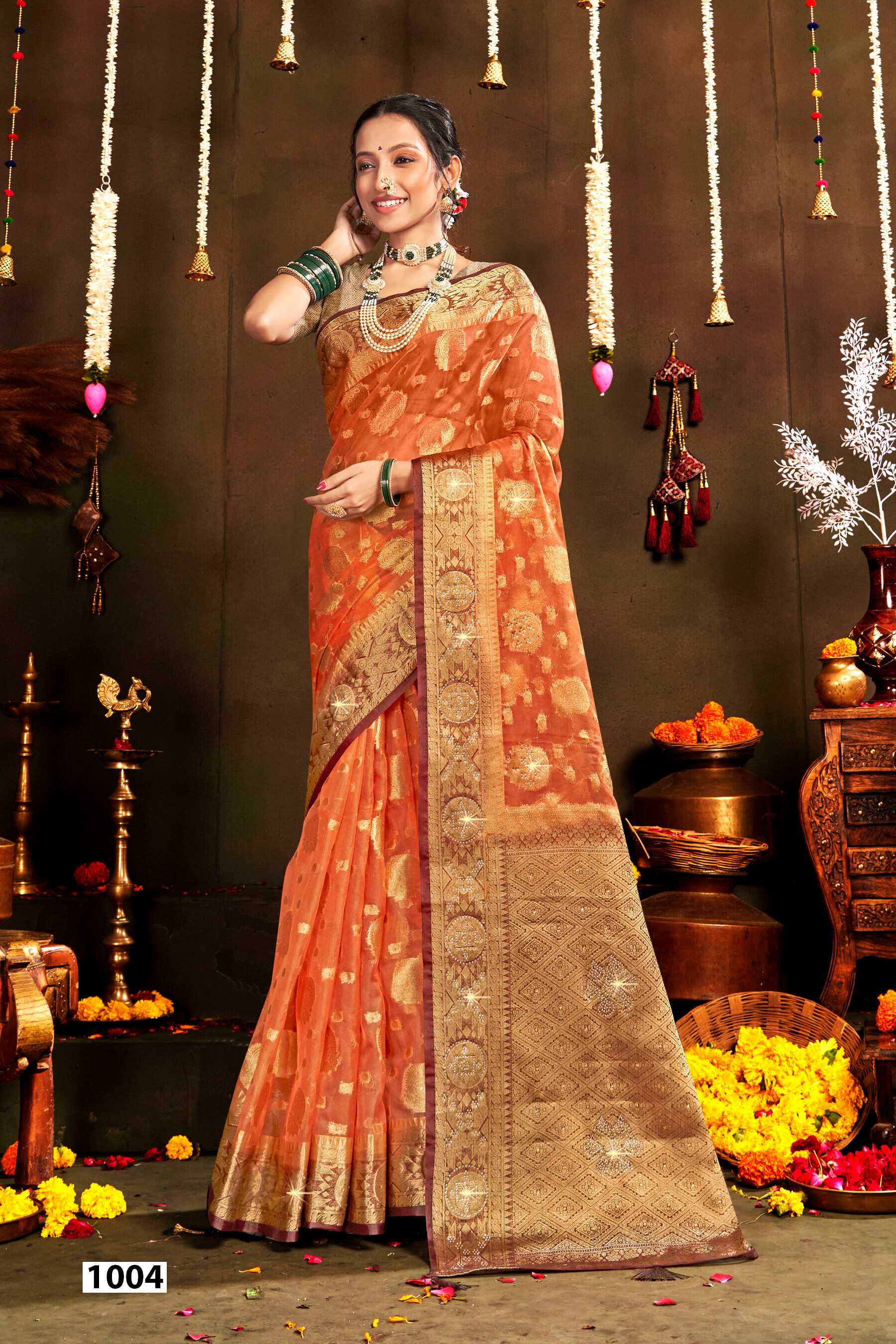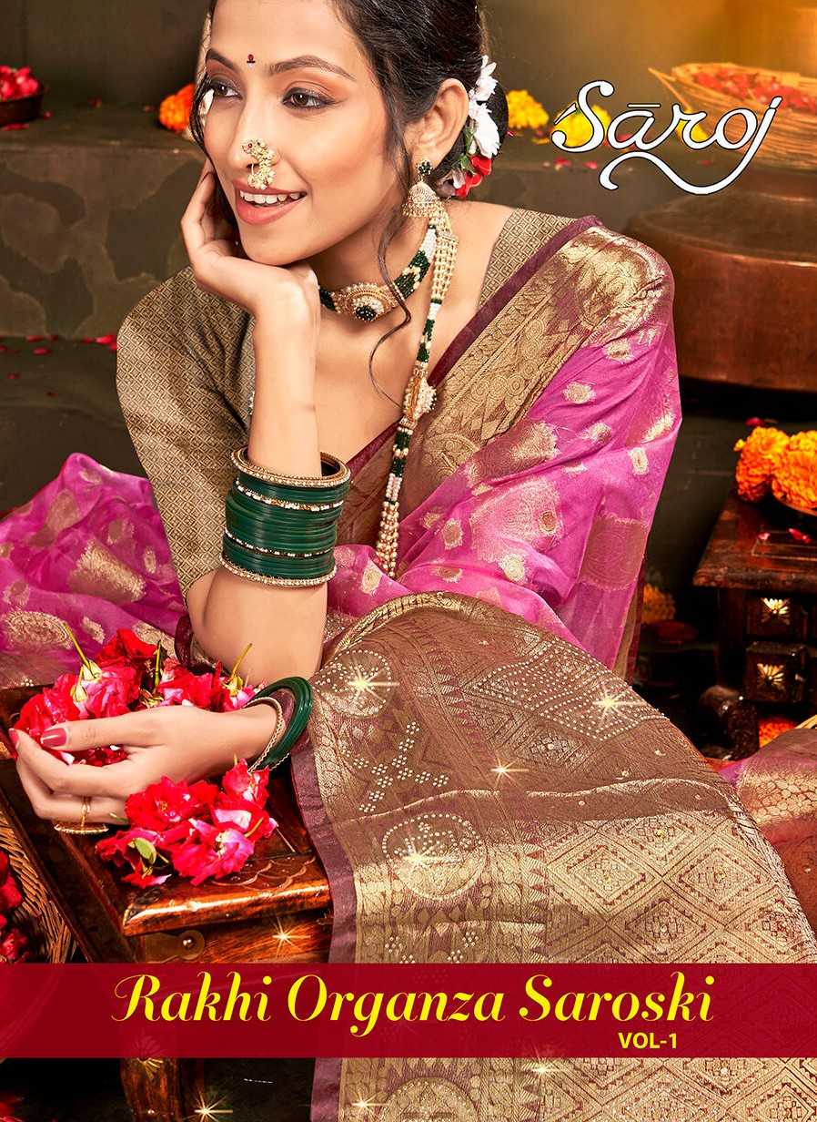 Rakhi Organza Saroski vol.1 Pure Jari Organja Rich Pallu With Heavy Swarovski Work Rate-₹655/- |
