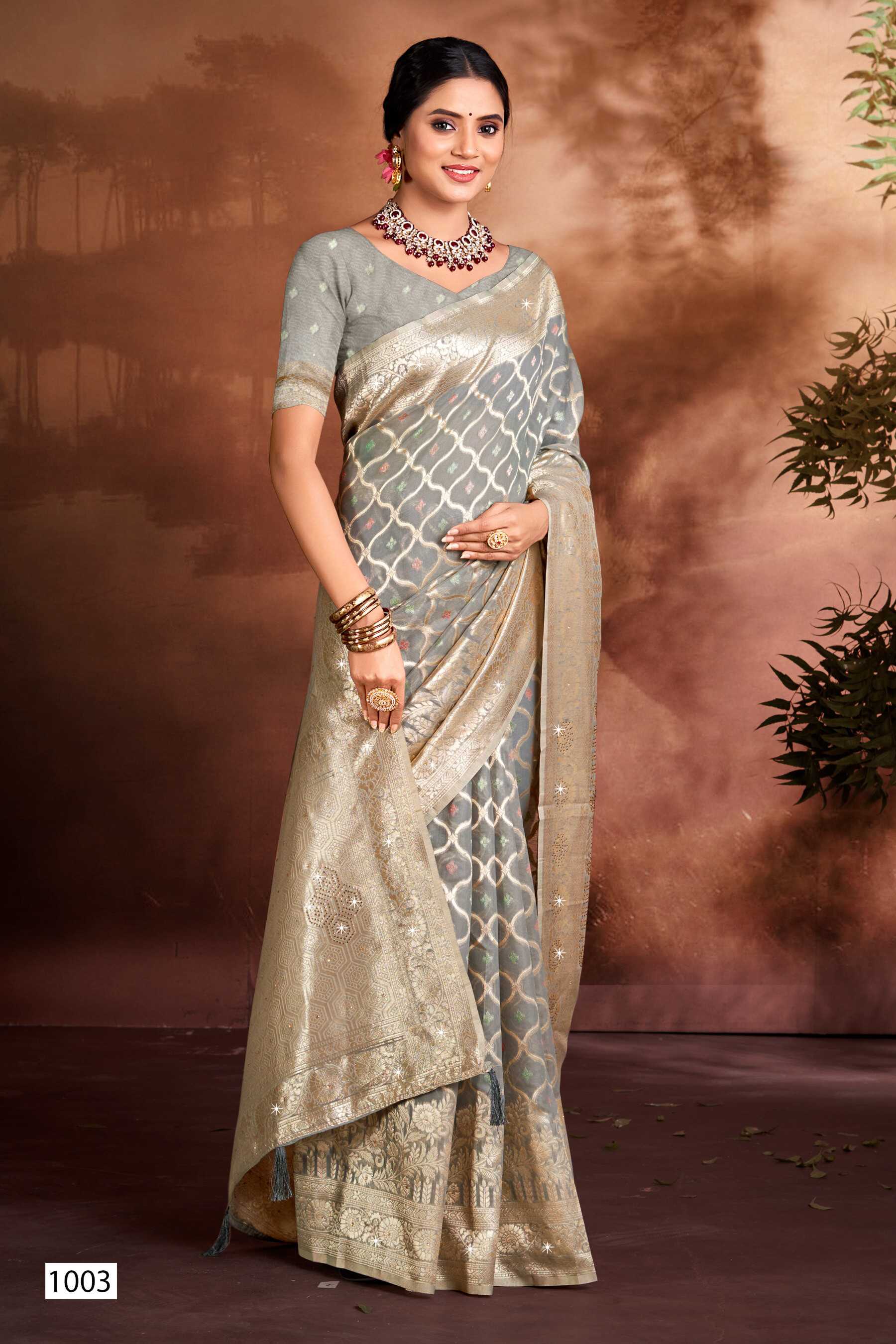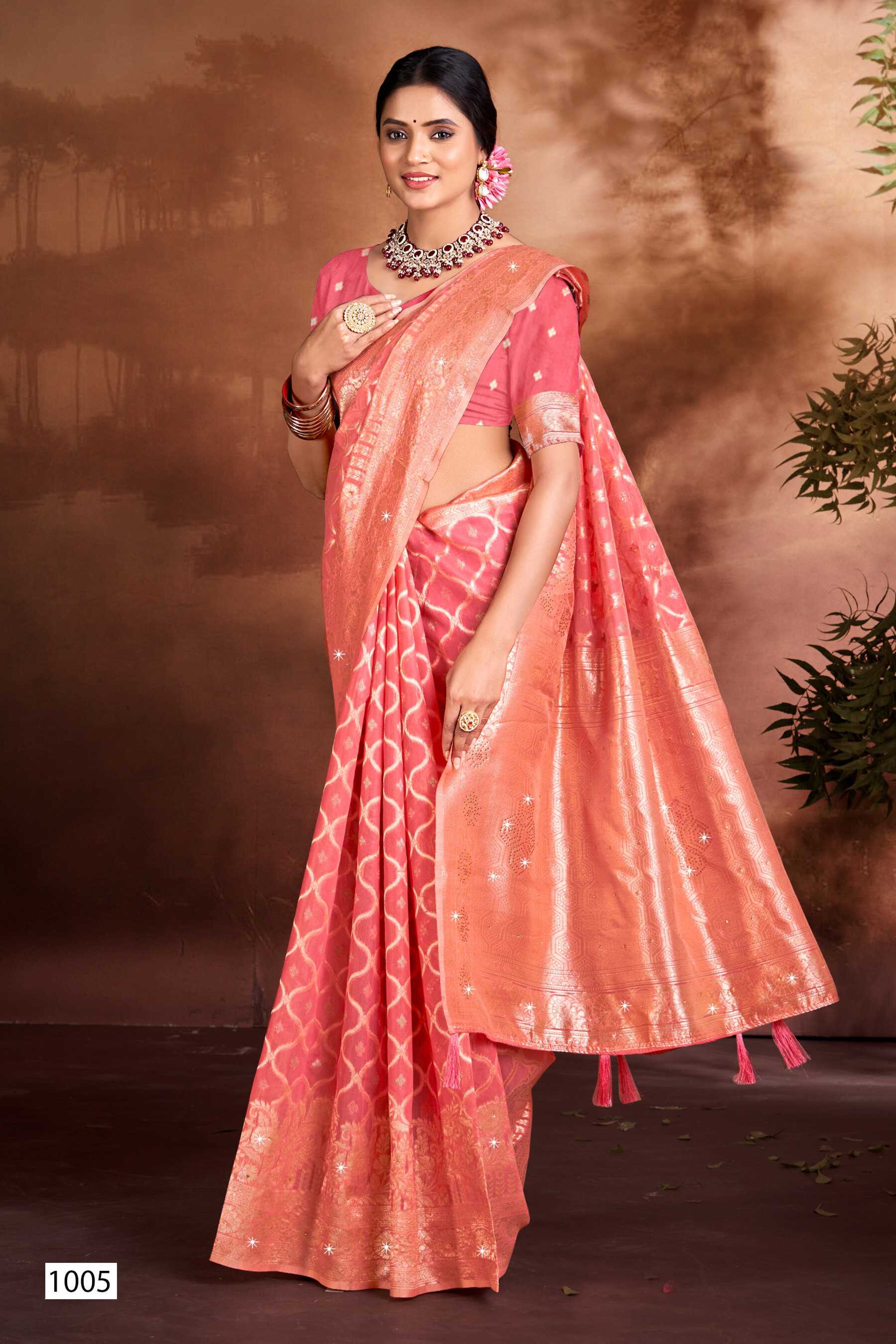Saroj Saree Sakshi Swarovski vol.3 Soft Linen Cotton Mina with heavy Swarovski Work Rate- ₹625/- |